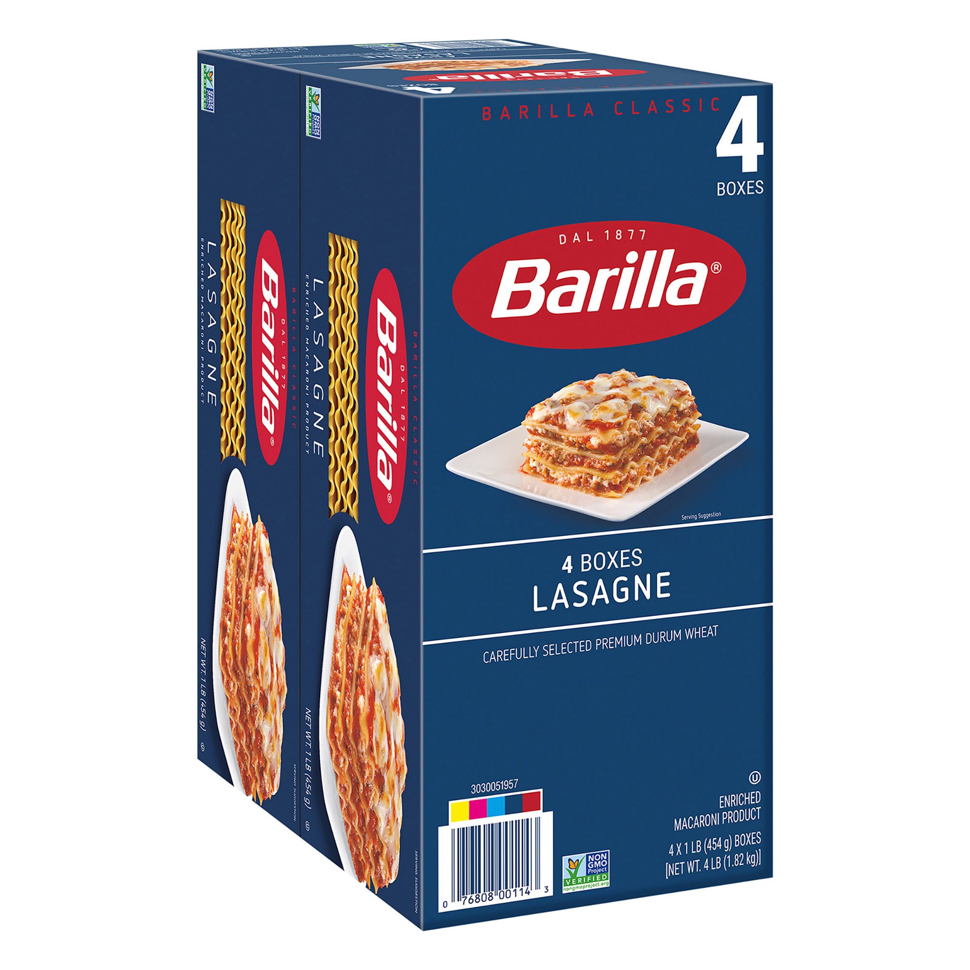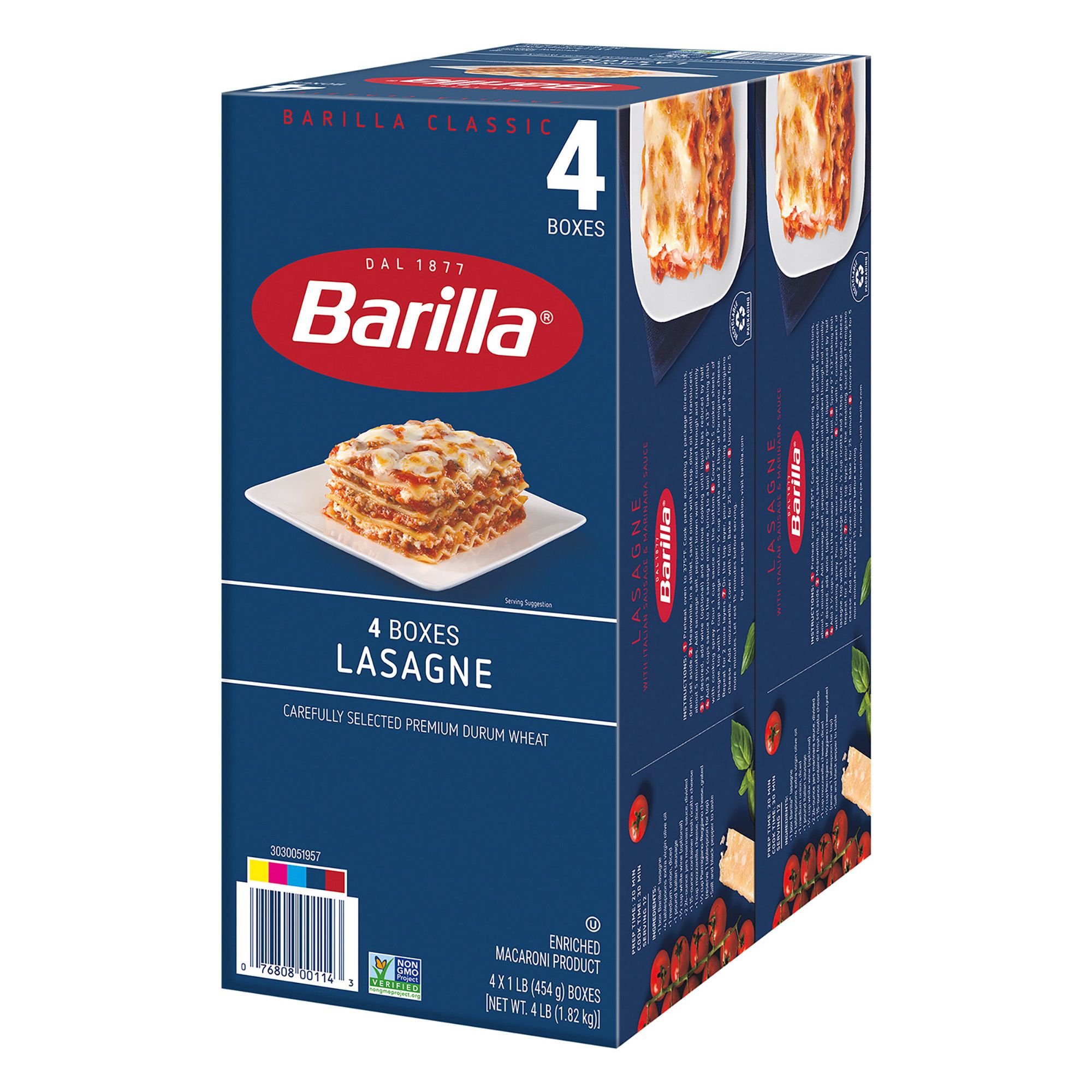 Barilla Wavy Lasagne pasta's shape is wide and ridged to hold your favorite lasagne ingredients; stock up with this pack of four
