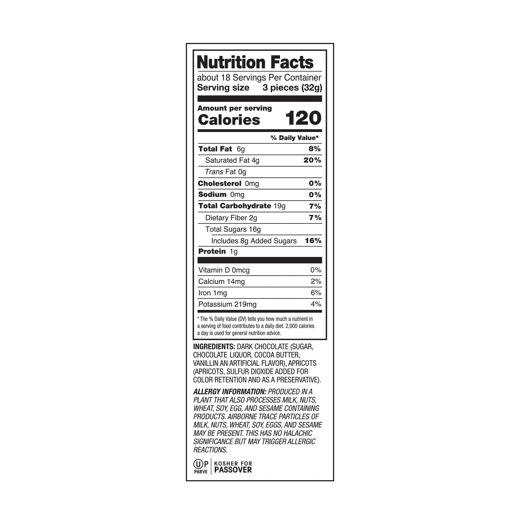 Includes dark chocolate covered apricots, 20 oz.