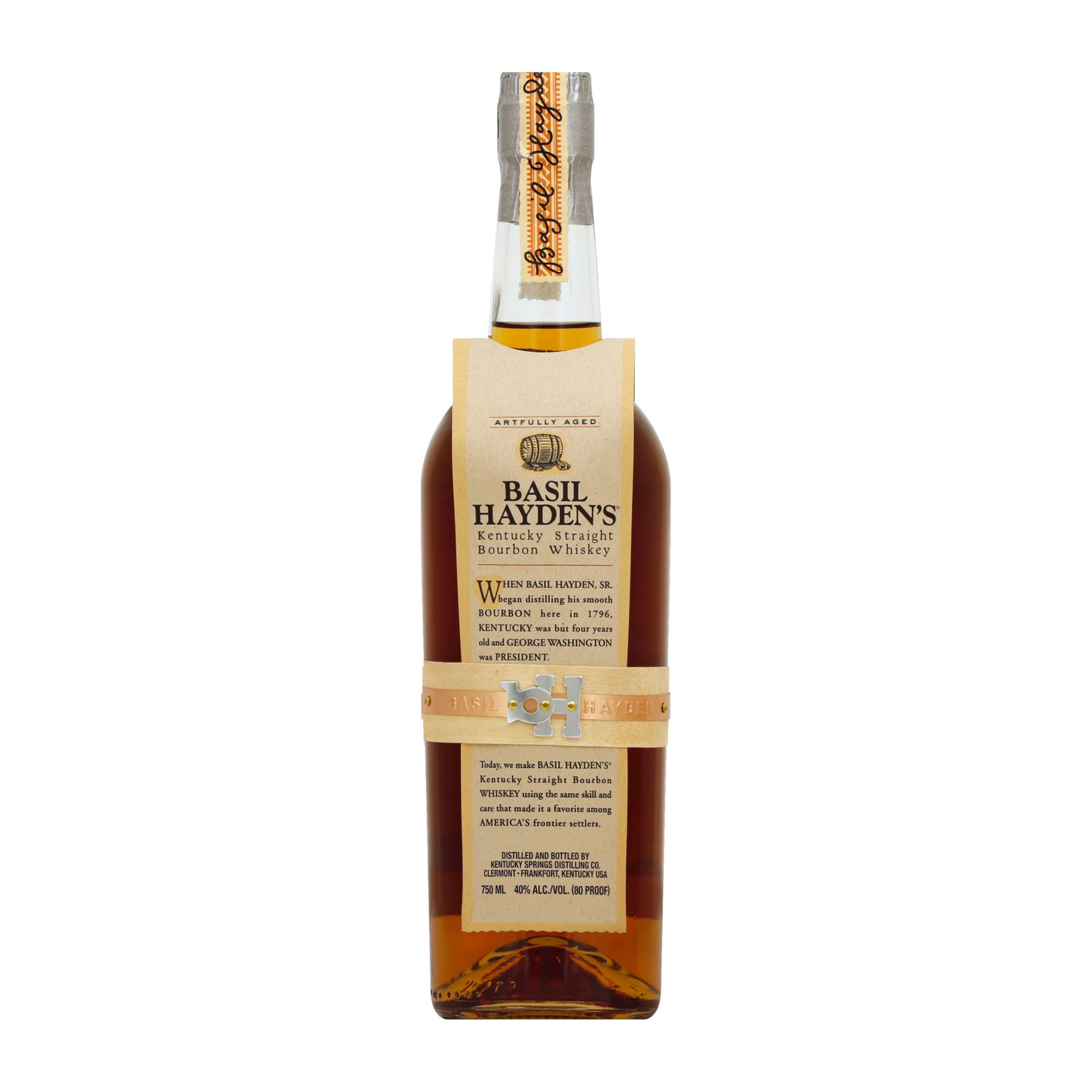 Artfully aged. When Basil Hayden, Sr. began distilling his smooth bourbon in 1796, Kentucky was but four years old and George Washington was President. Today, Basil Hayden's Kentucky Straight Bourbon Whiskey is made using the same skill and care that made it a favorite among America's frontier settlers. Artfully aged in Kentucky hillside rackhouses then bottled at a smooth 80 proof, Basil Hayden's sophisticated taste remains true to the old family recipe. With more rye than a traditional bourbon and its trademark spicy finish, it's easy to enjoy Basil Hayden's any way you like. 40% alc./vol. (80 proof). Distilled and bottled by Kentucky Springs Distilling Co. Clermont Frankfort, Kentucky USA.
