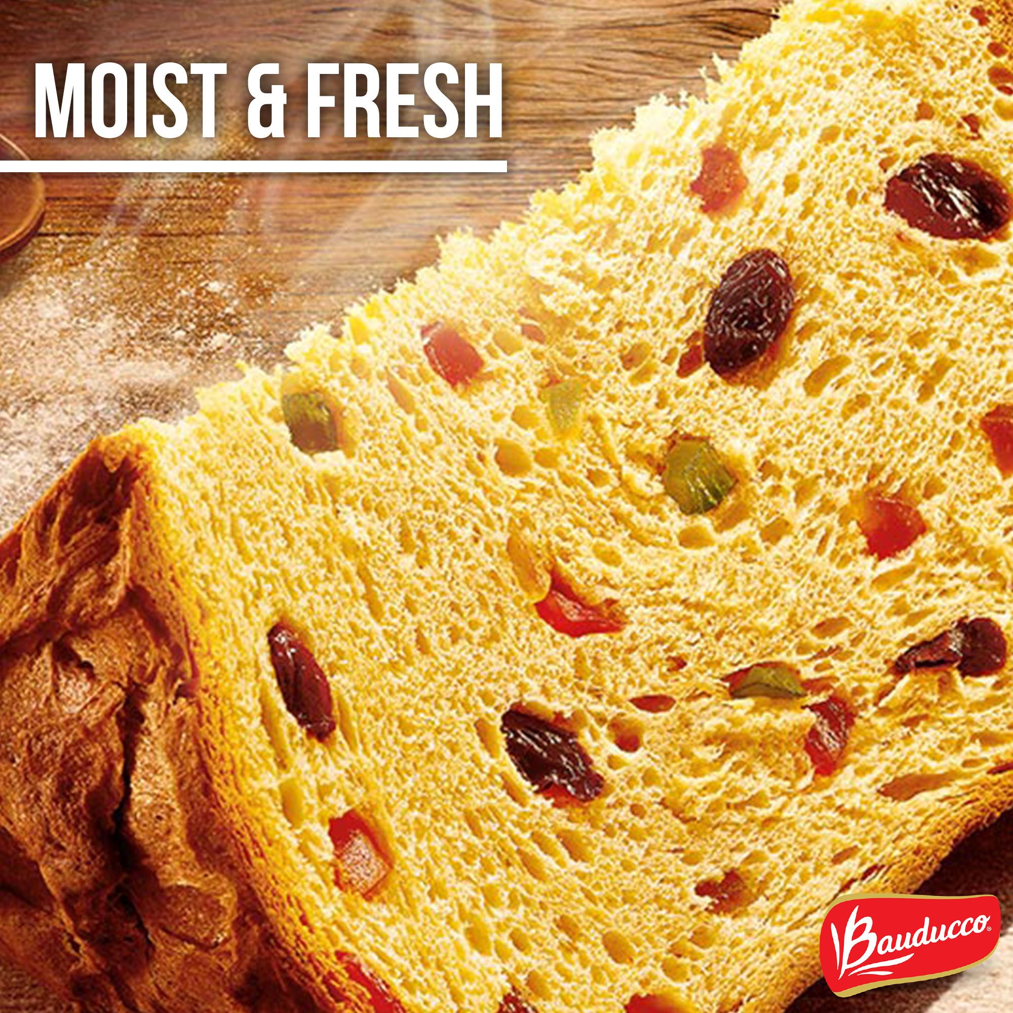Bauducco All Butter Panettone’s special recipe combines raisins and candied fruits with an all butter dough, naturally fermented for a very rich flavor and moist texture. For 70 years, the Bauducco family has come together every day to create delicious recipes made with passion and care. The secret ingredient which makes this Panettone so fluffy and delicious is the "mother" dough that Mr. Bauducco brought from Italy in the 1950s. As part of their traditional, 52-hour process to make each loaf, their bakers save a bit of this "mother" dough every day to mix into tomorrow's batch, which is what creates the Panettone's special flavor. It is a great option for a holiday gift, to create Christmas morning French toast, or holiday bread pudding.