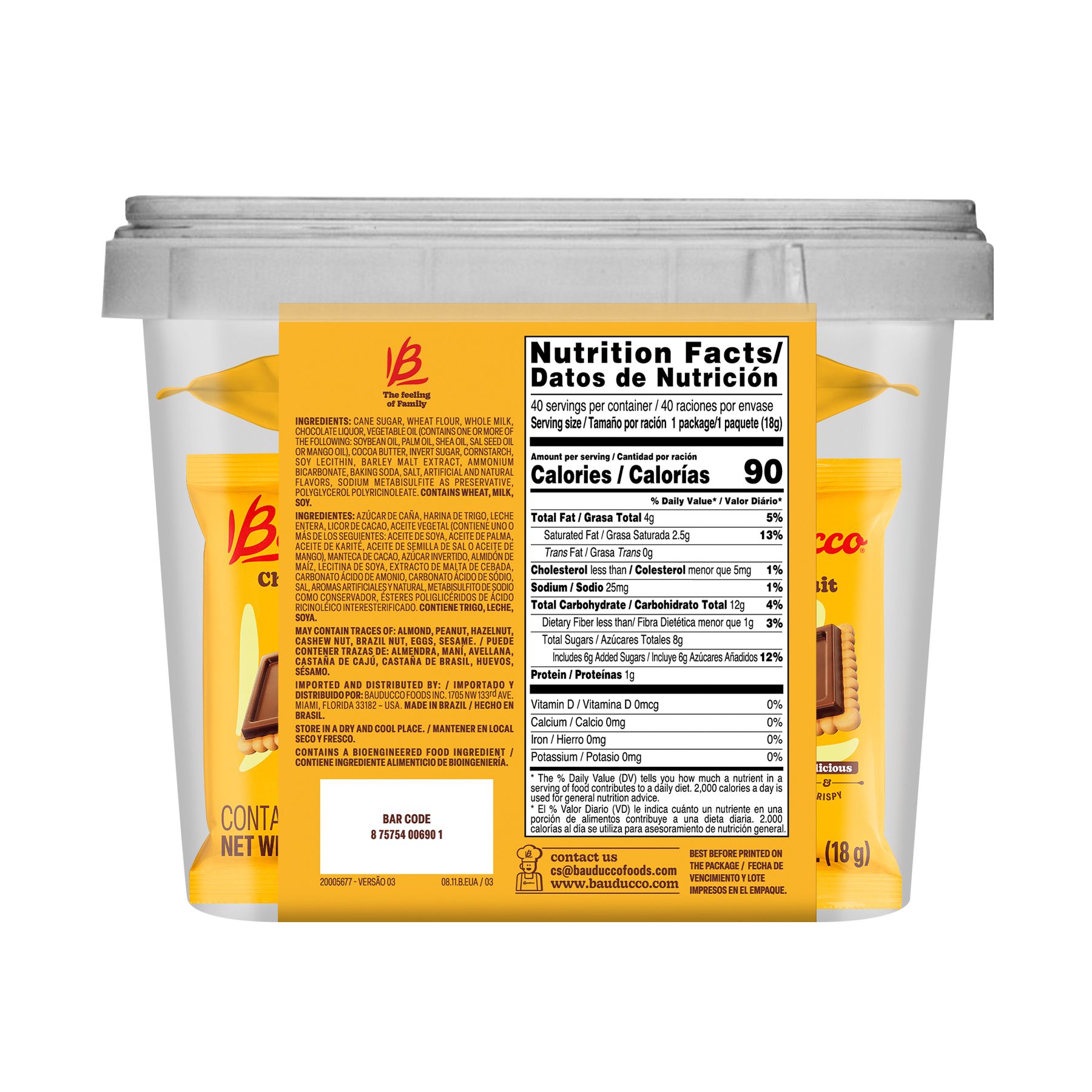 Bauducco Choco Biscuit presents a great, indulgent experience: rich, but not heavy, and a delicate well-balanced pairing with the perfect amount of sweetness. A on-the-go crispy and delicious treat.