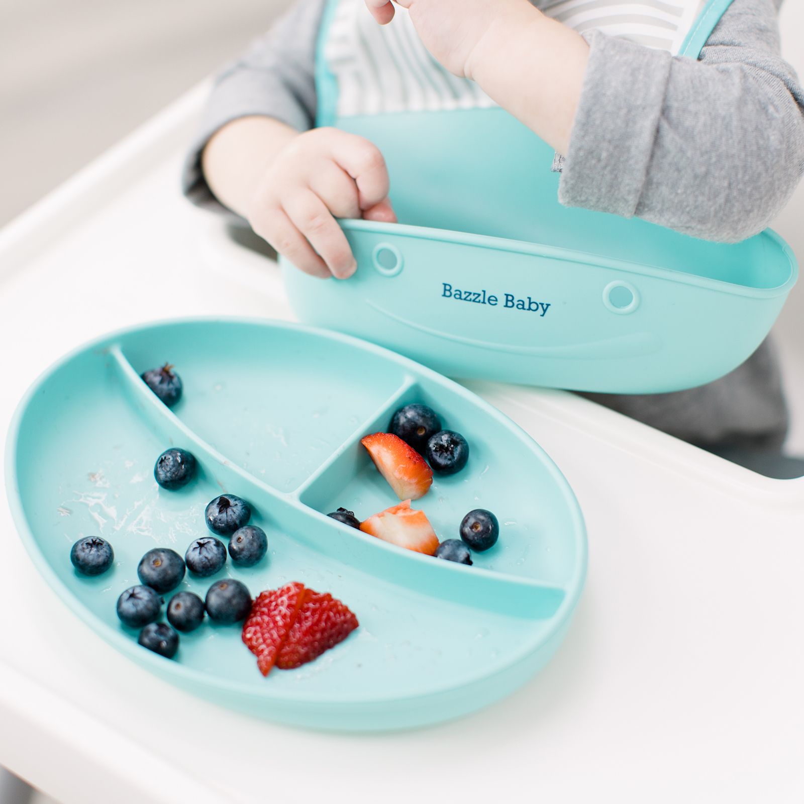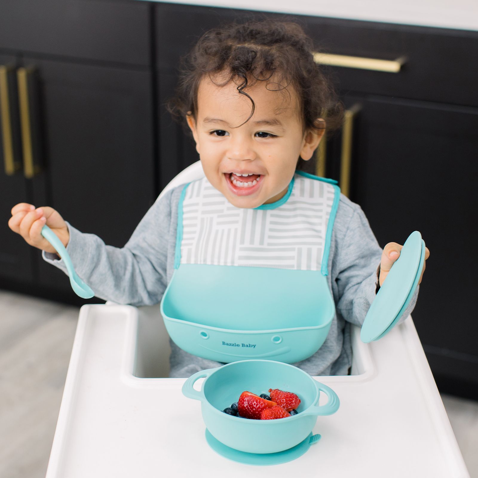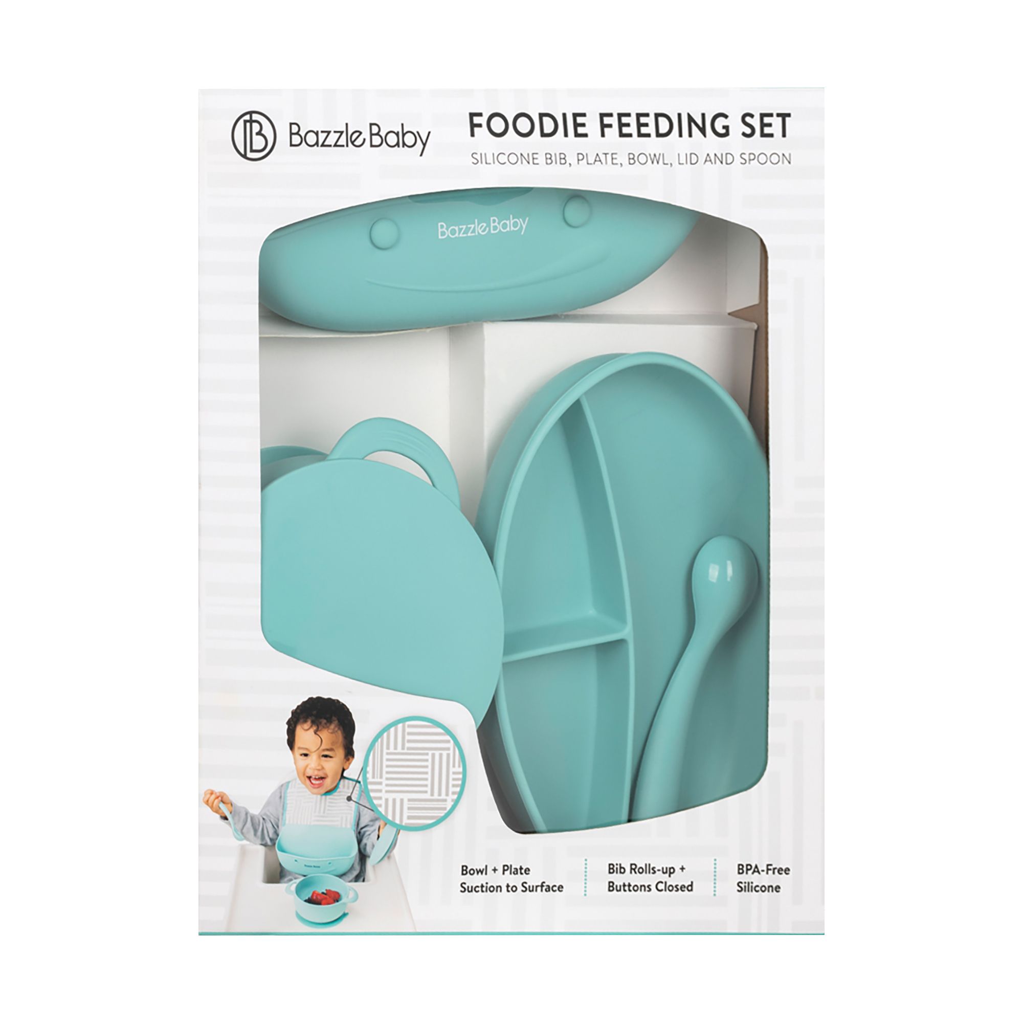 Bazzle Baby Foodie Feeding Set: Silicone Bib, Plate, Bowl, Lid and Spoon