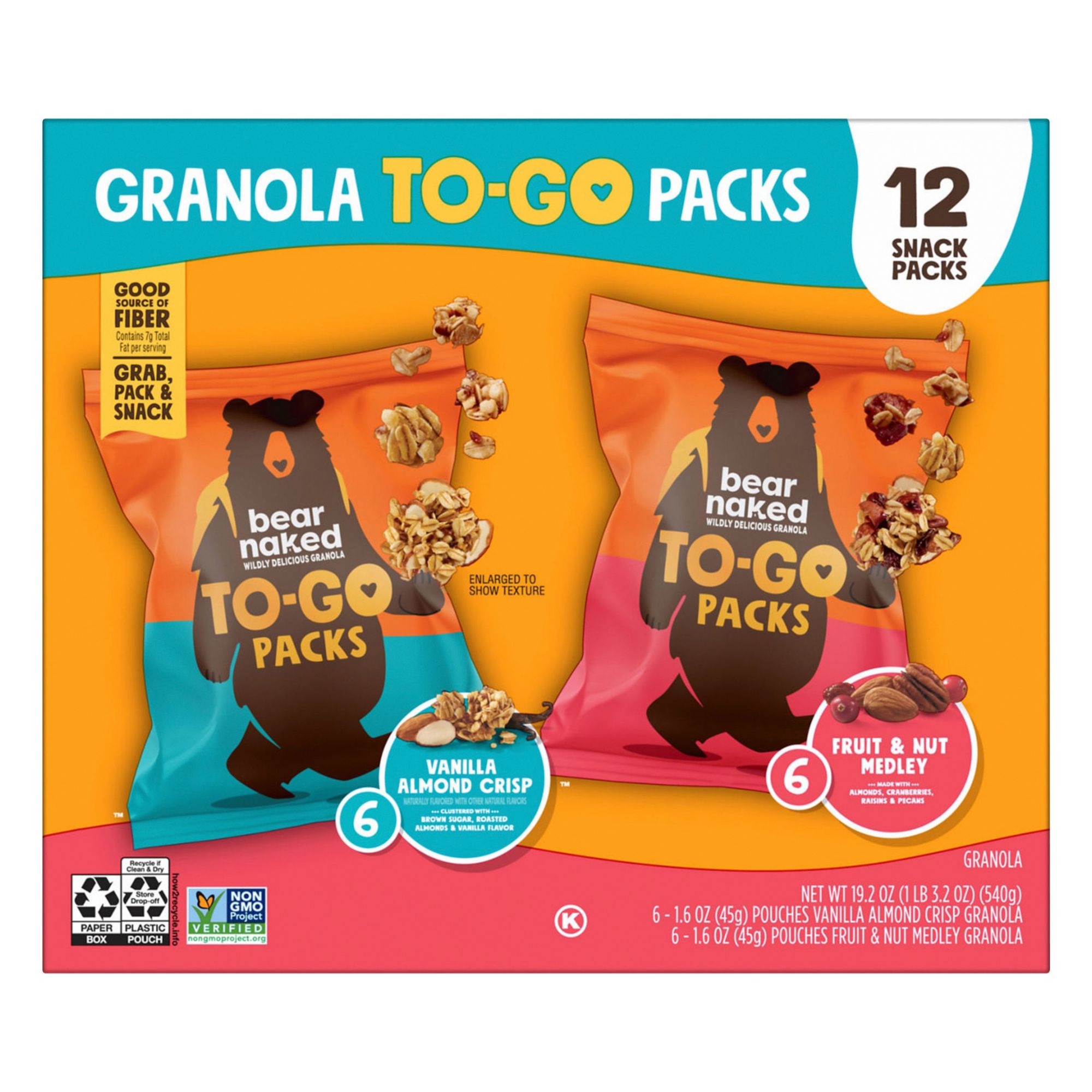 Bear Naked Granola To Go Variety Pack, Vanilla Almond Crisp, Fruit & Nut Medley, Pouches, 12 pk./1.6 oz.
