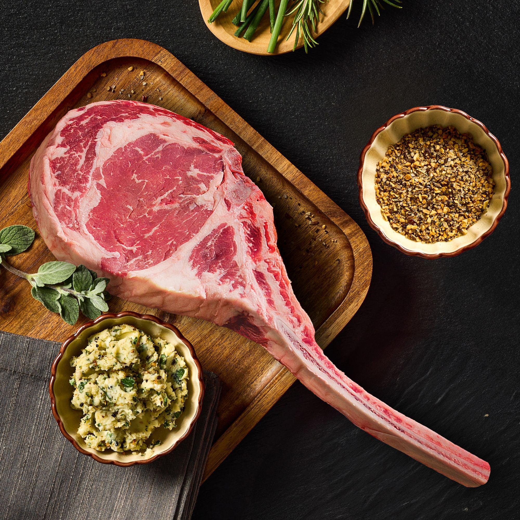 Includes Beef Tomahawk Ribeye Steak, 2.5-3.5 lbs.
