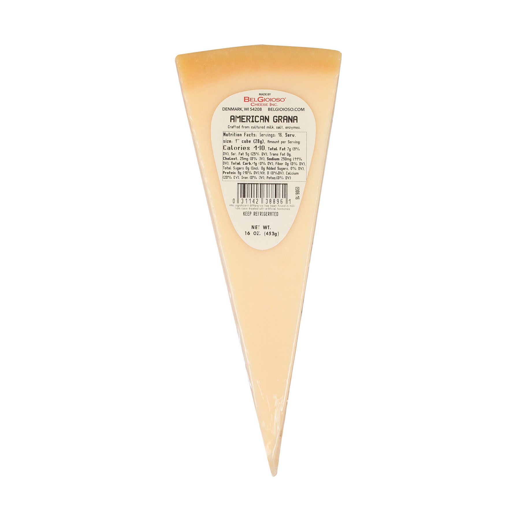 Huge wheels are created by Master Cheesemakers using fresh milk gathered daily from local farmers. This Premium Parmesan cheese is allowed to mature a minimum of 18 months on wooden shelves in special caves. During this process, each wheel is hand-turned to ensure proper aging and develop its deep, nutty flavor and granular texture. This specialty cheese is made exclusively by BelGioioso. Chunk for snacks or cheeseboards with fresh grapes. Shred, shave or grate for salads, pastas, pizzas, meatballs and vegetables. Add the rind to homemade soups or sauces for extra flavor.