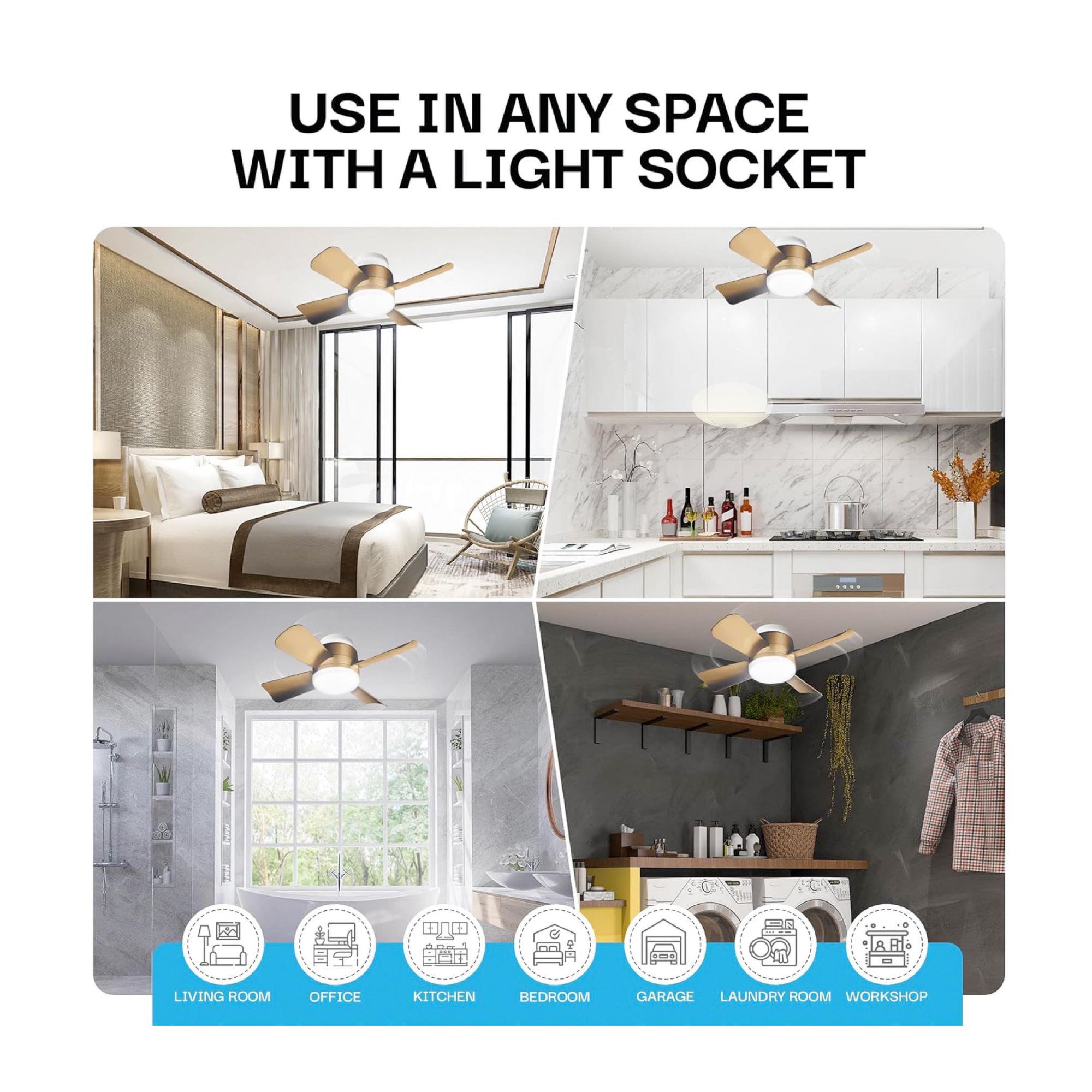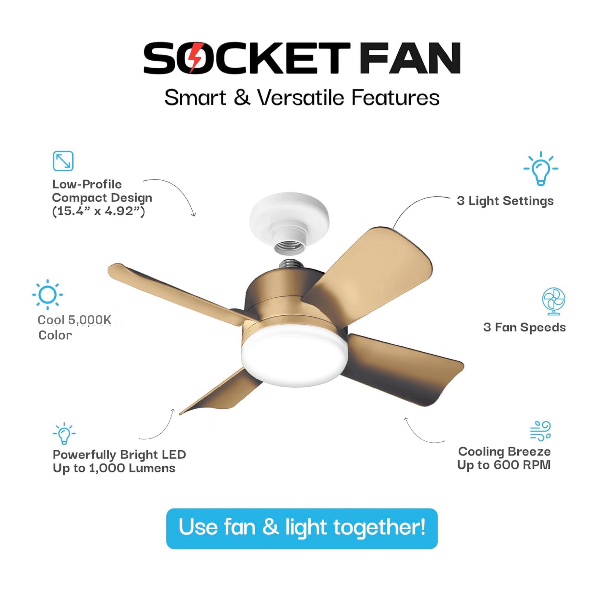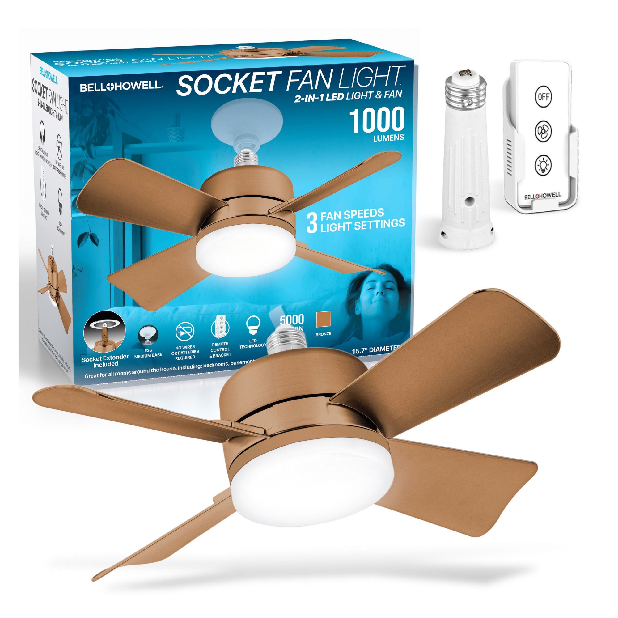 Bell + Howell Socket Fan Light - Bronze Gold Finish