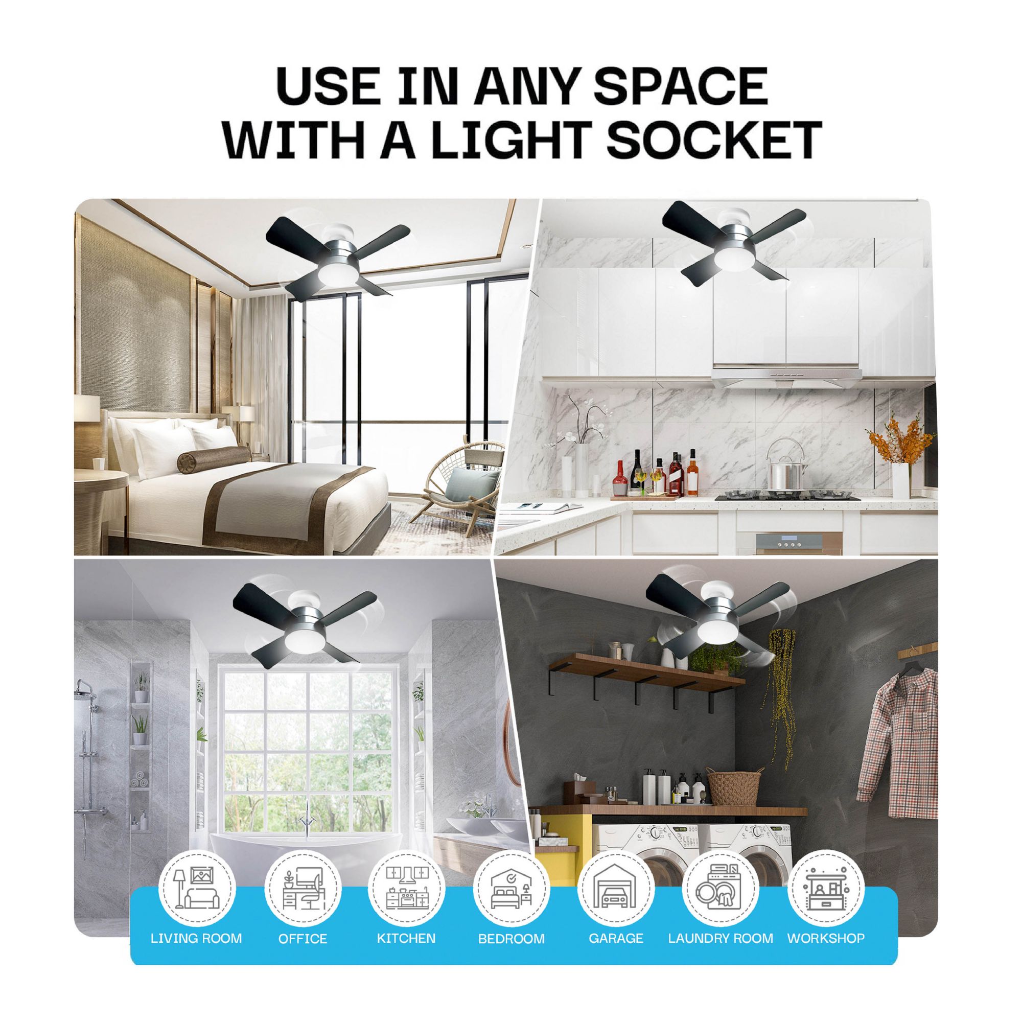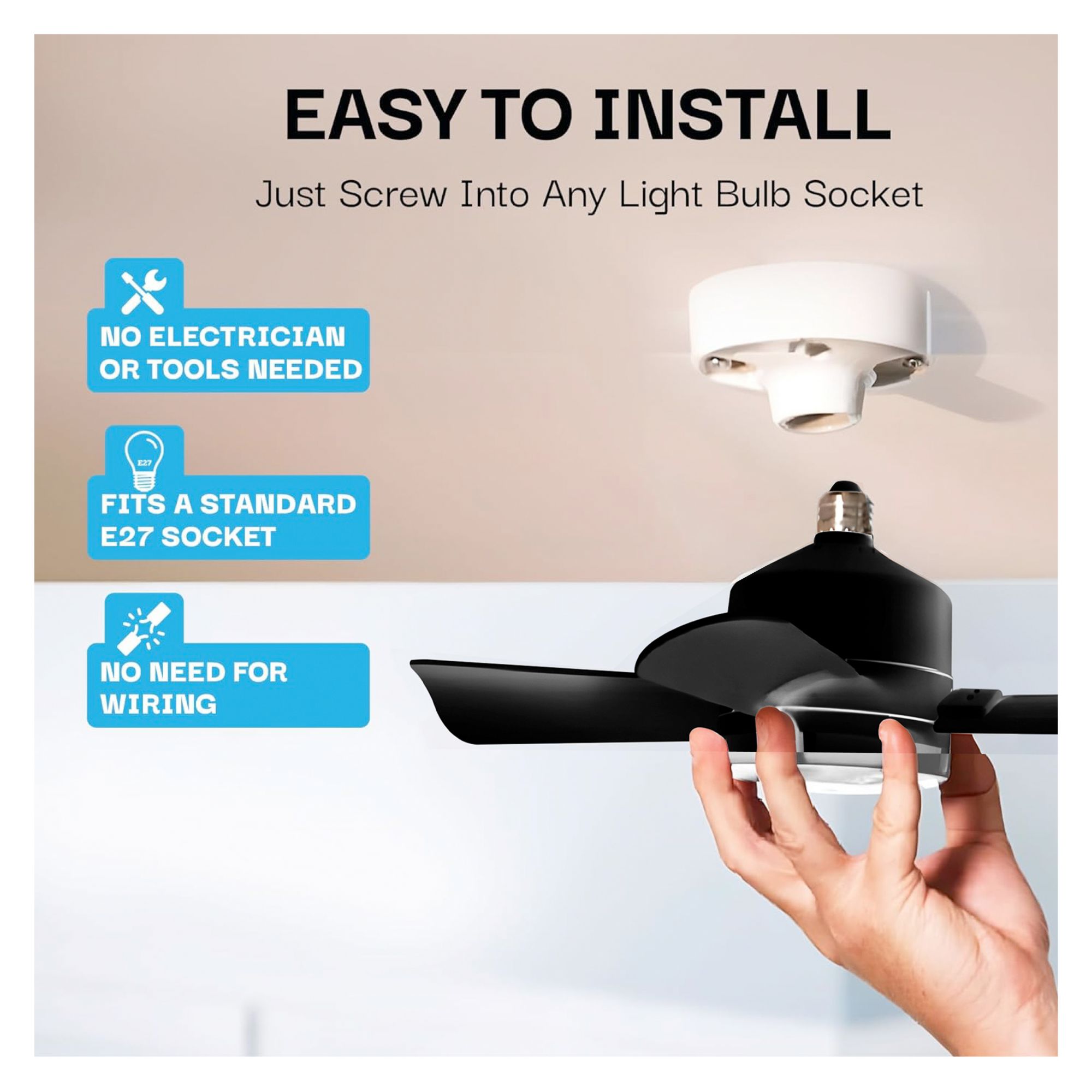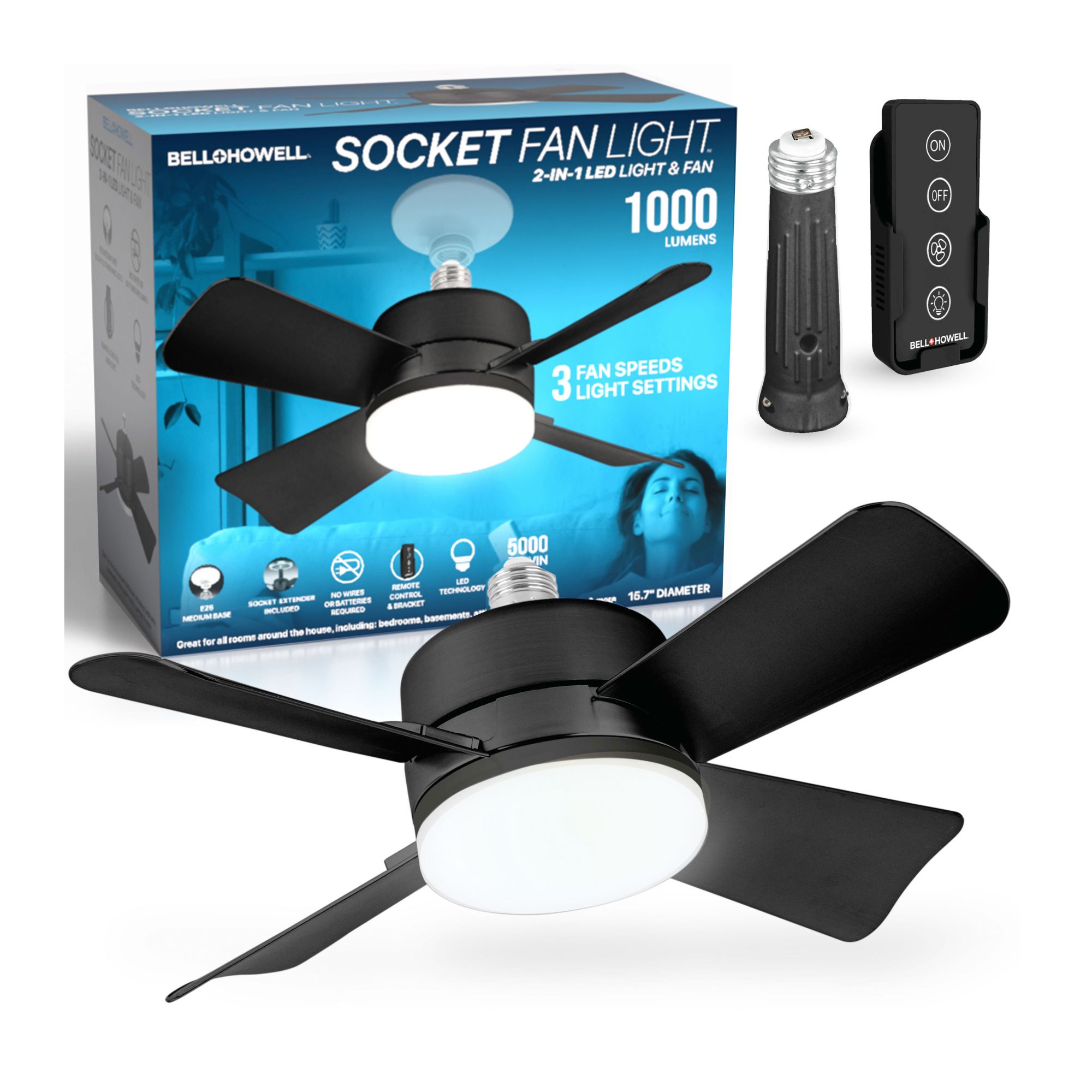 Bell + Howell Socket Fan Light - Matte Black Finish