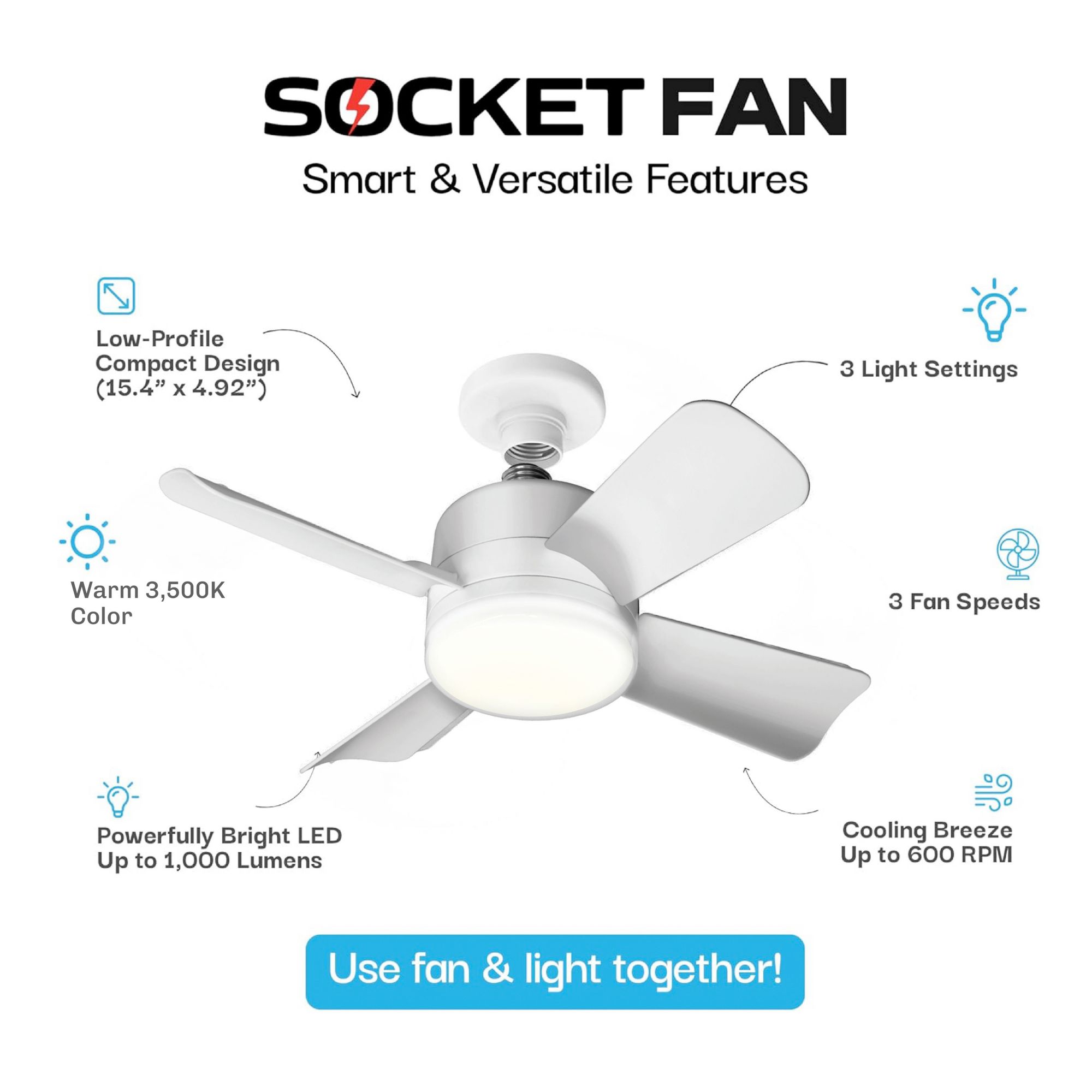 Bell + Howell Socket Fan Light - Warm Light
