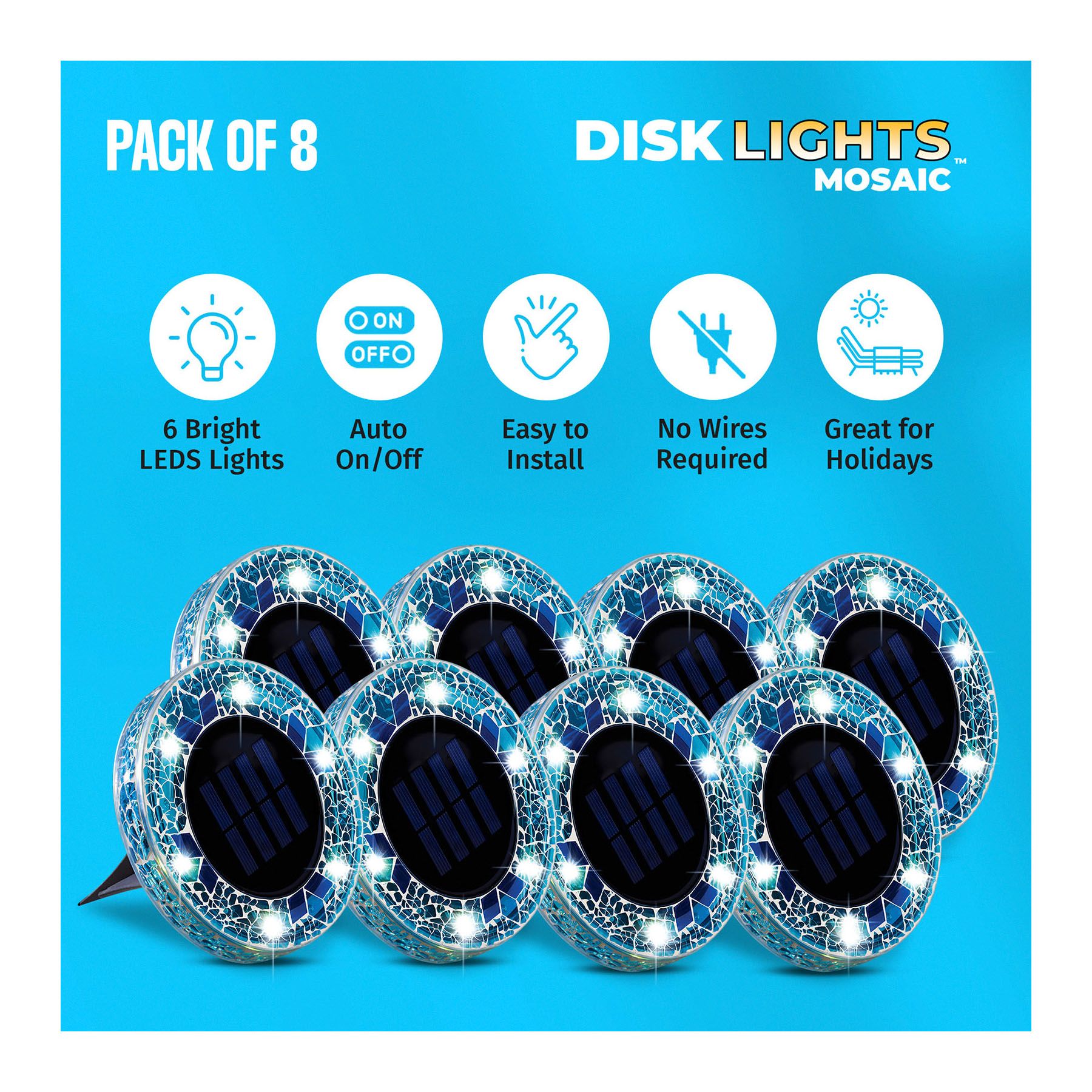 (25 Items)Bell + Howell Solar Mosaic Disk Lights Blue 8PK