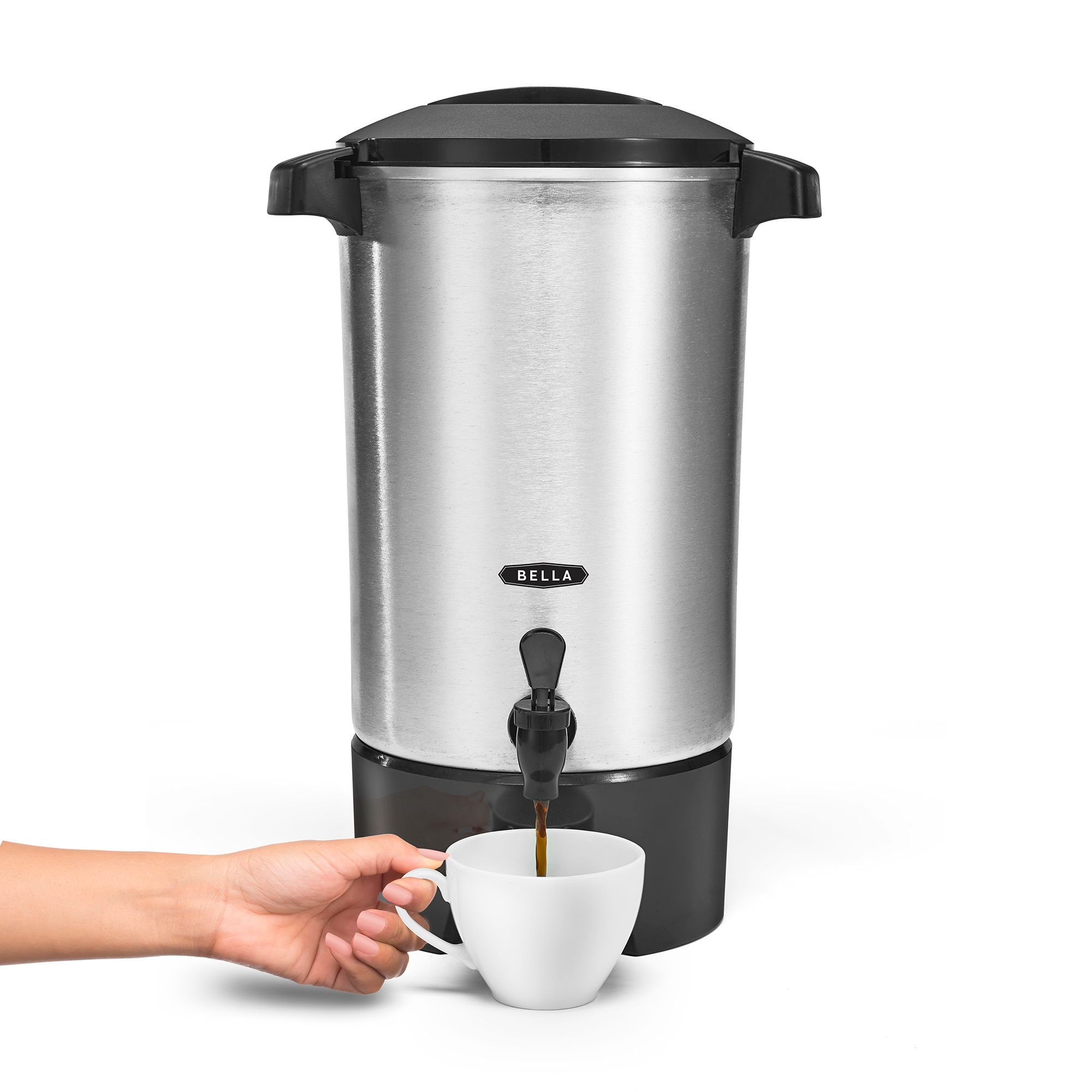 The Bella 42-Cup Coffee Urn is a 1,100W brewing system that brews up to 42 cups of coffee at a time, ideal for a large gathering. Enjoy your coffee and the company at the same time with the coffee ready indicator light and keep warm function. The easy to use dispensing tap requires only one hand to pour a cup of coffee. Clean up is a breeze with the dishwasher safe filter basket.