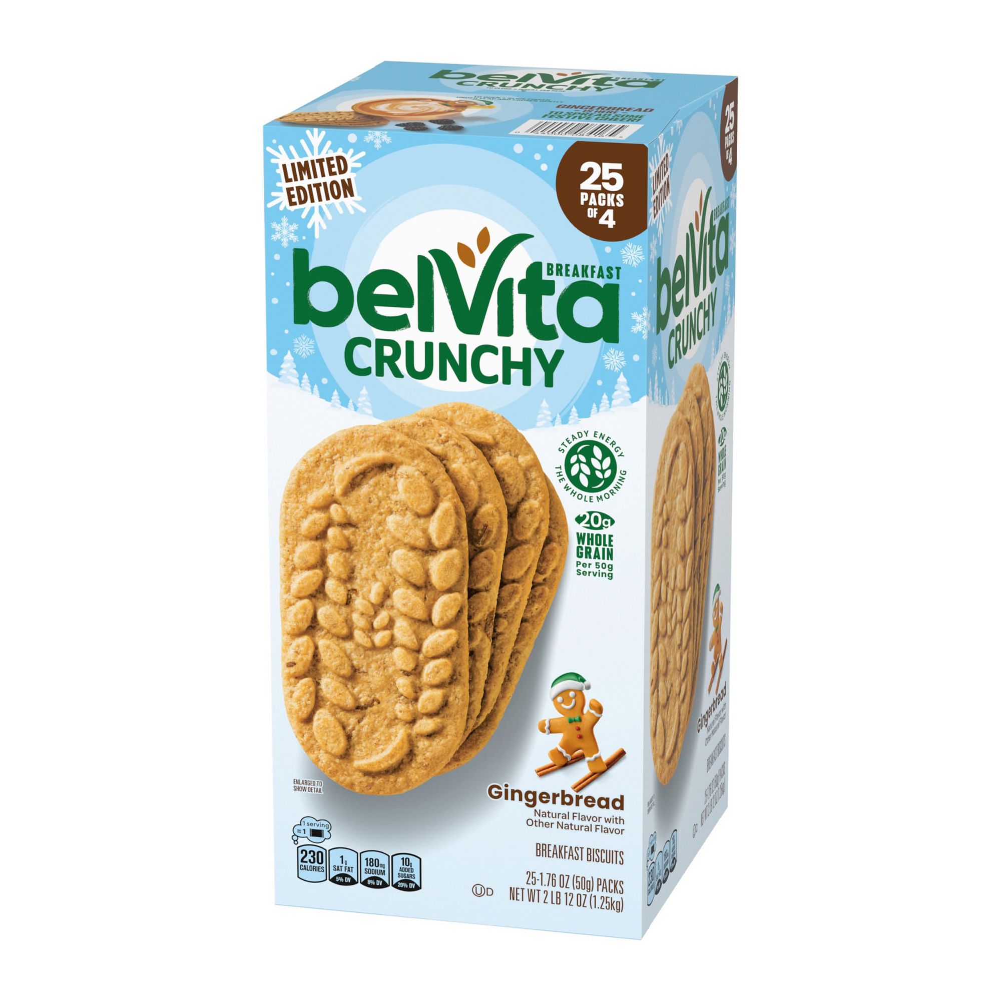 25 packs of belVita Gingerbread Breakfast Biscuits (4 biscuits/pack)