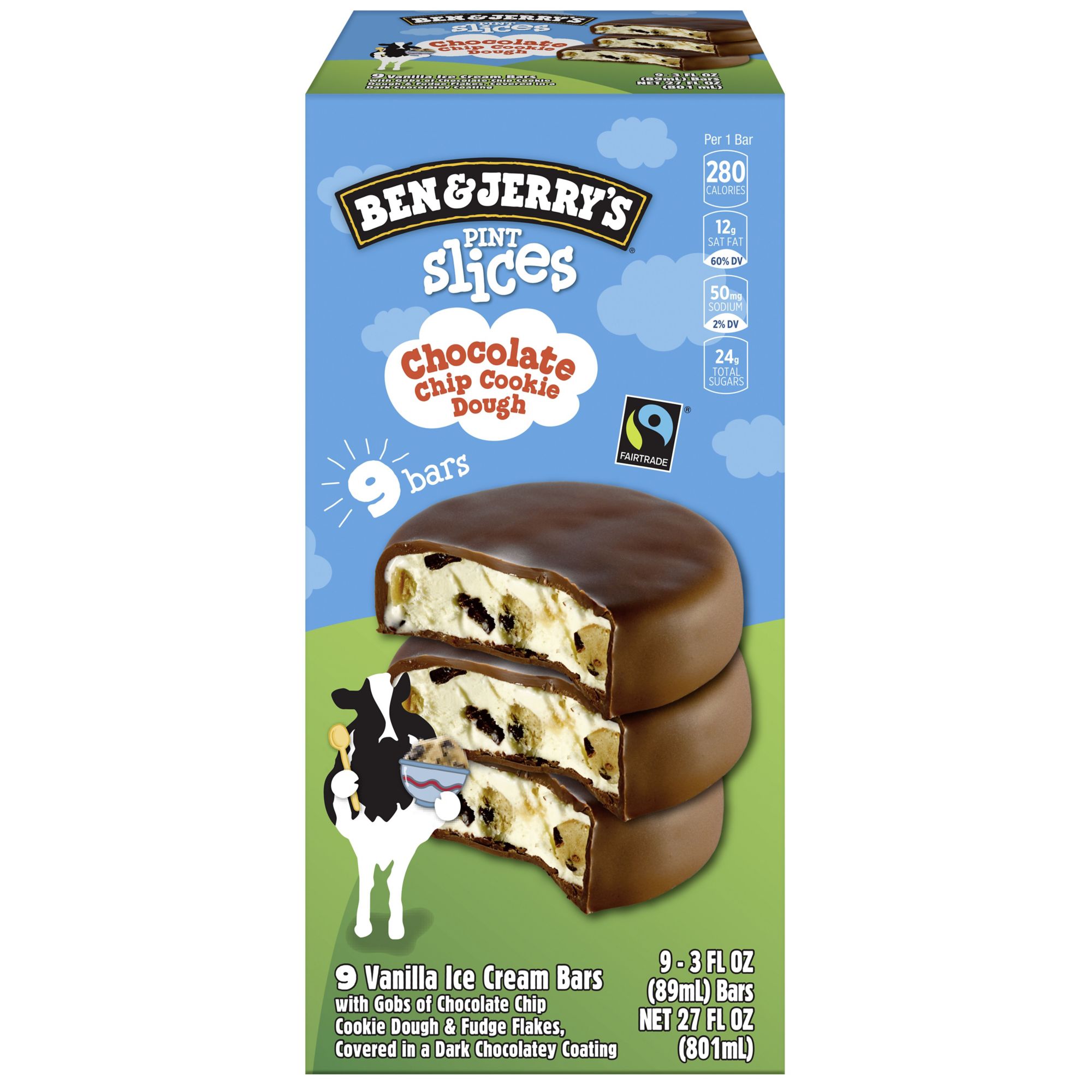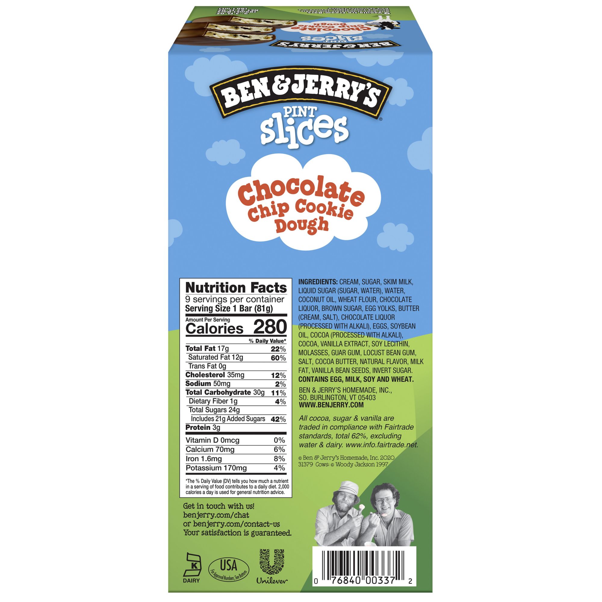 Includes: 9 Ben & Jerry's Pint Slices Chocolate Chip Cookie Dough, 3 oz. each