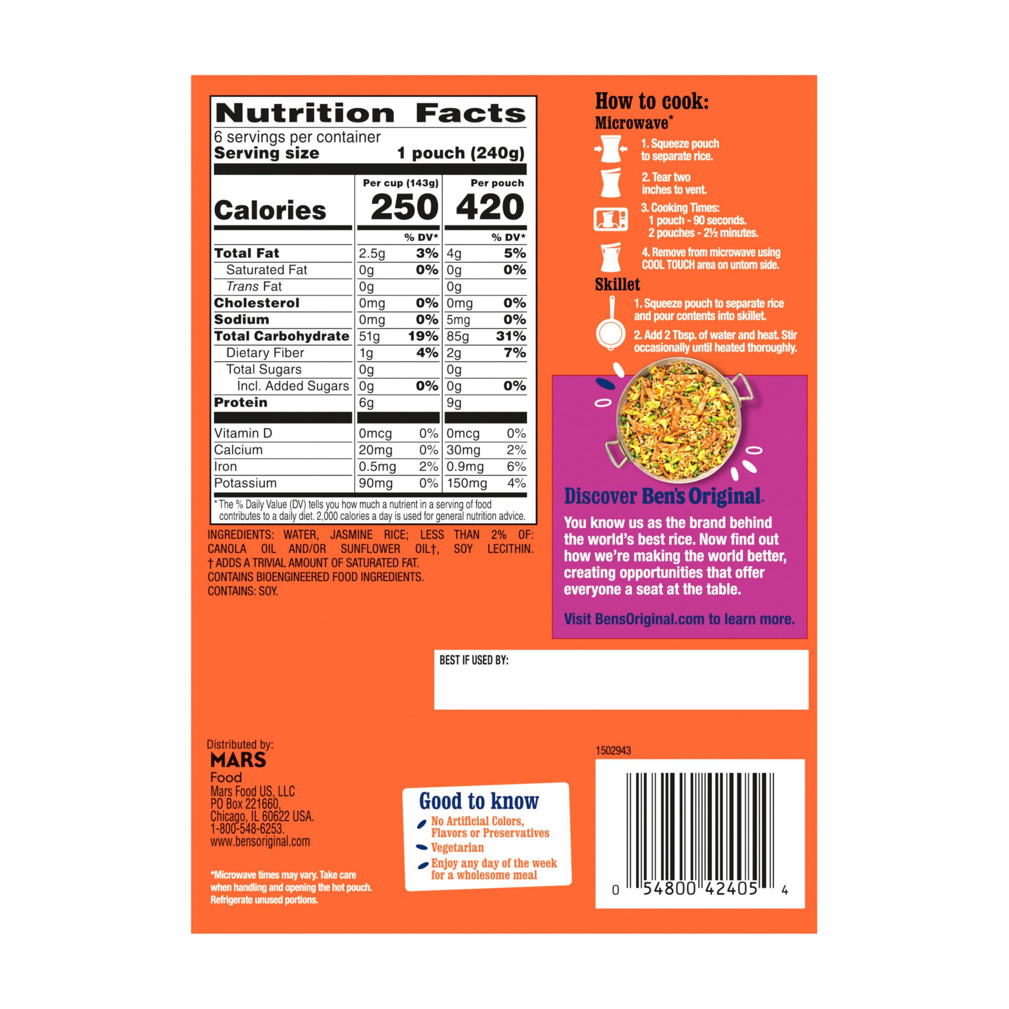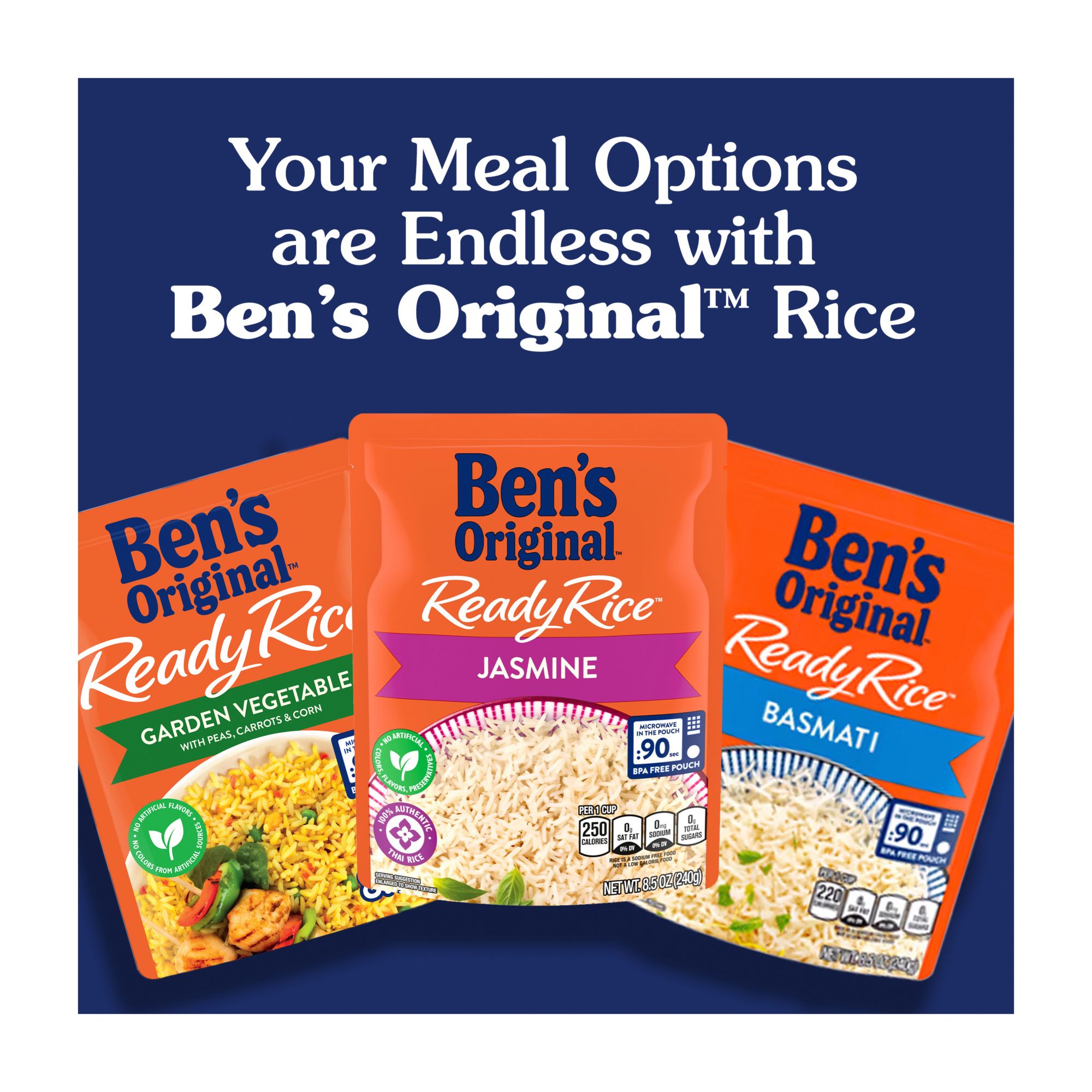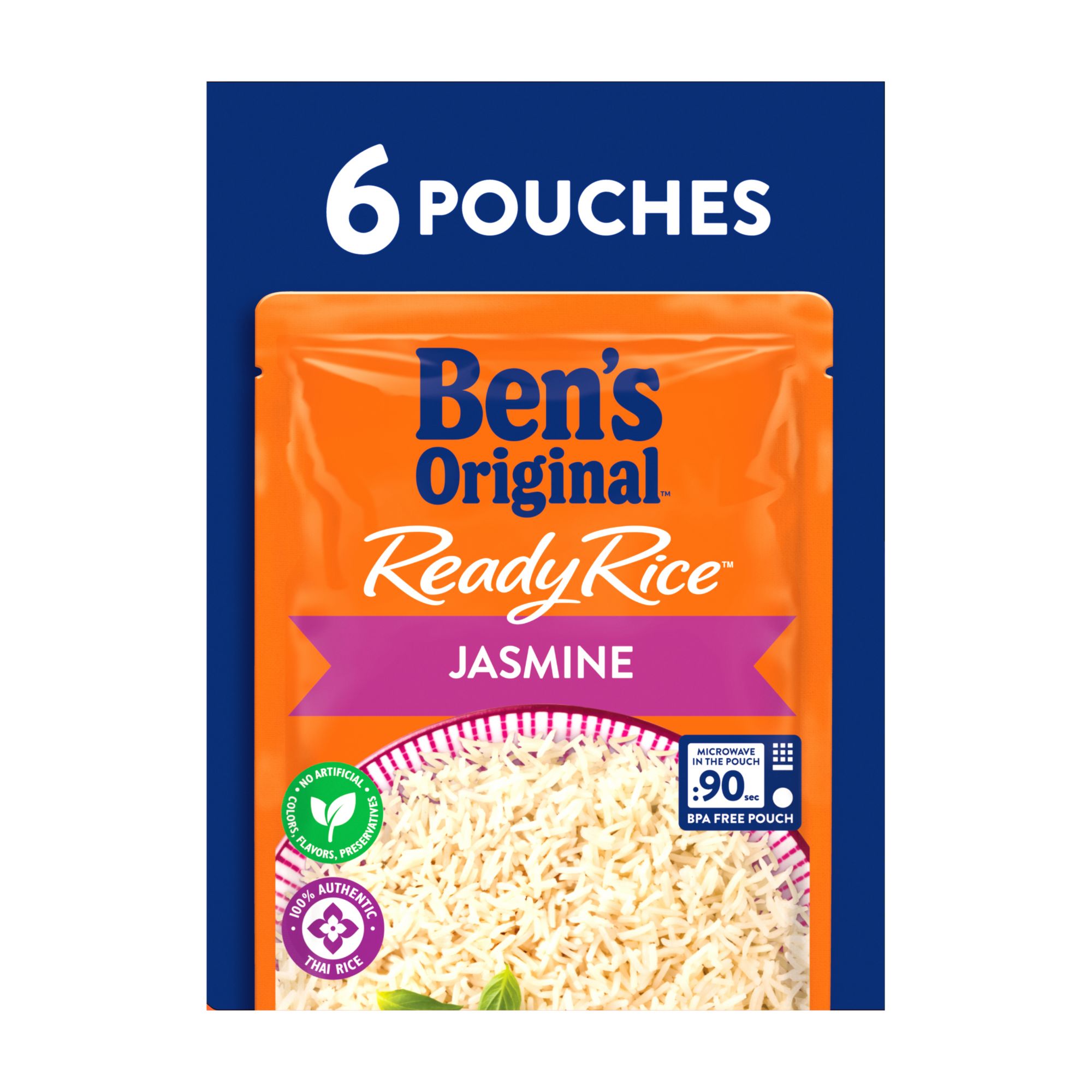 Ben's Original Ready Rice Jasmine Rice provides a delicious substitute for white rice, brown rice, or wild rice in just 90 seconds. Great as a cooked rice side dish or part of a savory main course, this microwave rice offers 100% authentic Thai rice that is perfect for satisfying your desire for Southeast Asian food. This long grain rice comes in a BPA-free microwaveable rice pouch that eliminates prep and cleanup, making it easier than ever to create a globally-inspired meal. For effortless cooking, microwave this rice for 90 seconds or thoroughly heat it in a skillet before serving. Pair this rice with your favorite Southeast Asian cuisine entrees or serve it plain. This Jasmine rice is vegetarian, very low in sodium and fat, and contains no artificial flavors, no artificial colors, no preservatives, or cholesterol. Ben's Original is dedicated to creating meals and experiences that offer everyone a seat at the table.