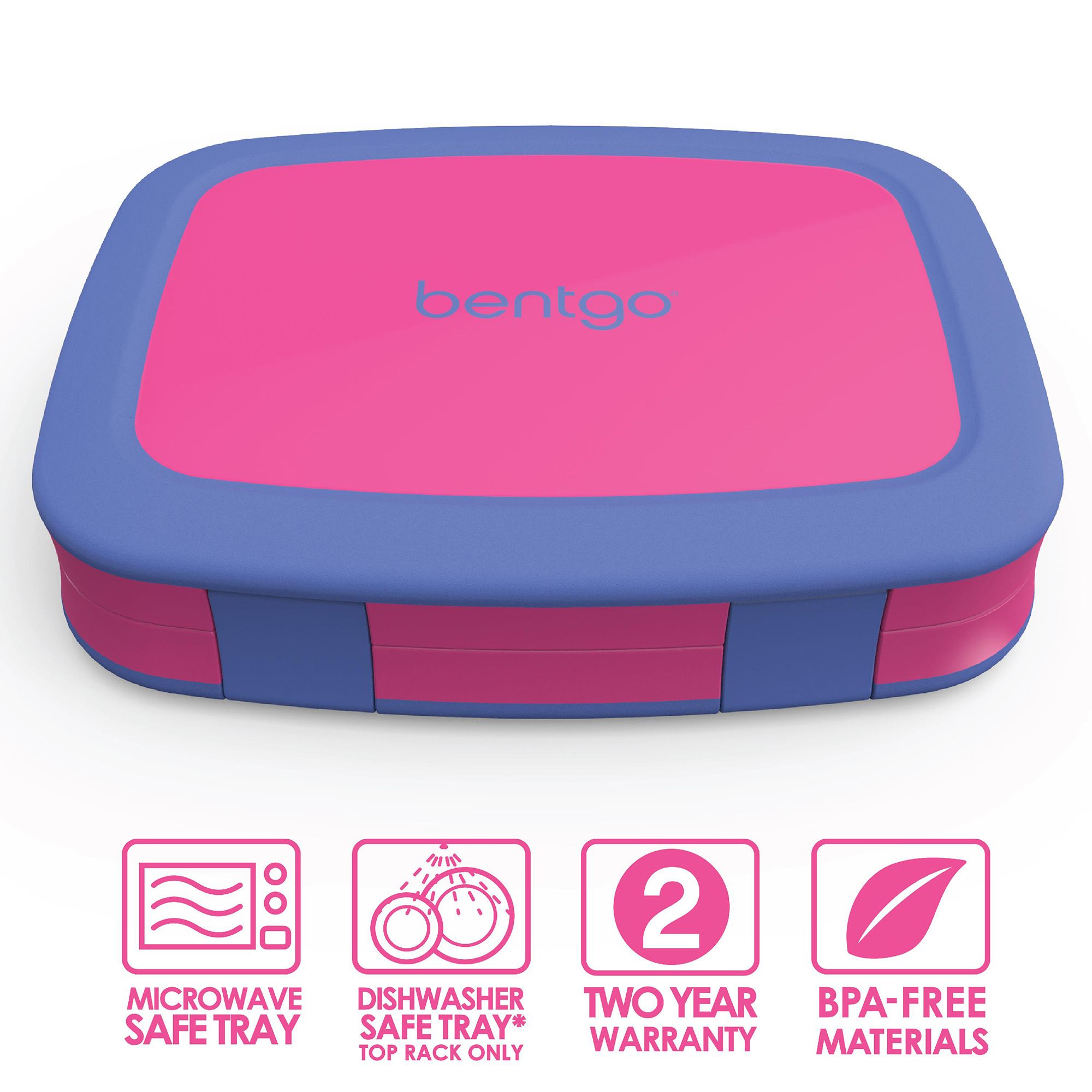 Includes five-compartment lunch box, fuchsia