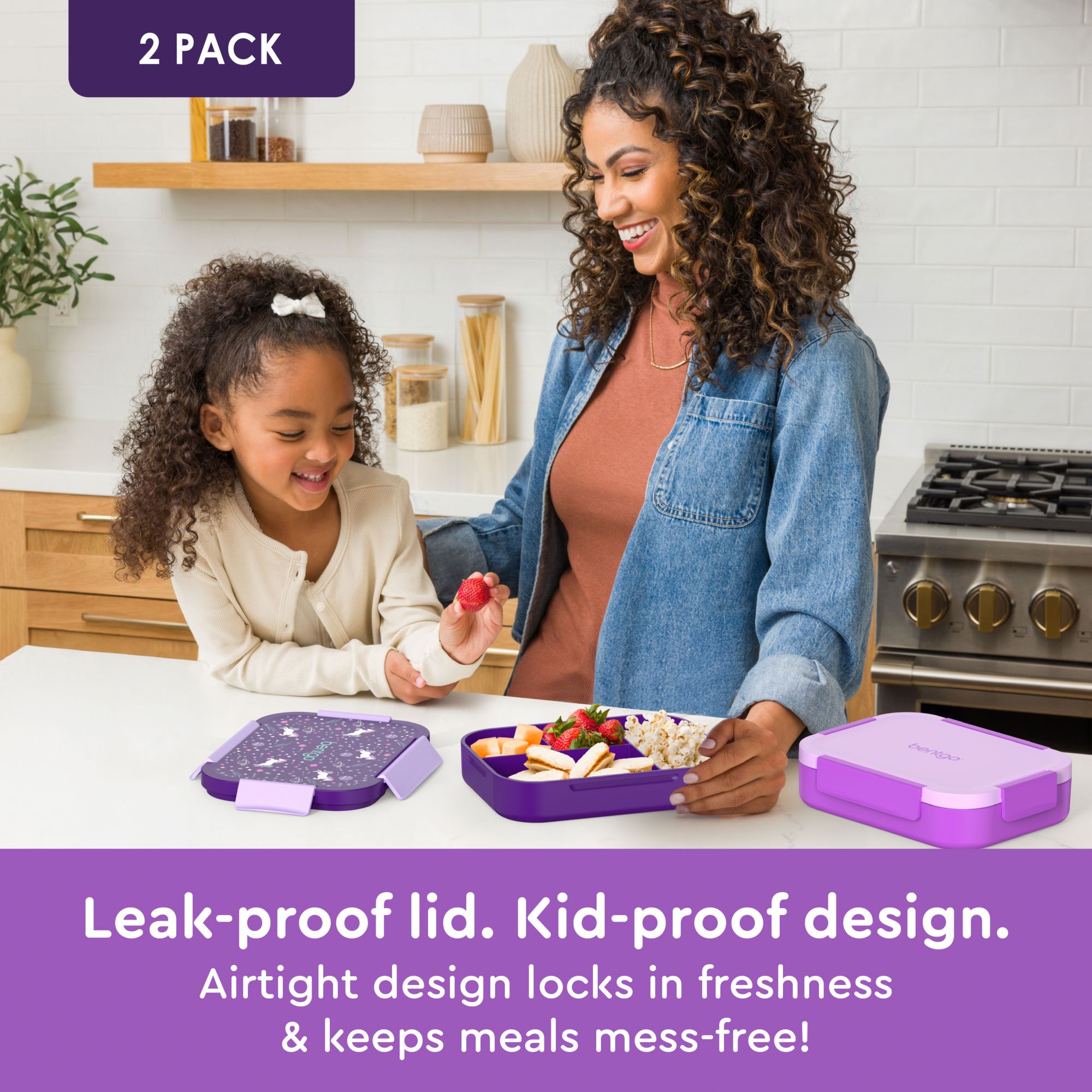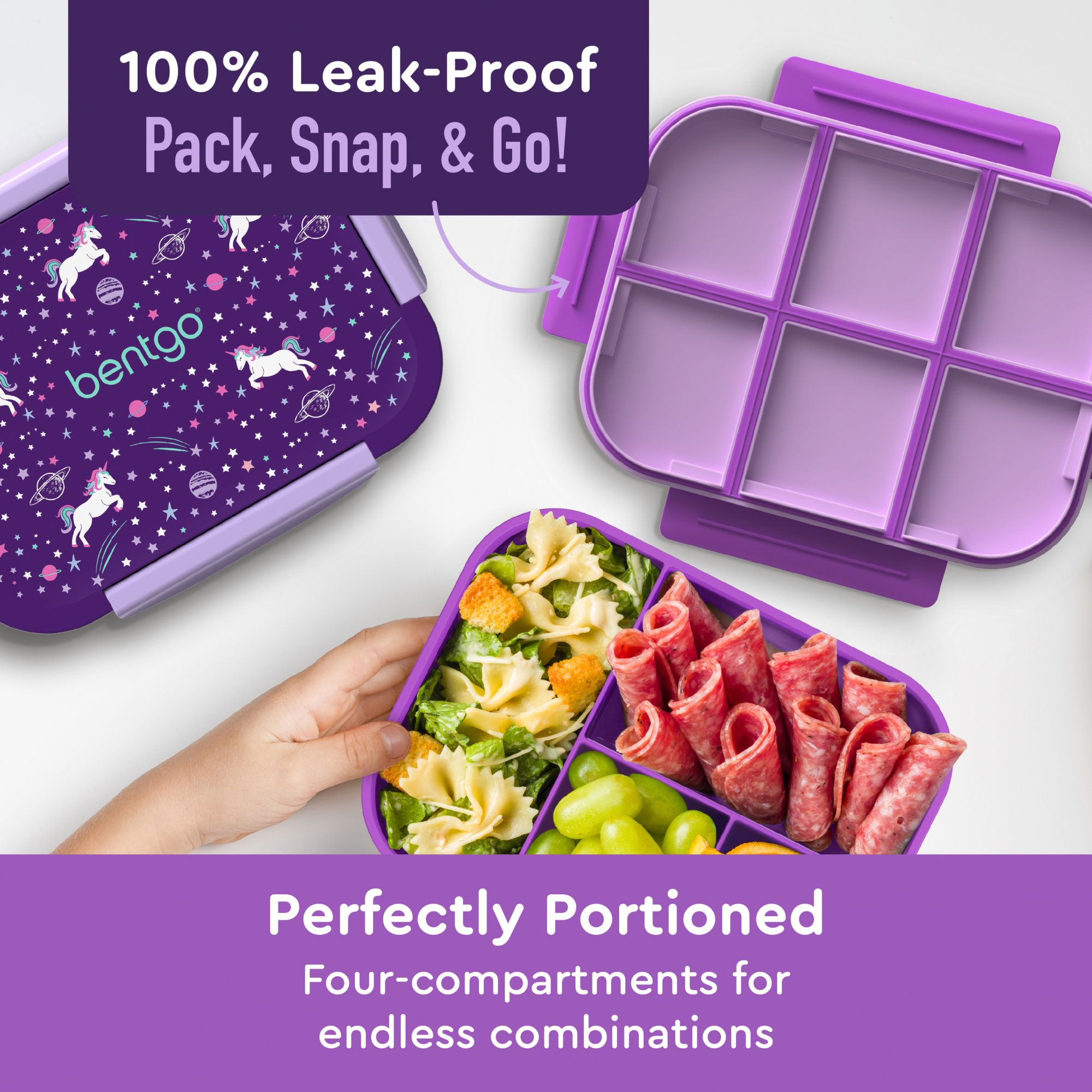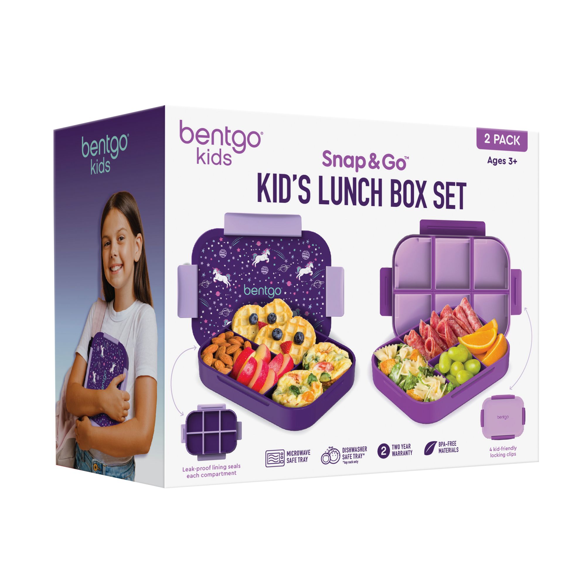 Bentgo Kids Snap & Go Leak-Proof Lunch Boxes - Unicorn & Purple, 2 pk.