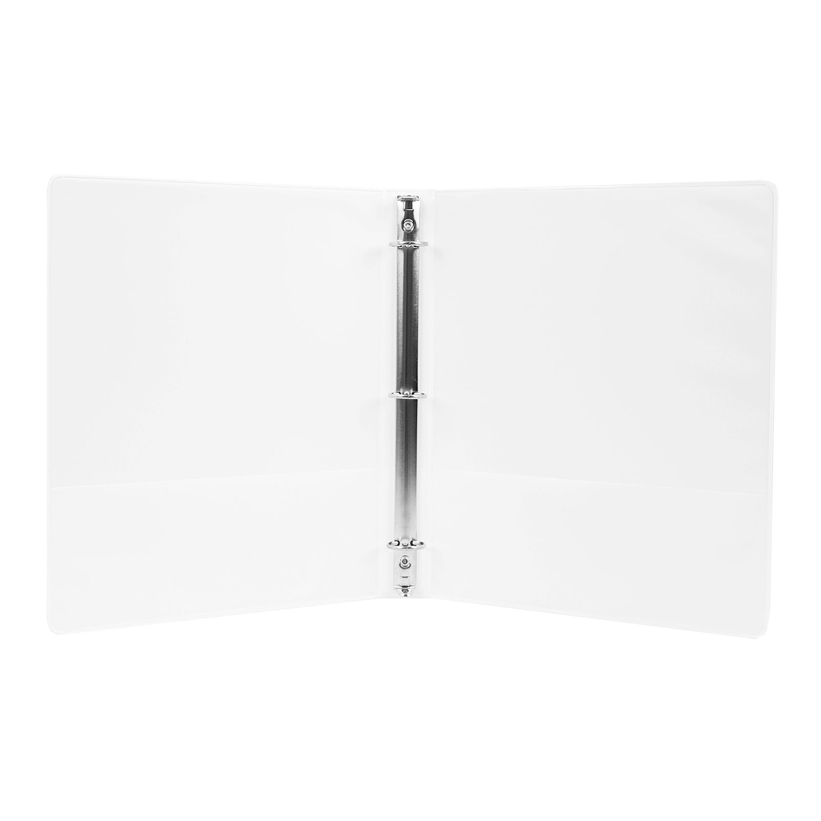 Depth capacity of 1" Holds letter-size sheets Basic white color PVC free manufacturing 1" round rings Holds up to 175 sheets 2 inside pockets Includes 6 white binders Warranty: 30 days
