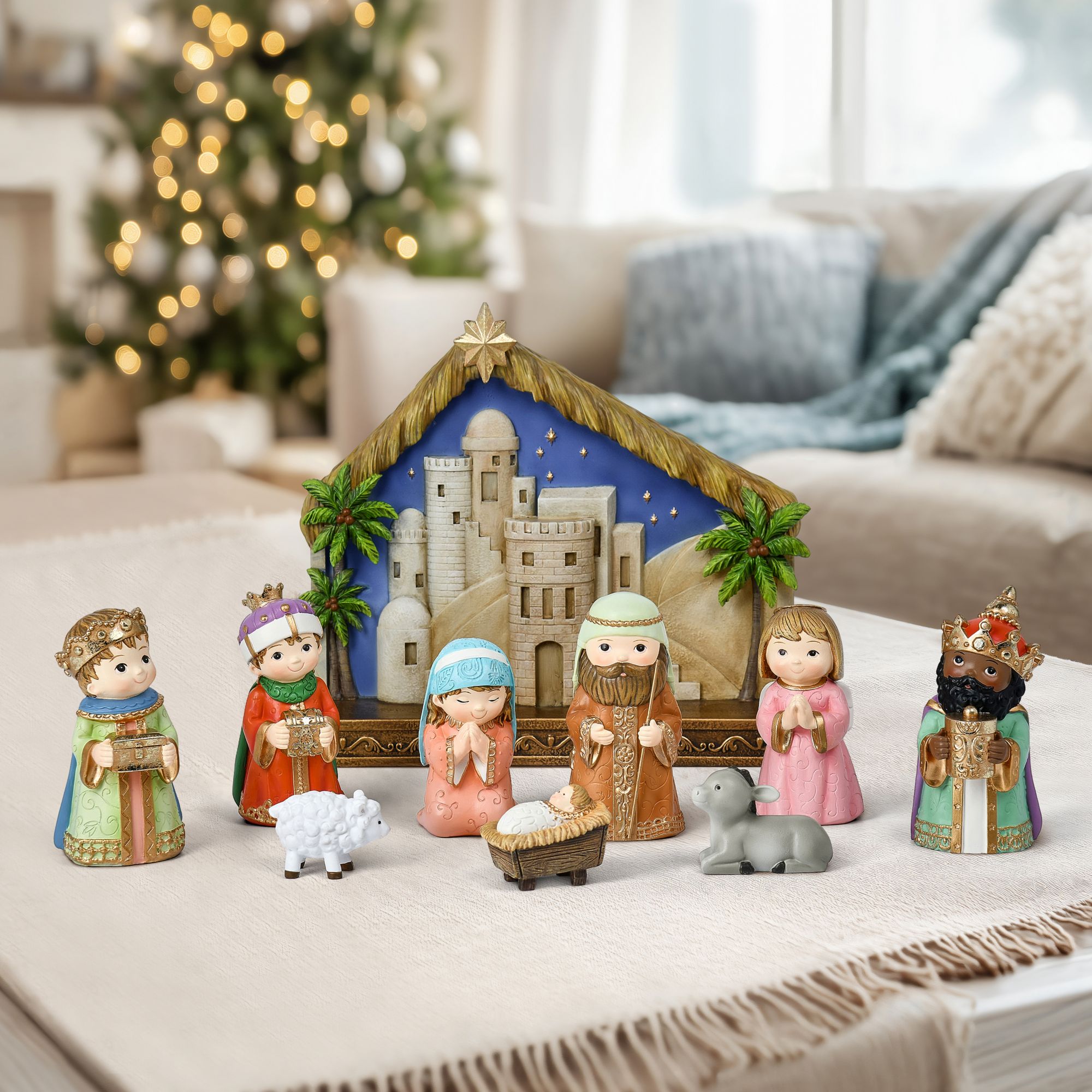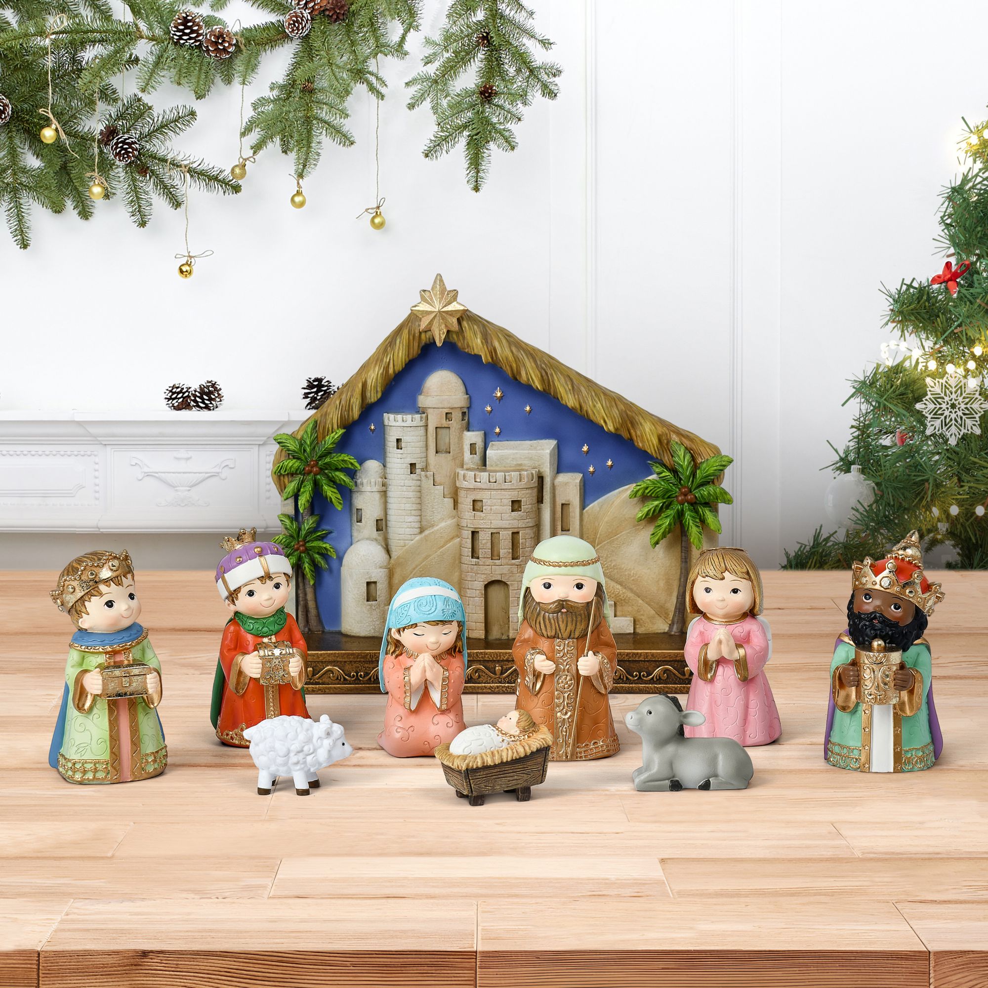 Includes 10-Pc. miniature nativity set