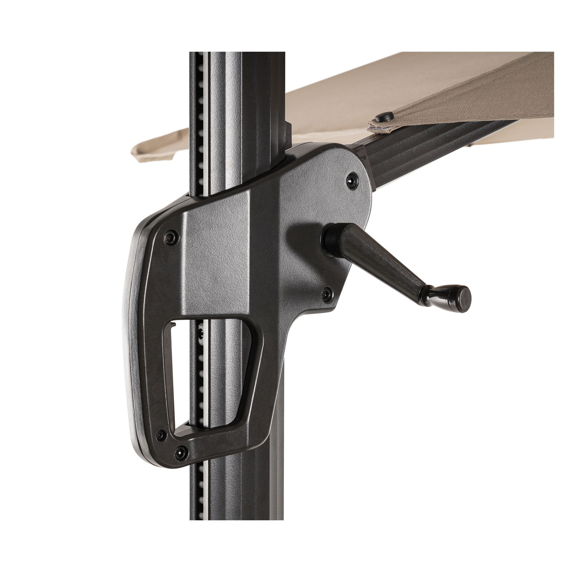 Exclusively at BJ's All weather spun polyester fabric resists fading, mildew and stains Canopy color fastness to ensure no fading within two years Rust-resistant aluminum frame with stainless fittings Heavy duty 3" x 2.2" square aluminum pole Wind resistant aluminum ribs with tube LED lights and middle light Deluxe full crank mechanism All-direction rotational mechanism 200 lb. water fillable base for complete stability Deluxe solar panel with rechargeable Nimh batteries Includes umbrella, base pole with rotation, plastic cover, screw set, base