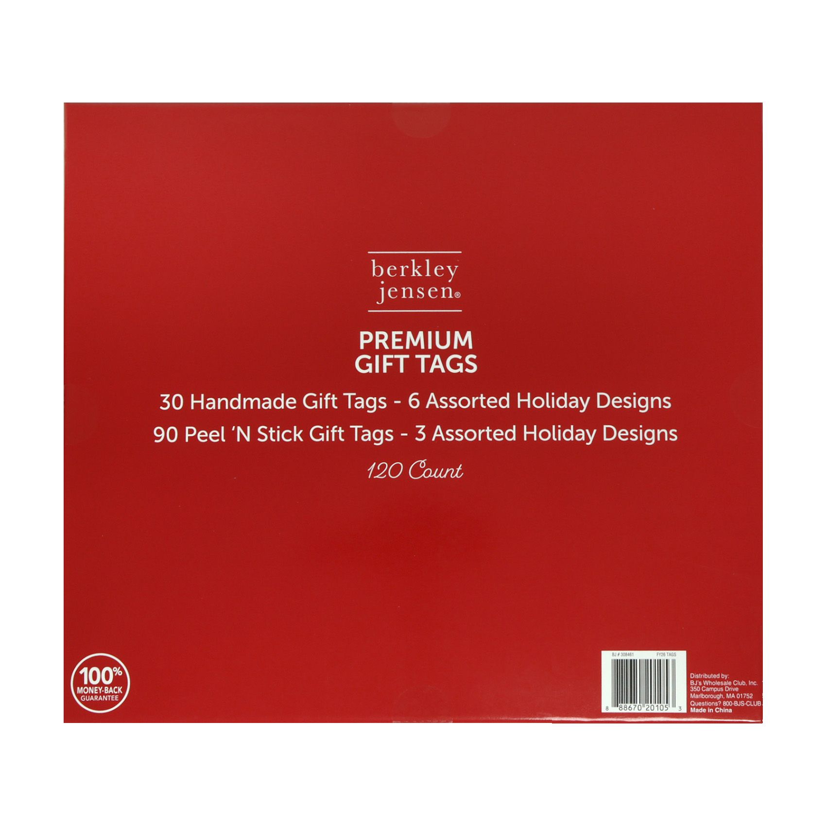 Exclusively at BJ's 30 handmade tags, 90 peel n stick tags Beautiful embellishments including glitter, foil, and attachments Unique and updated designs Incredible value Adds a unique flair to your gift giving, making it personal and stylish Peel n Stick gif tags
