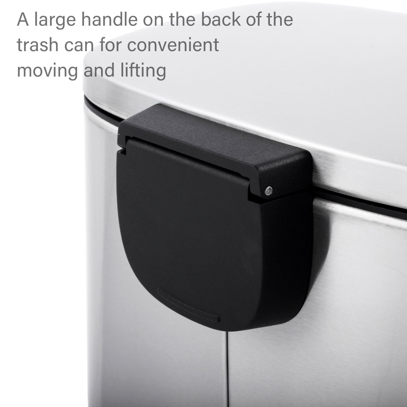 - A large handle on the back of the trash can for convenient moving and lifting