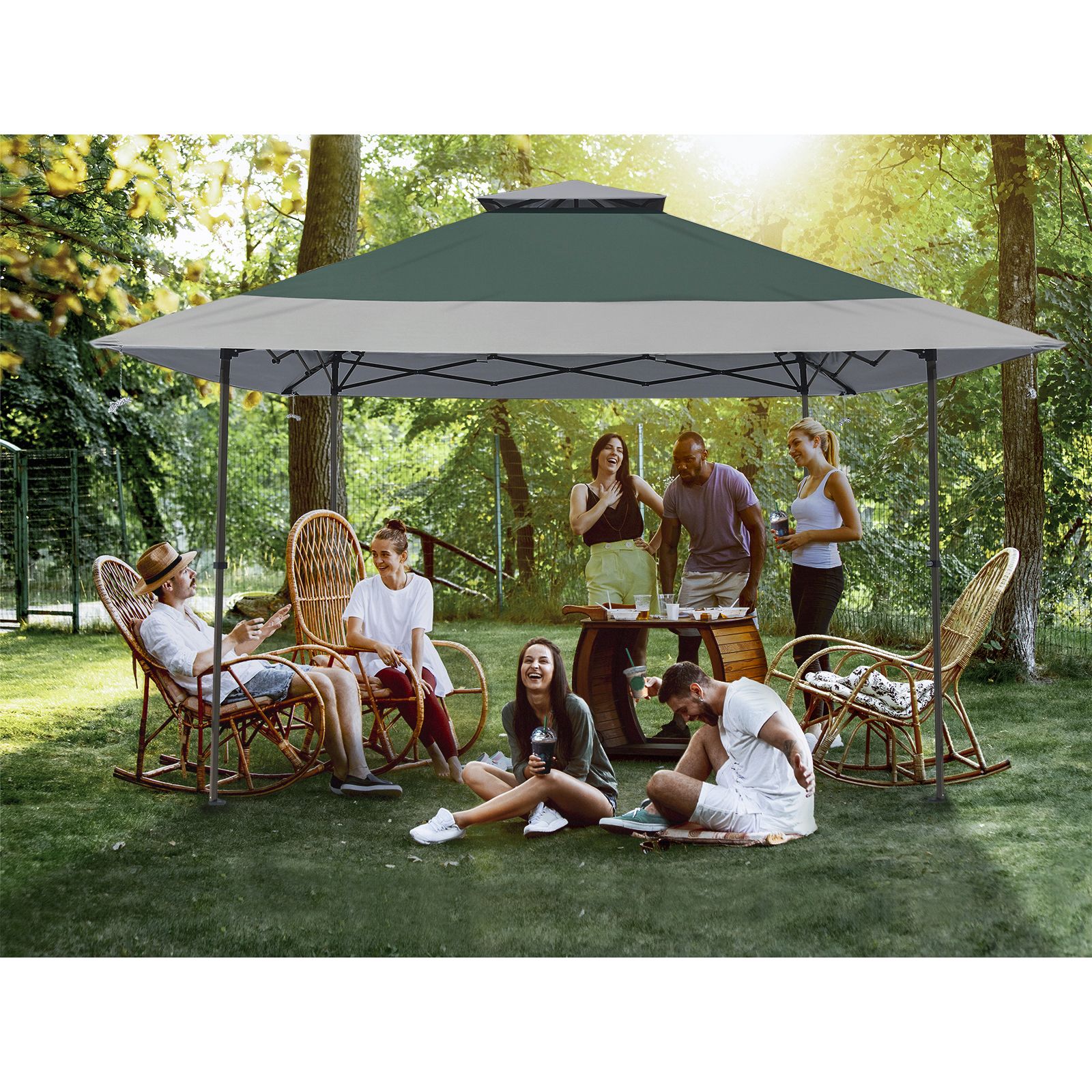 With patented EasyLift technology, setting up your canopy is a snap, even if you’re by yourself, as EasyLift allows one person set up or take down in 60 seconds or less. Just open, push up, twist and extend. The EasyLift hub also locks securely into place and comes down just as easily. New AutoEave technology saves extra steps to open and fold the canopy. For easy portability, the Berkley Jensen 13' x 13' Instant Canopy includes a wheeled carrybag. Four included ground stakes keep the canopy secure while in use.