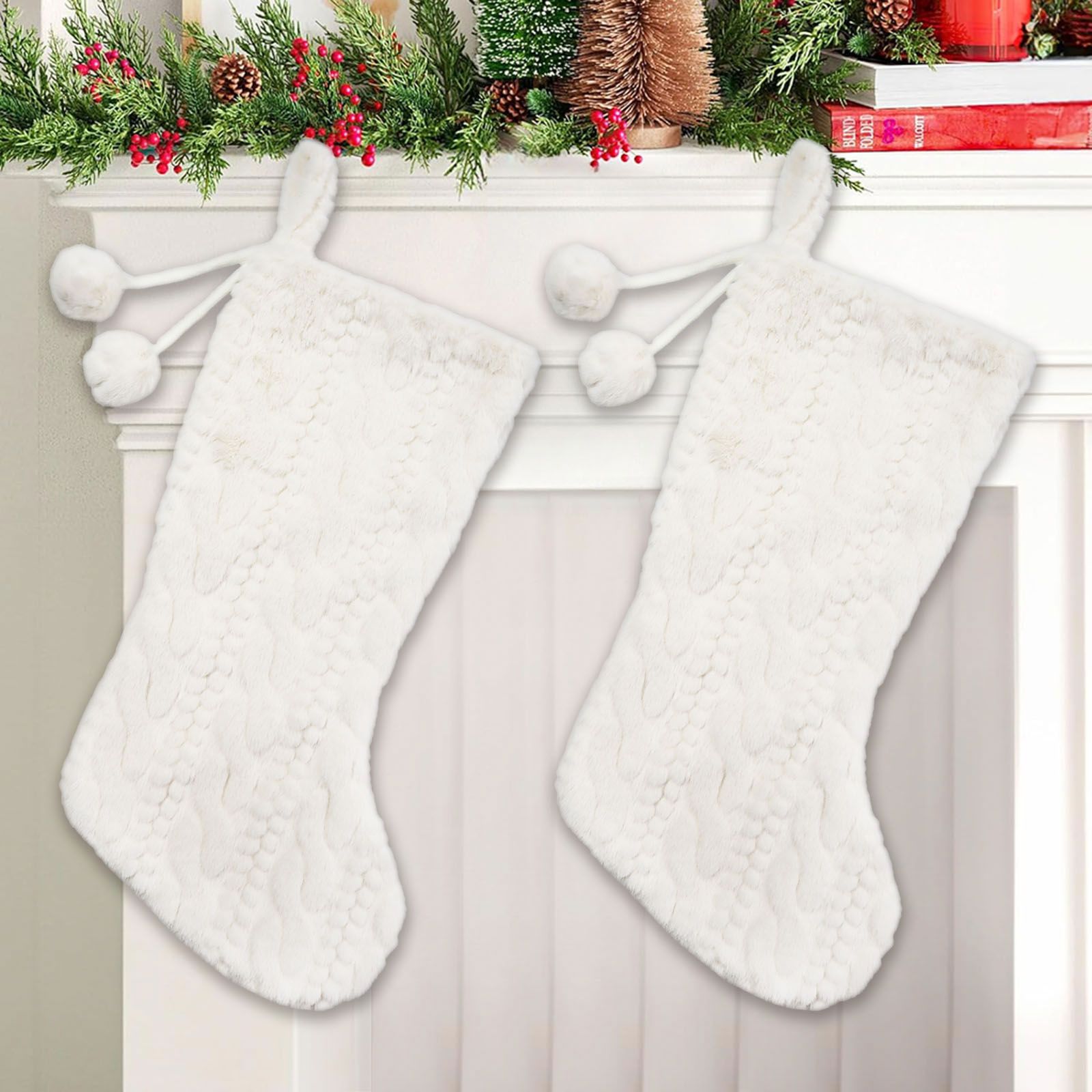 Berkley Jensen 2 pk. Christmas Stocking, Fuzzy White