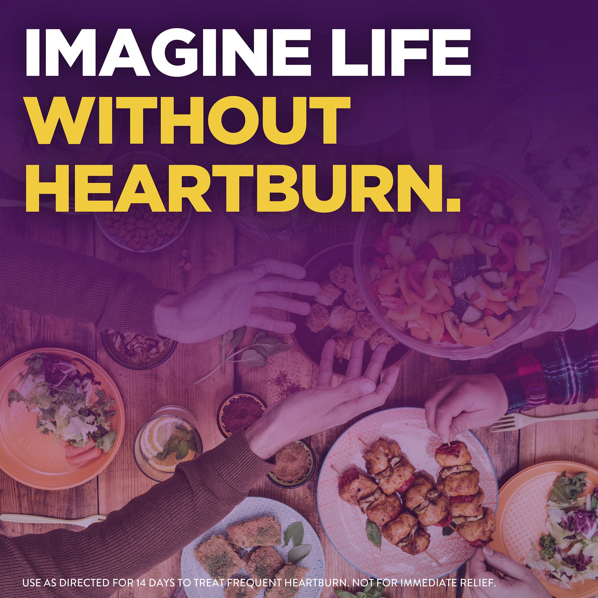 Esomeprazole Magnesium works to inhibit acid production So you can enjoy the foods and beverages that could cause frequent heartburn Clinically proven to treat frequent heartburn that occurs 2 or more days a week Take once every 24 hours for 14 days