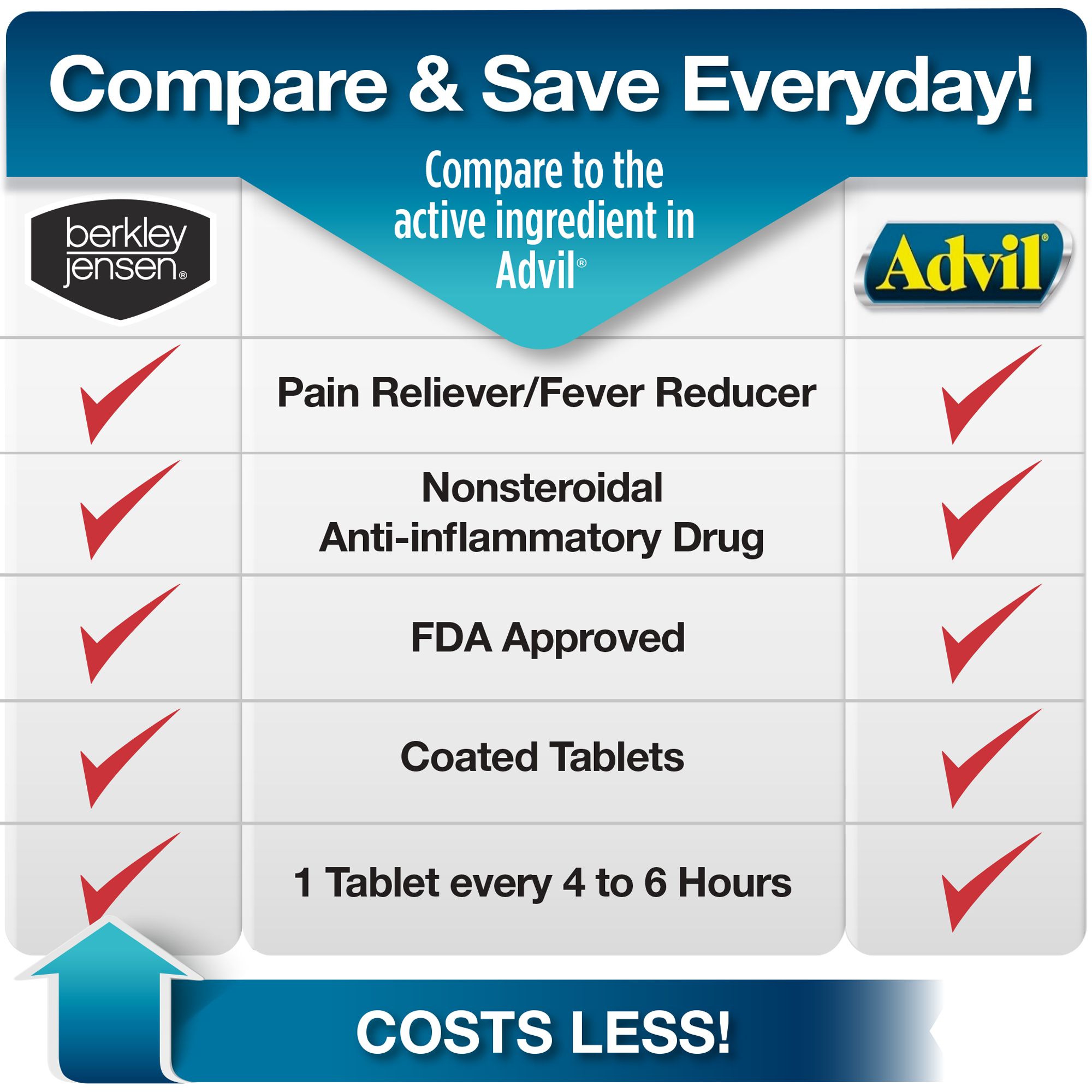 In this 500-count pack, these Berkley Jensen 200mg Ibuprofen Tablets will be great for your everyday pain relief needs. Compare these tablets to active ingredients in the brand name Advil. These tablets help with headaches, arthritis, back pain, and more. These tablets are a great value for the money.