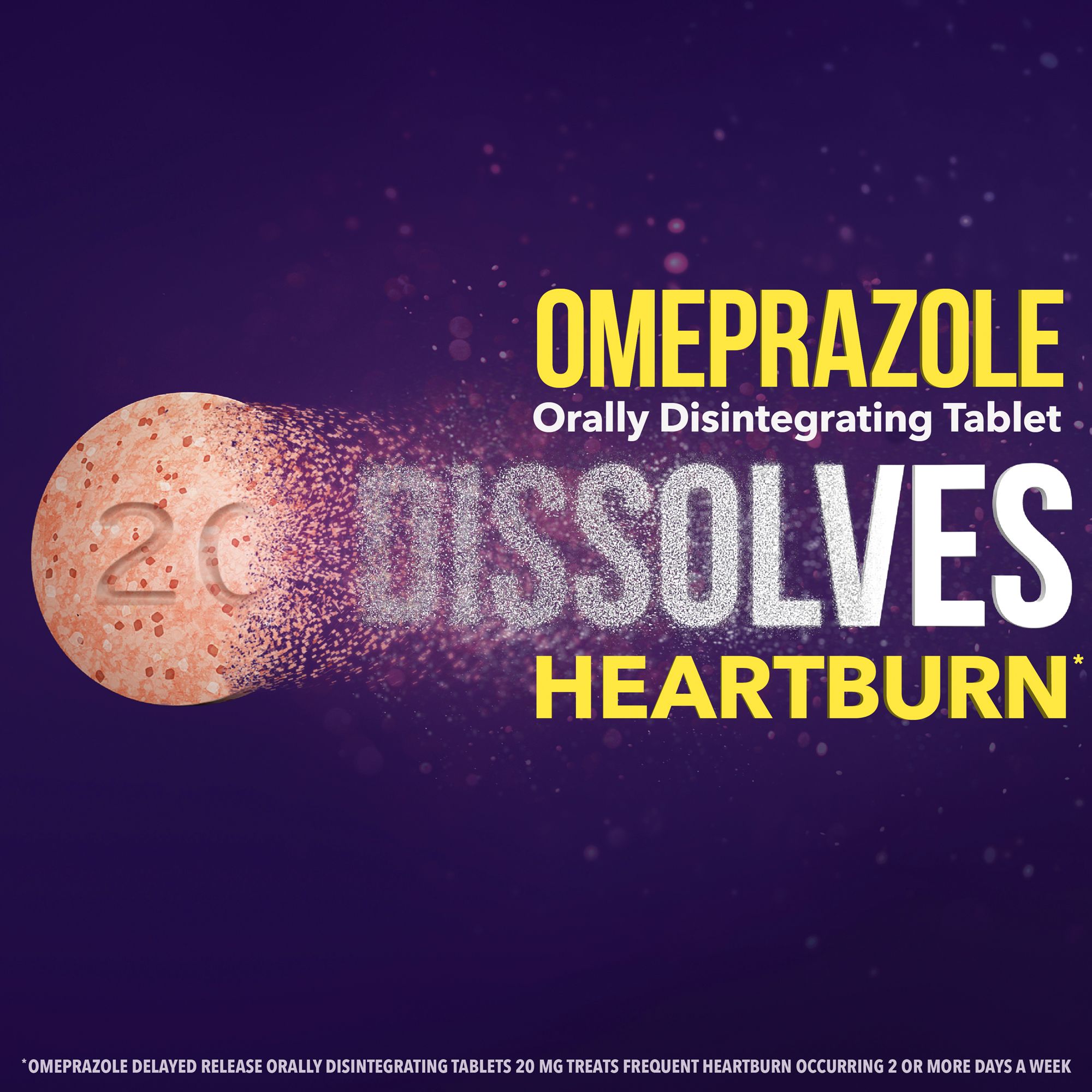 The active ingredient in Omeprazole Delayed Release Orally Disintegrating Tablets, 20 mg, is 20 mg of omeprazole, an acid reducer Dissolves in your mouth, no water required These strawberry-flavored tablets may also be swallowed whole with water The #1 physician recommended type of OTC acid reducer Omeprazole works by interfering with acid-producing proton pumps in the stomach One pill, once a day, taken over a 14-day course of treatment, blocks stomach acid production for 24 hour treatment