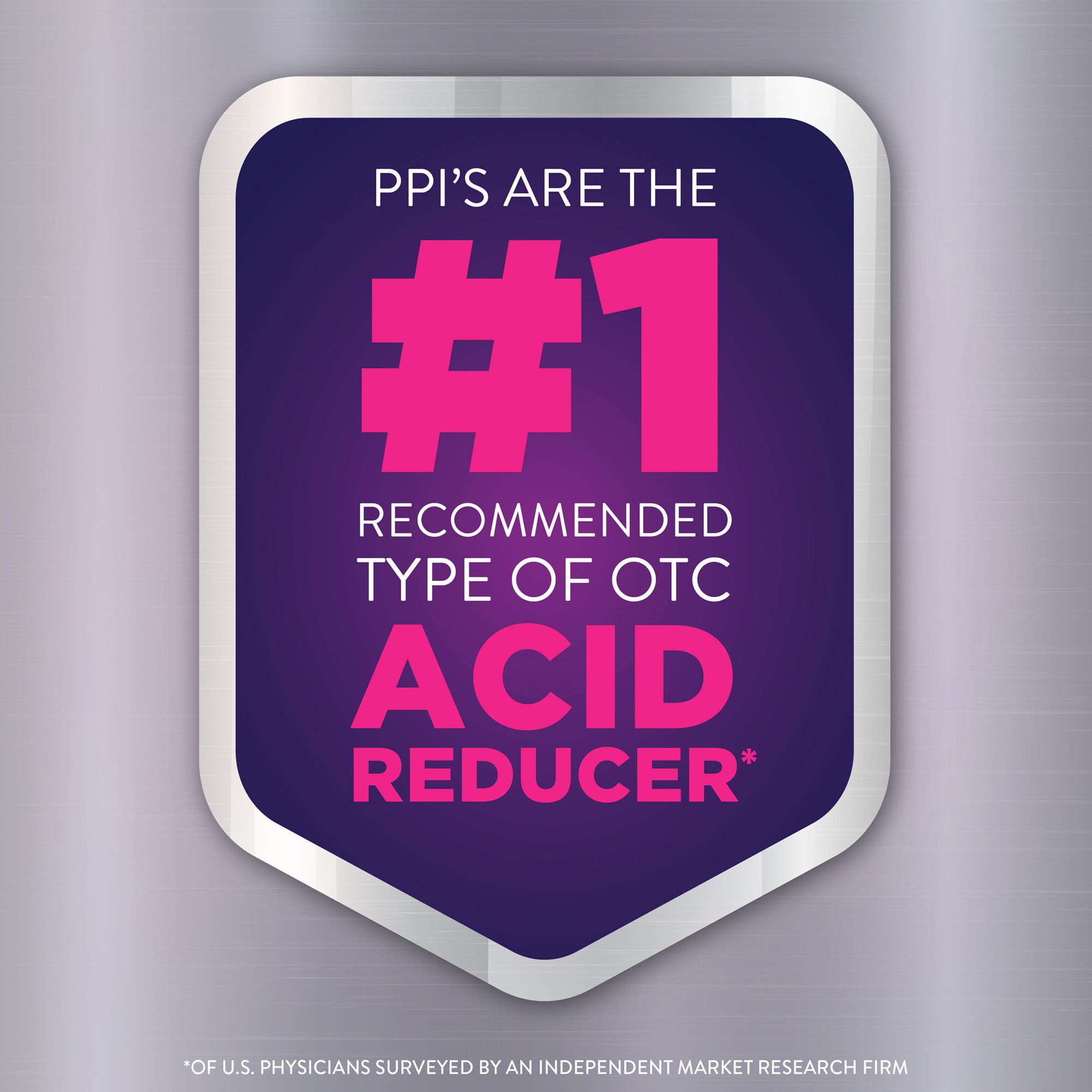 This acid reducer is FDA-approved to treat frequent heartburn that occurs 2 or more days per week. Omeprazole deactivates acid-producing pumps in the stomach lining to inhibit acid production at the source. This product is not intended for immediate relief of heartburn; may take 1 to 4 days for full effect.