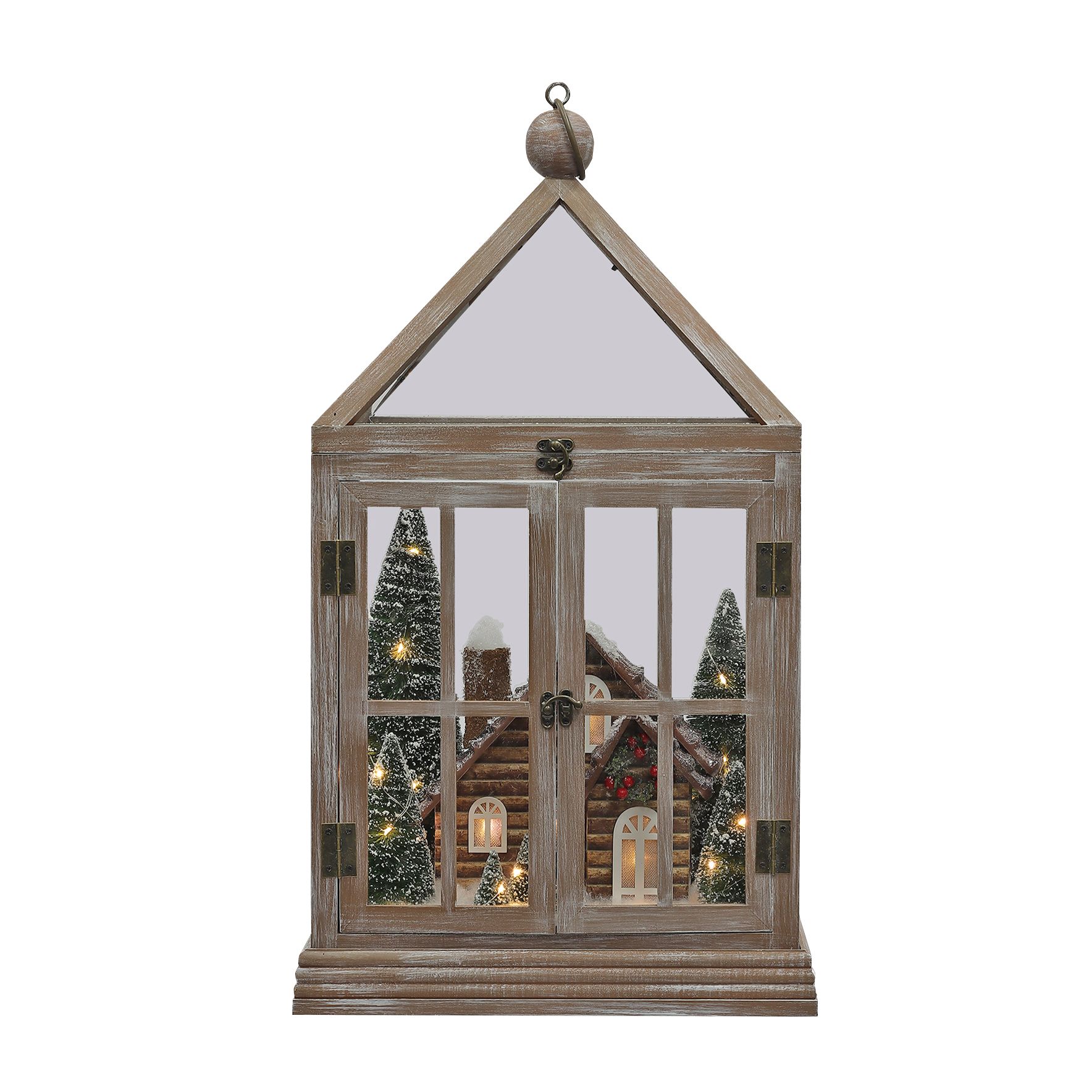 Berkley Jensen 22" Wood Lantern with Lit Log Cabin Scene