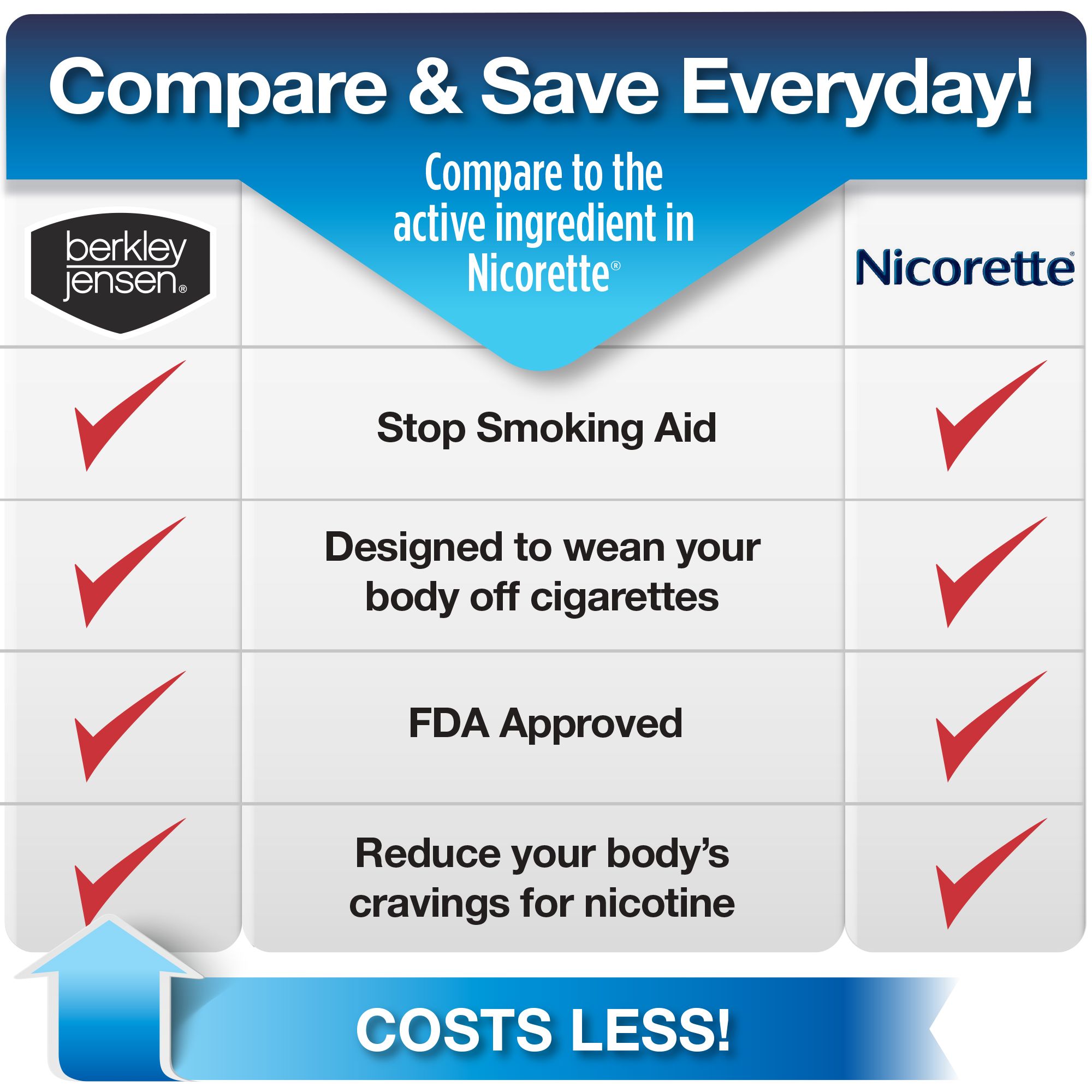 Double your chance to successfully quit smoking with Nicotine Polacrilex Uncoated Gum, 2 mg (when used as directed with a support program. Many people require several quit attempts to stop smoking). Nicotine Polacrilex Uncoated Gum, 2 mg (nicotine), Original Flavor, is a stop smoking aid for those who smoke their first cigarette more than 30 minutes after waking up. This product is part of a Nicotine Replacement Therapy, which is designed to wean your body off cigarettes. It helps to regulate, control and gradually reduce your body's nicotine cravings. Smoking has two addictive components, a physical and a mental need for the nicotine in tobacco. Nicotine gum addresses the physical need to smoke by reducing withdrawal symptoms, including nicotine cravings. American Cancer Society (ACS) supports nicotine replacement therapy to help people on their journey towards a smoke-free lifestyle. Compare to Nicorette Gum active ingredient.