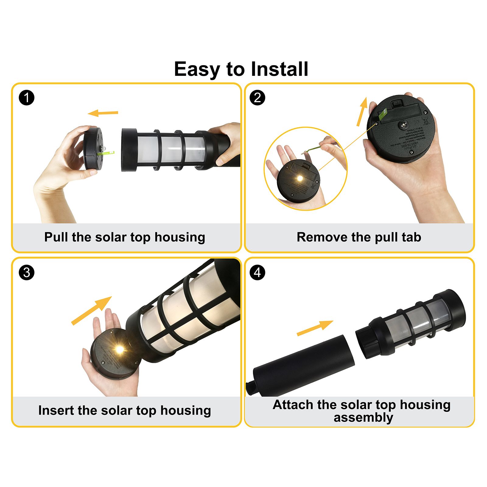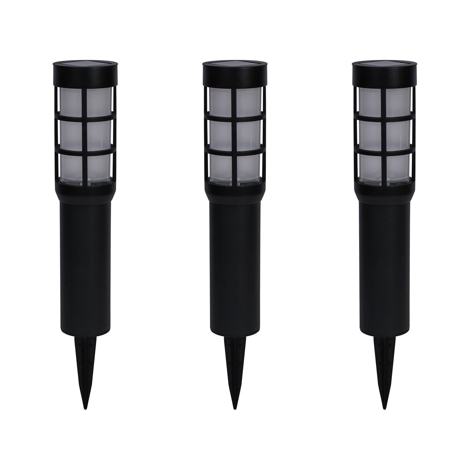 - Includes three solar top hats, three posts, three ground stakes, three Ni-MH rechargeable batteries, instruction manual