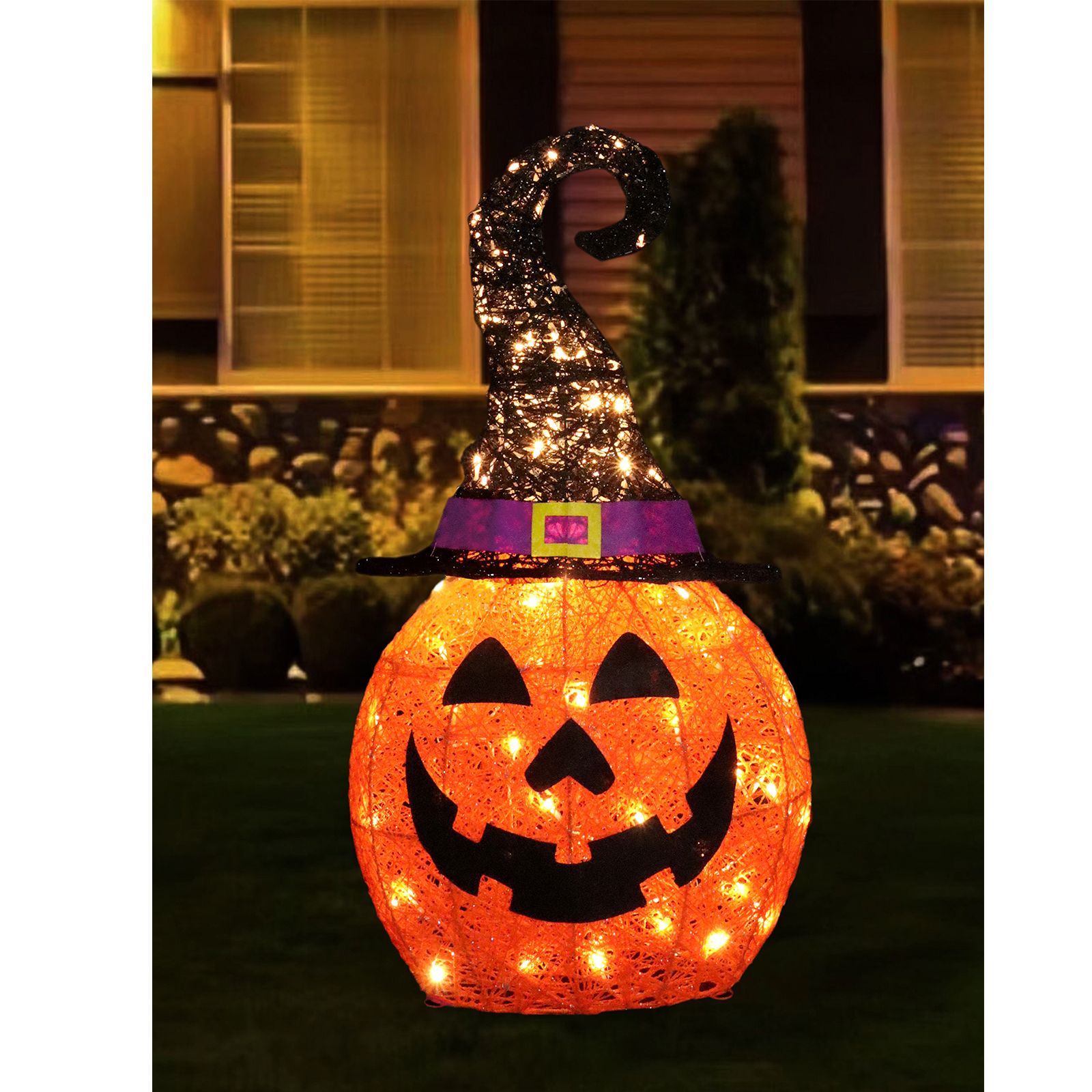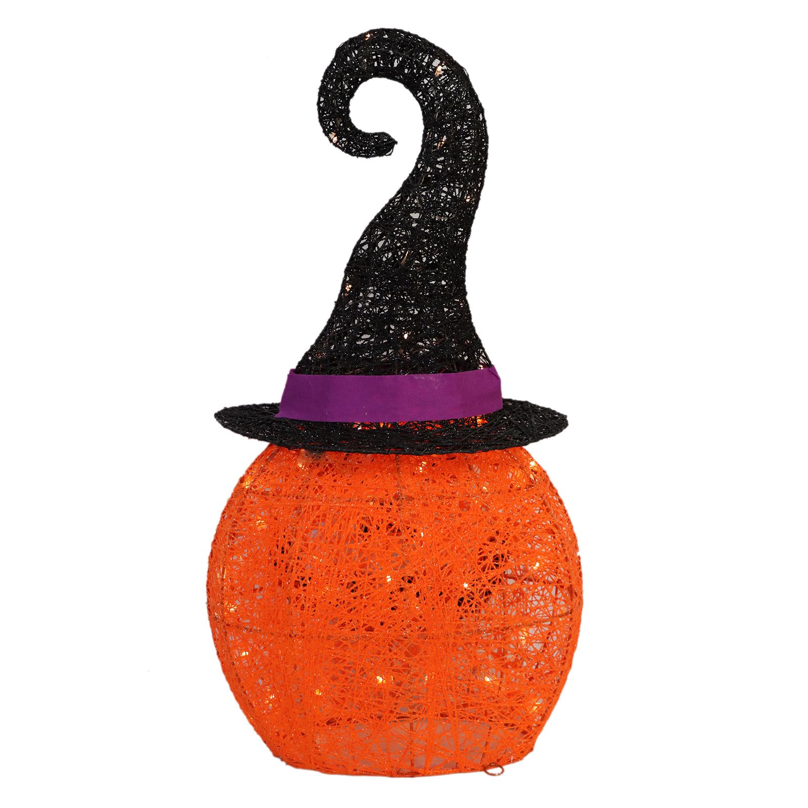 Includes decorative orange pumpkin with black hat and assembly instructions.