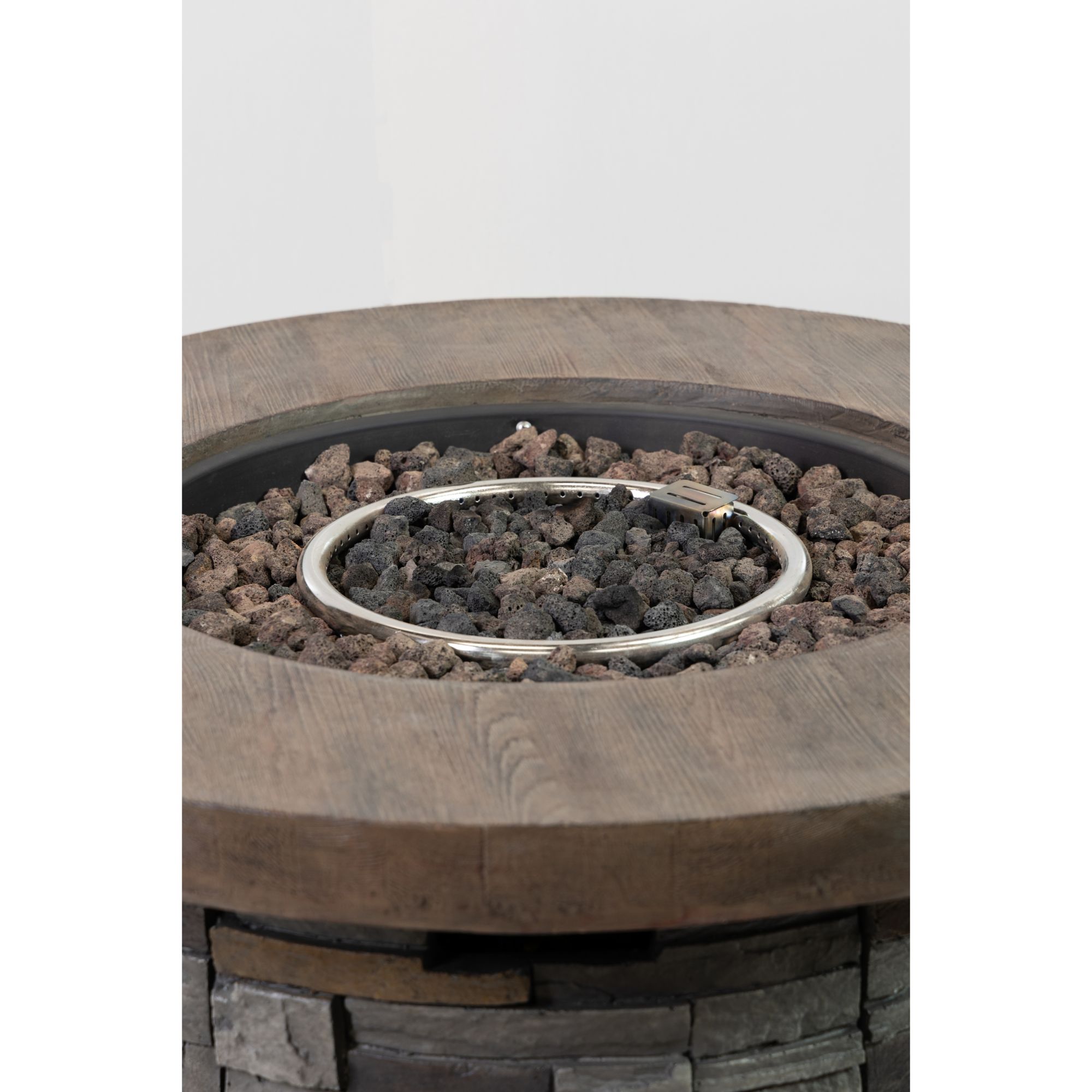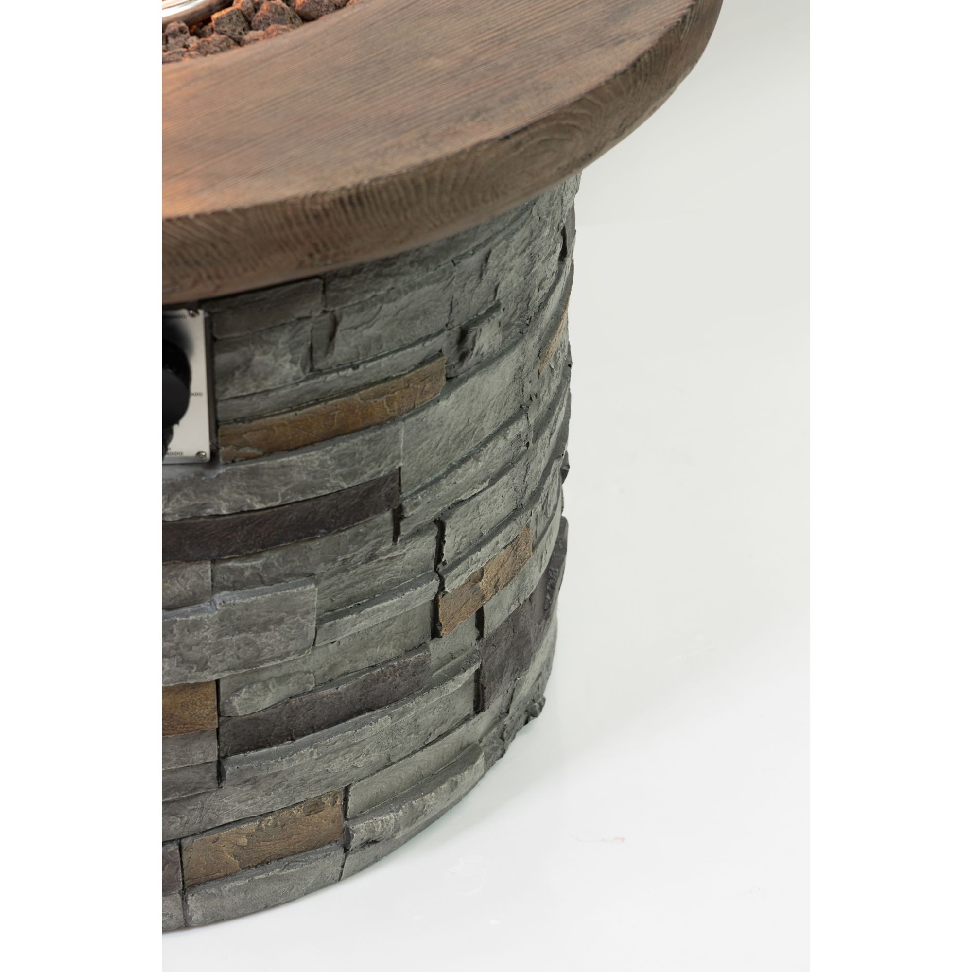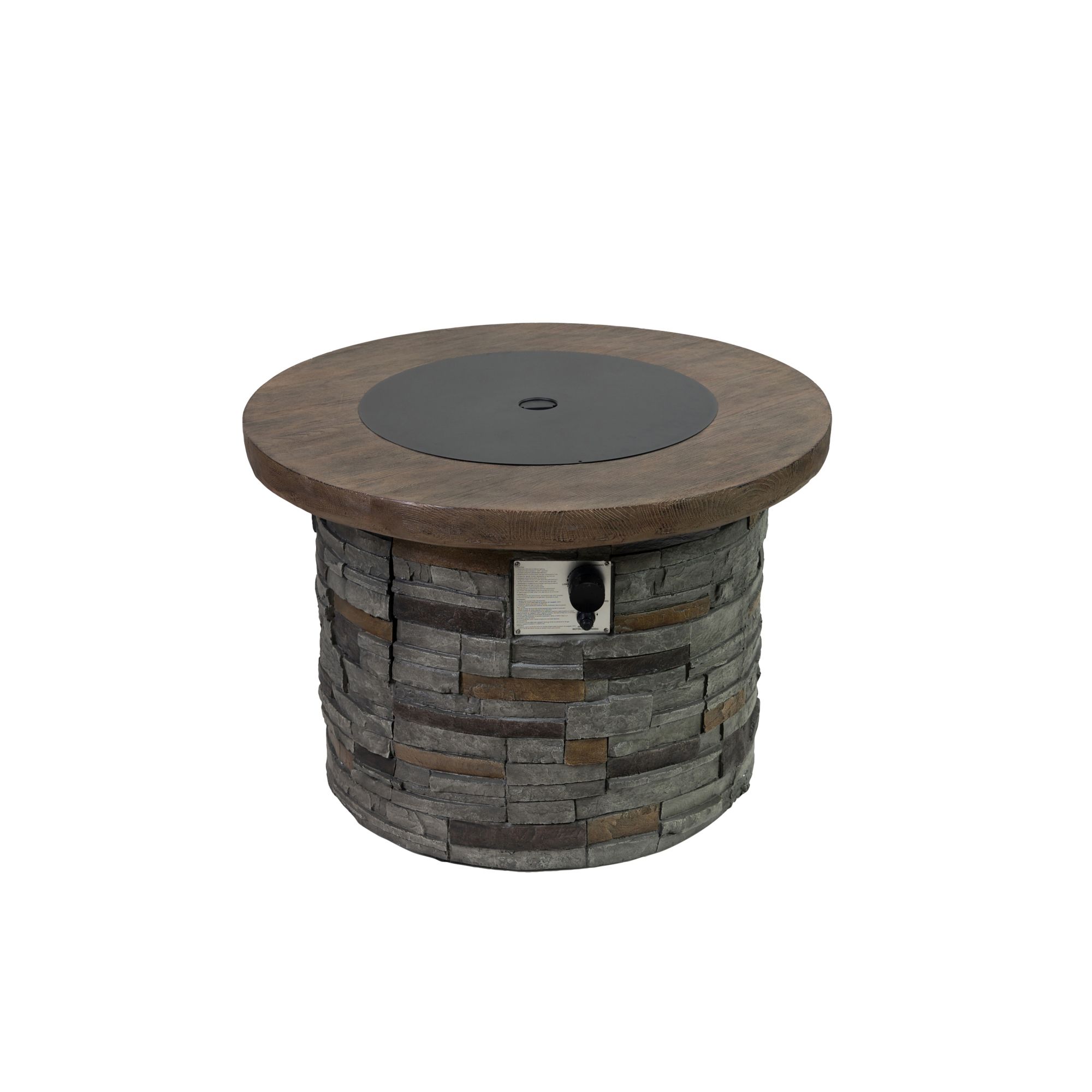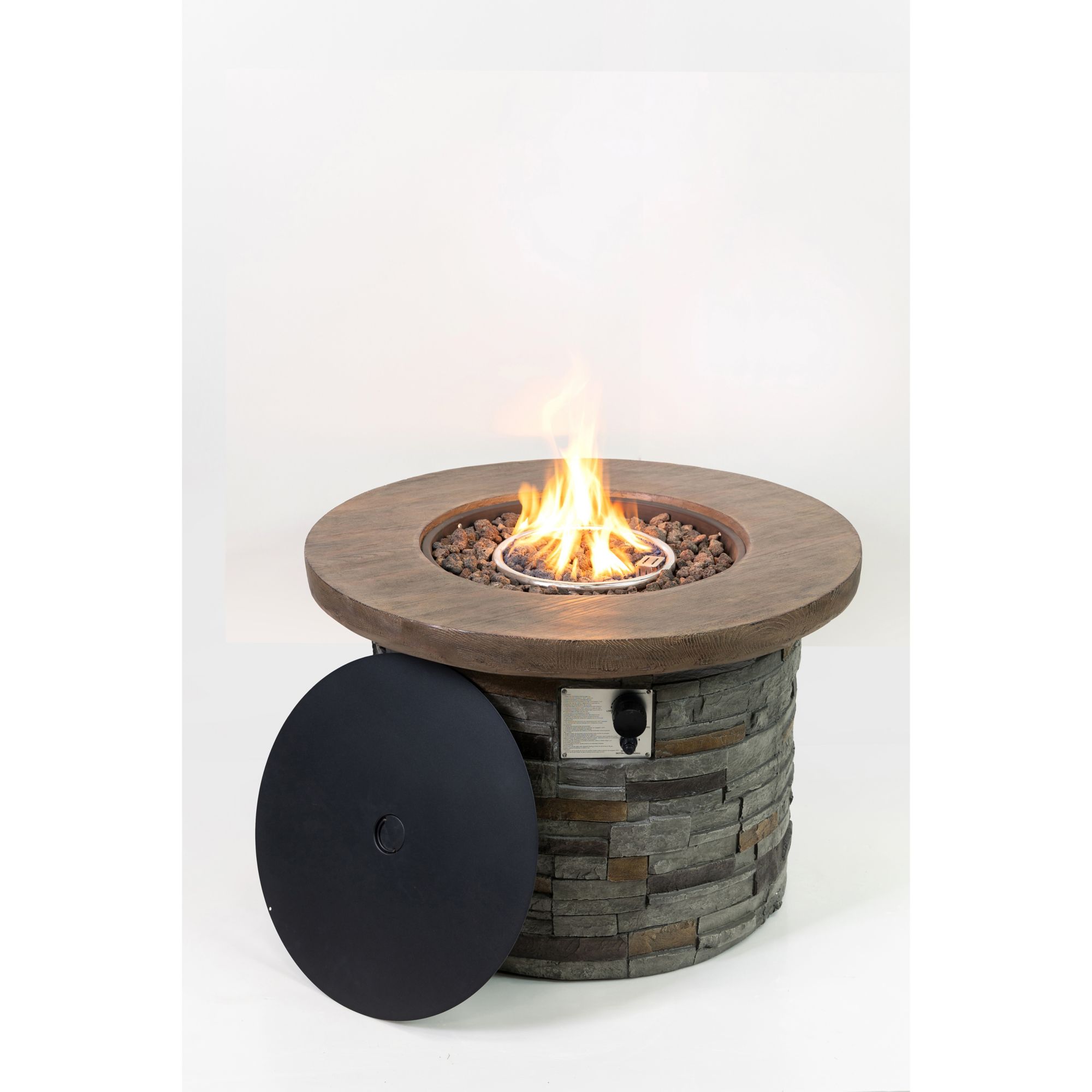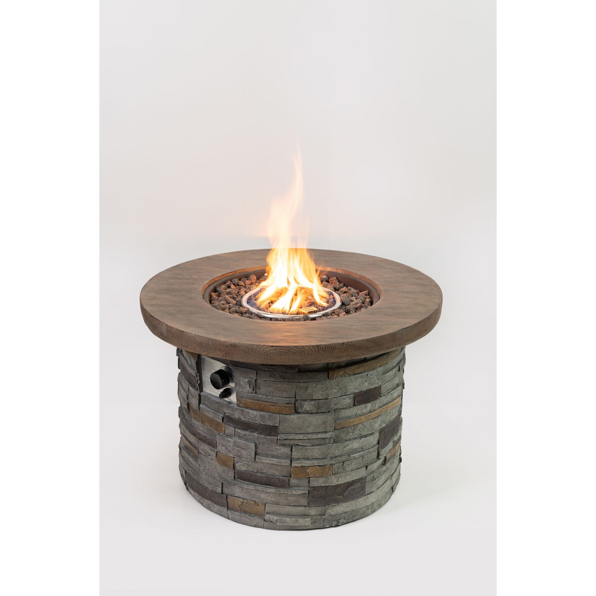 Includes 35" round wood/ stone gas fire pit