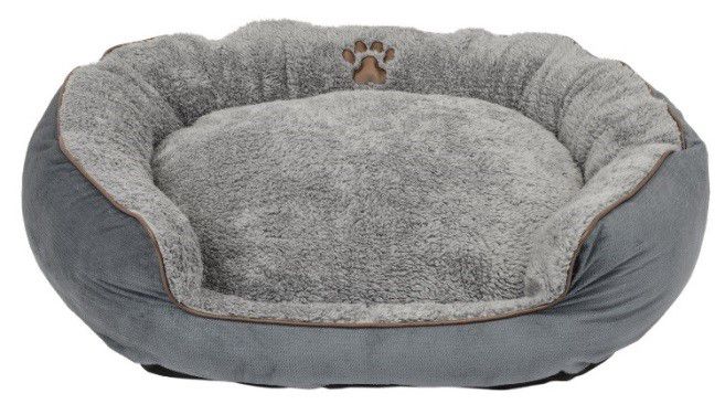 Treat your pet to this luxurious 36" Deluxe Oval Pet Bed from Berkley Jensen, featuring a soft plush interior with bolstered walls for added comfort and support. The sleep surface is treated with MaxGuard to reduce odor and bacterial growth. With decorative leather piping and a paw print applique, this dog or cat bed adds unique style to your home.
