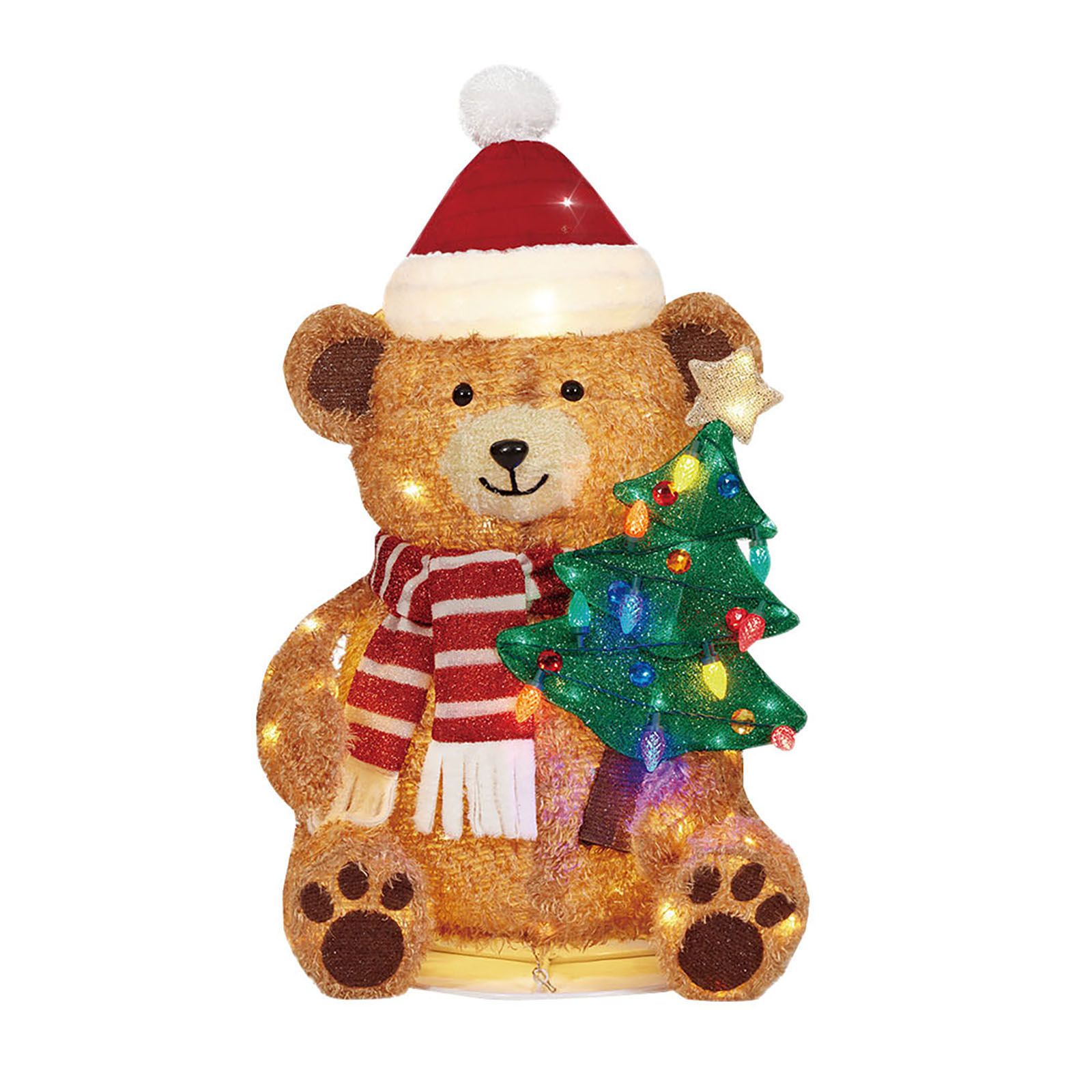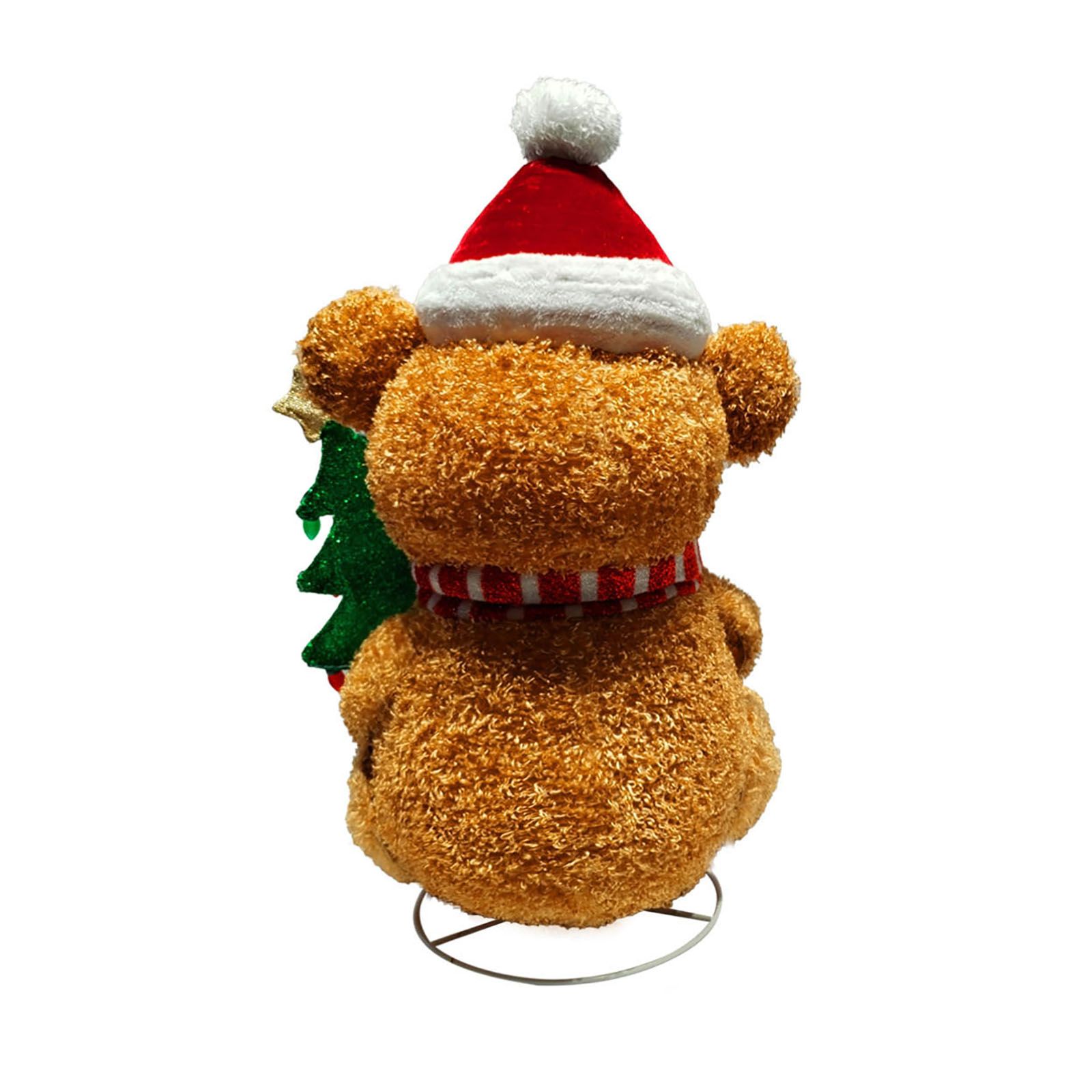 Includes 36" pop-up fluffy bear with Christmas tree and metal stakes