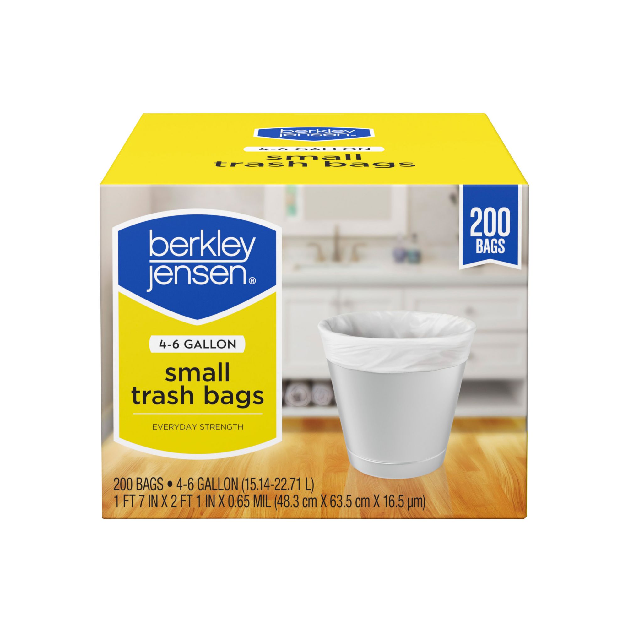 These Berkley Jensen 4-6 gallon white waste basket liners offer feature coreless perforated tear off bags. High opacity helps to conceal bag contents. This product is made with proprietary grades of linear low density polyethylene. In-built multilayer technology provides exceptional tear and puncture resistance. Each bag has a carrying capacity of four-to-six gallons.
