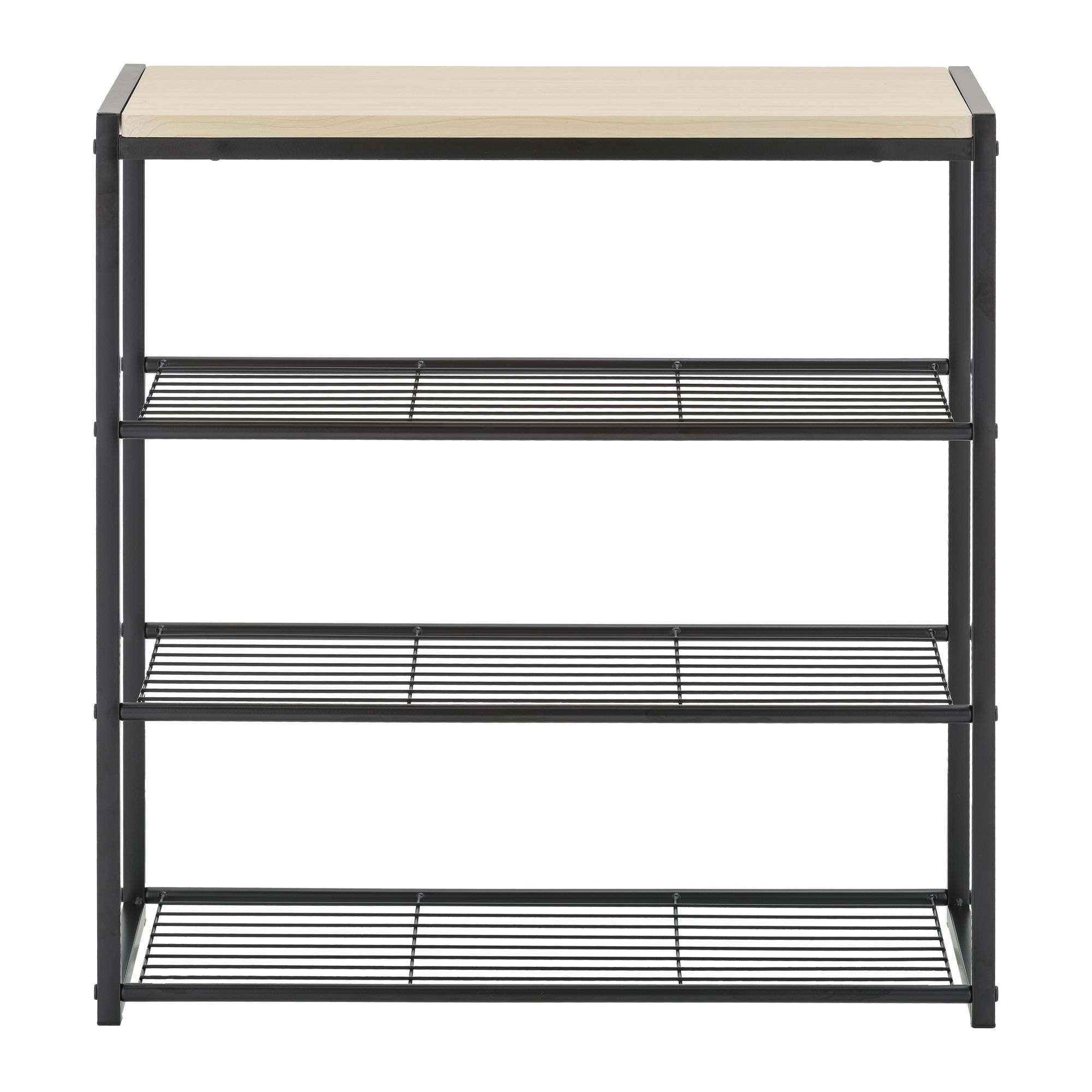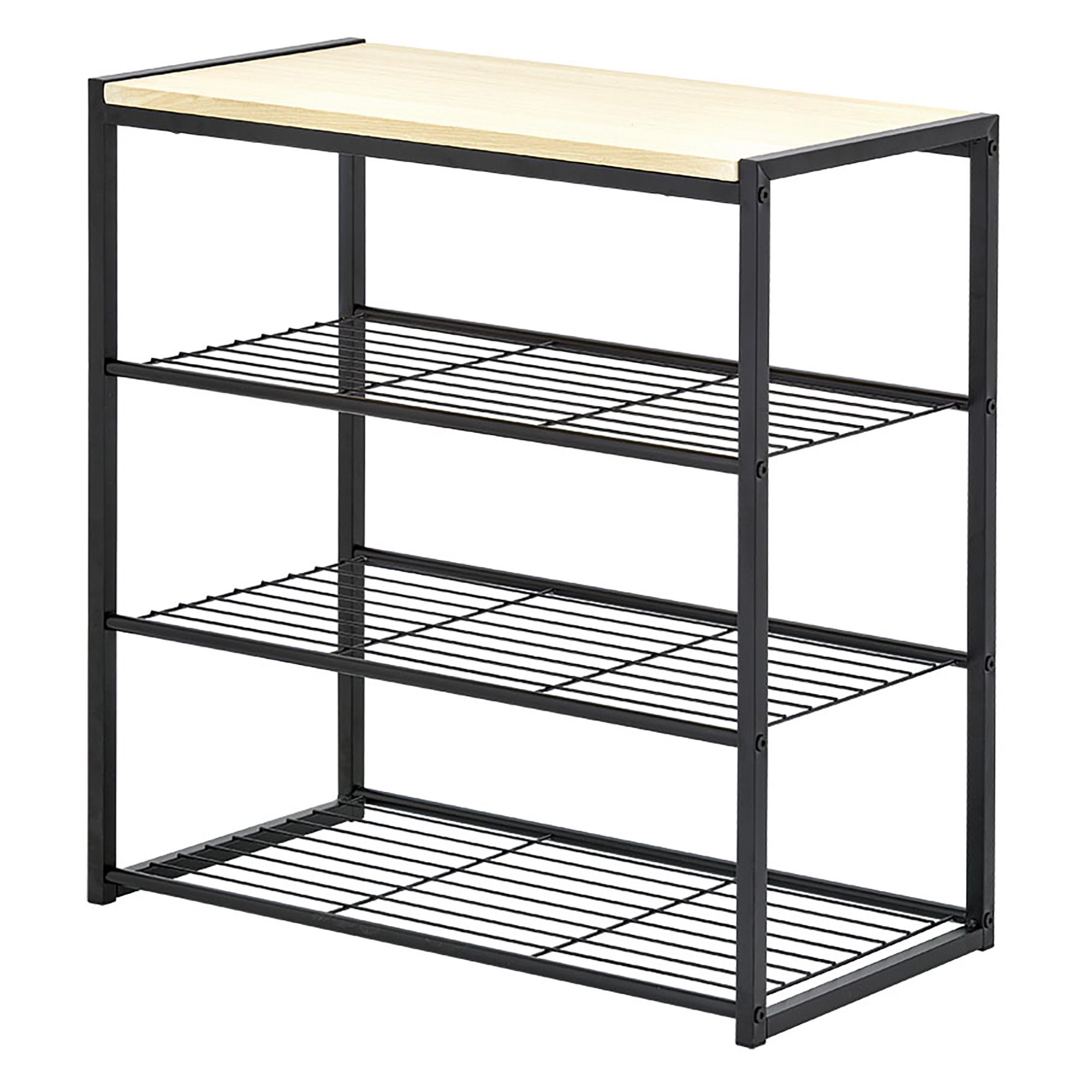 Includes four-tier metal shoe rack
