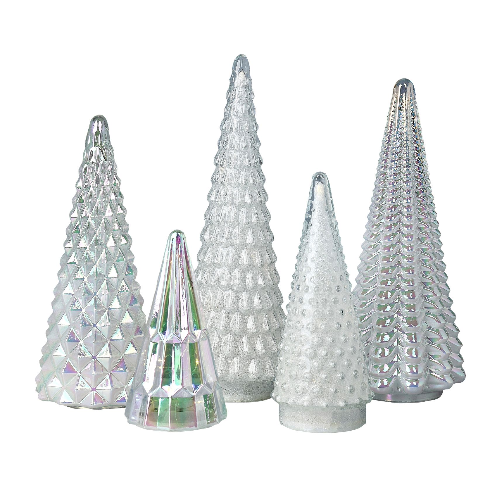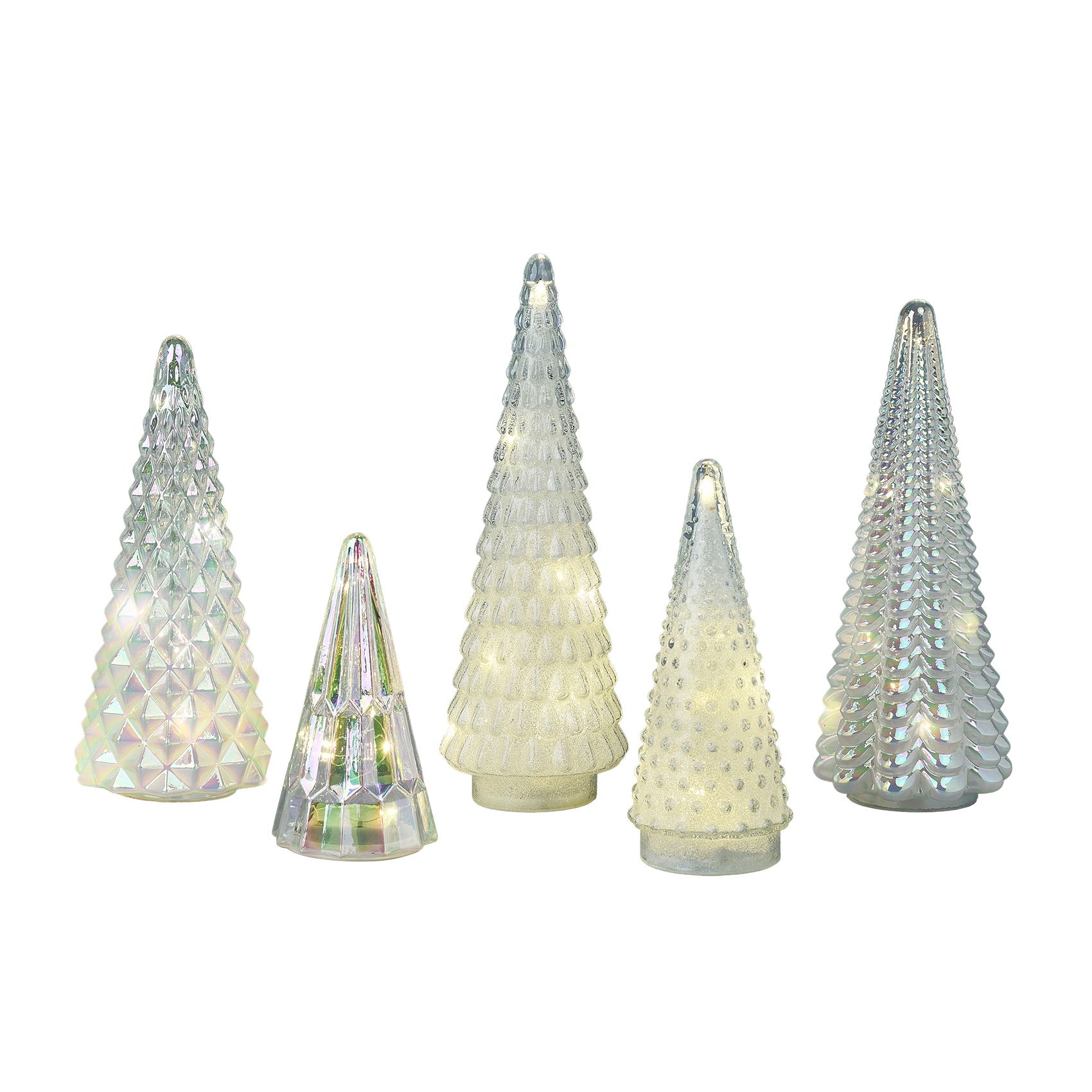 Berkley Jensen 5-Pc. Glass Christmas Trees Set with LED Lights