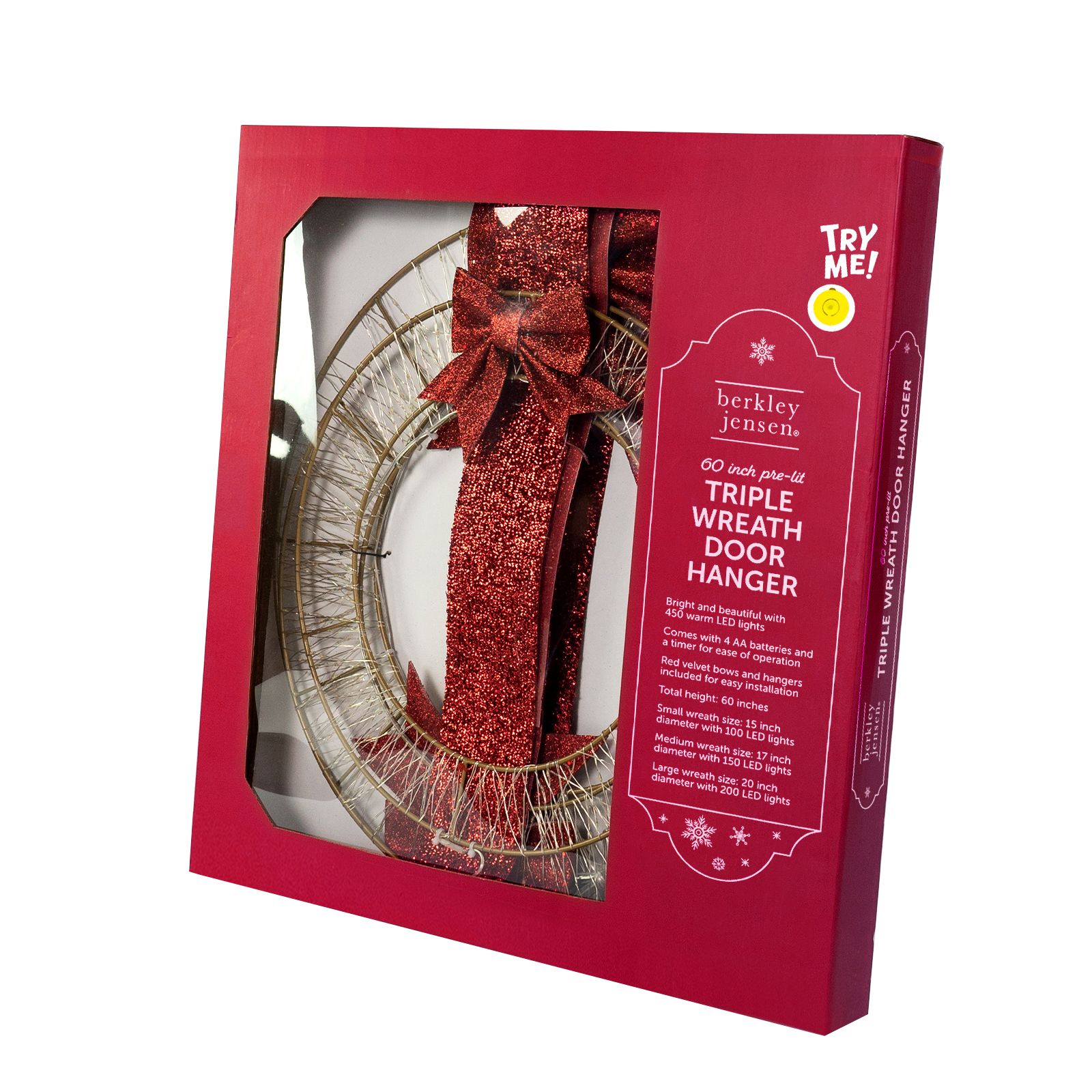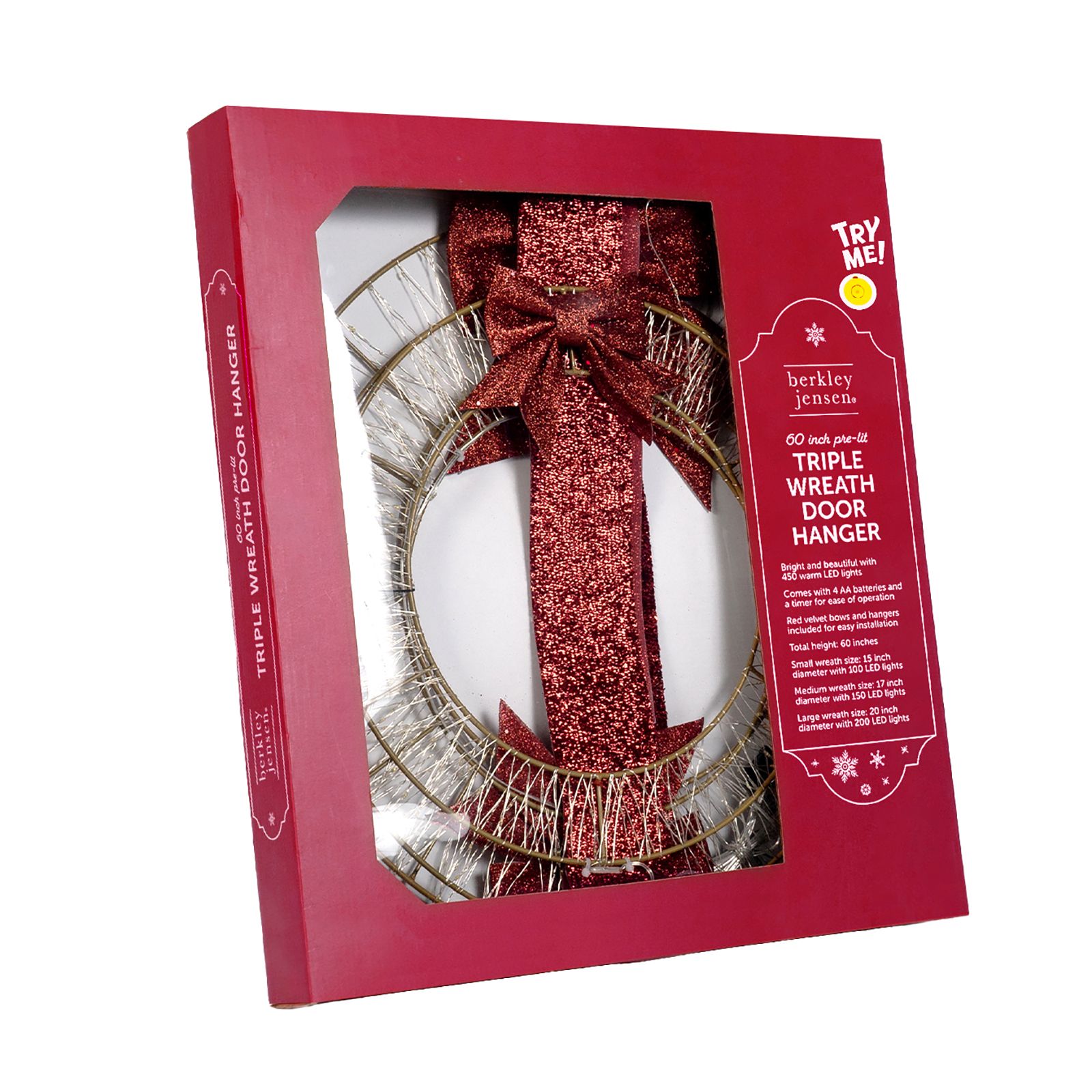 Berkley Jensen 60" Pre-Lit Triple Wreath Door Hanger