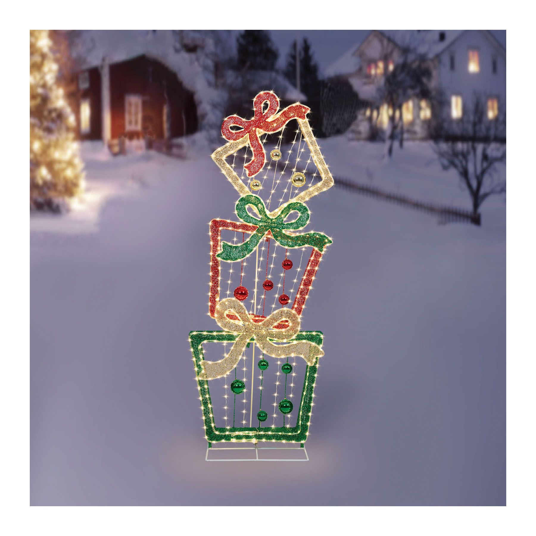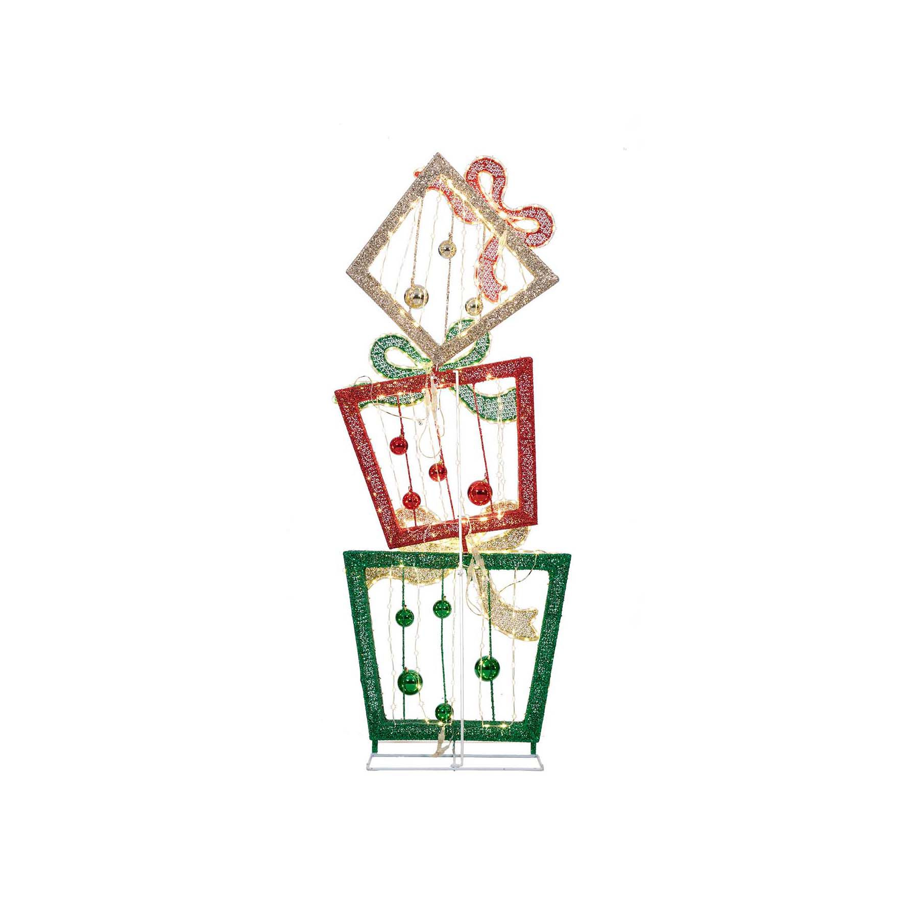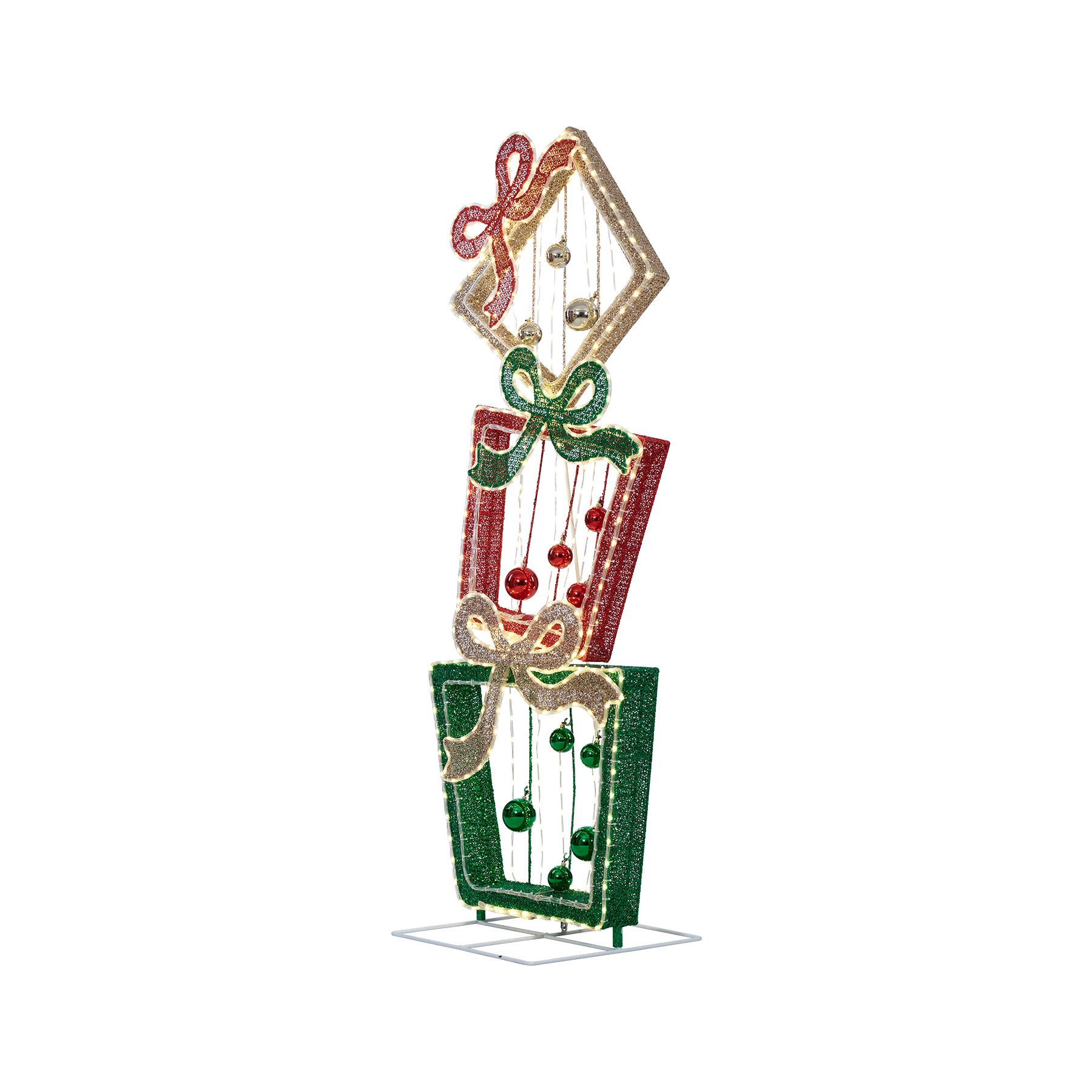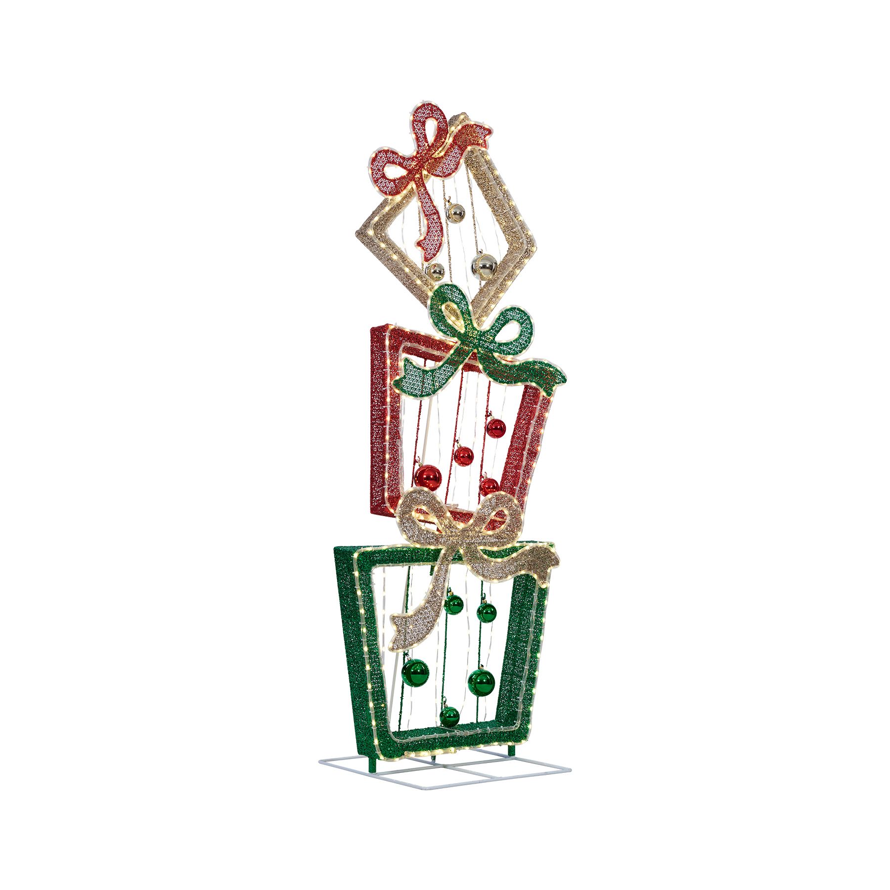 Berkley Jensen 72'' LED Glittering Mesh Stacked Gift Box Sculpture with Chasing Function