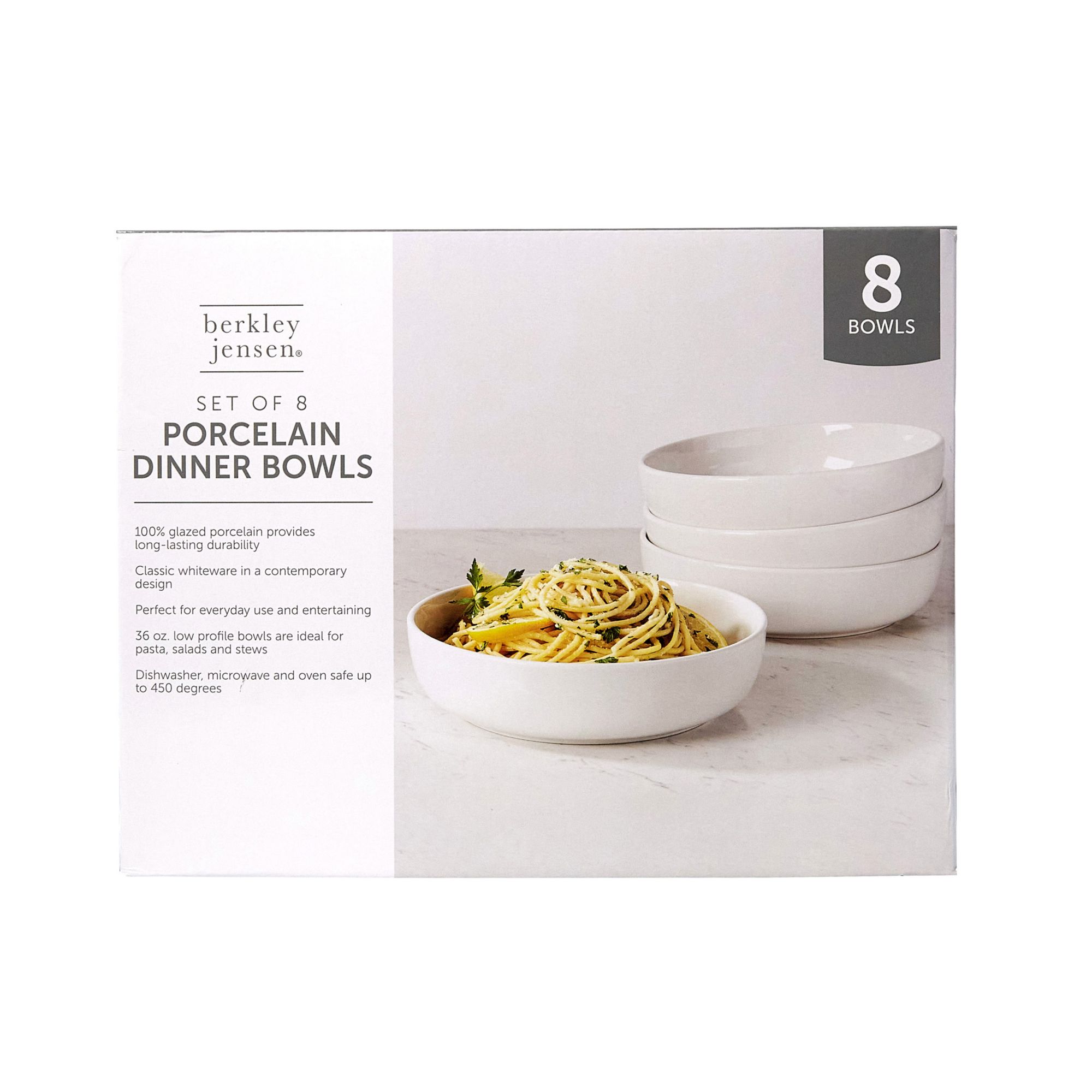Includes eight ct. 8” dinner bowls