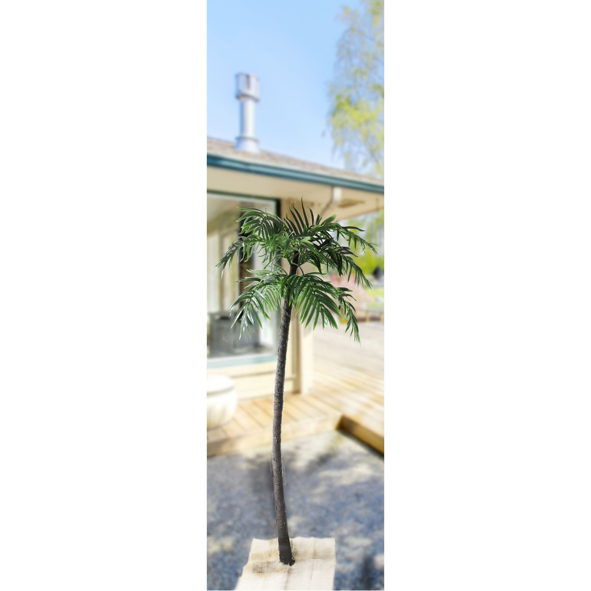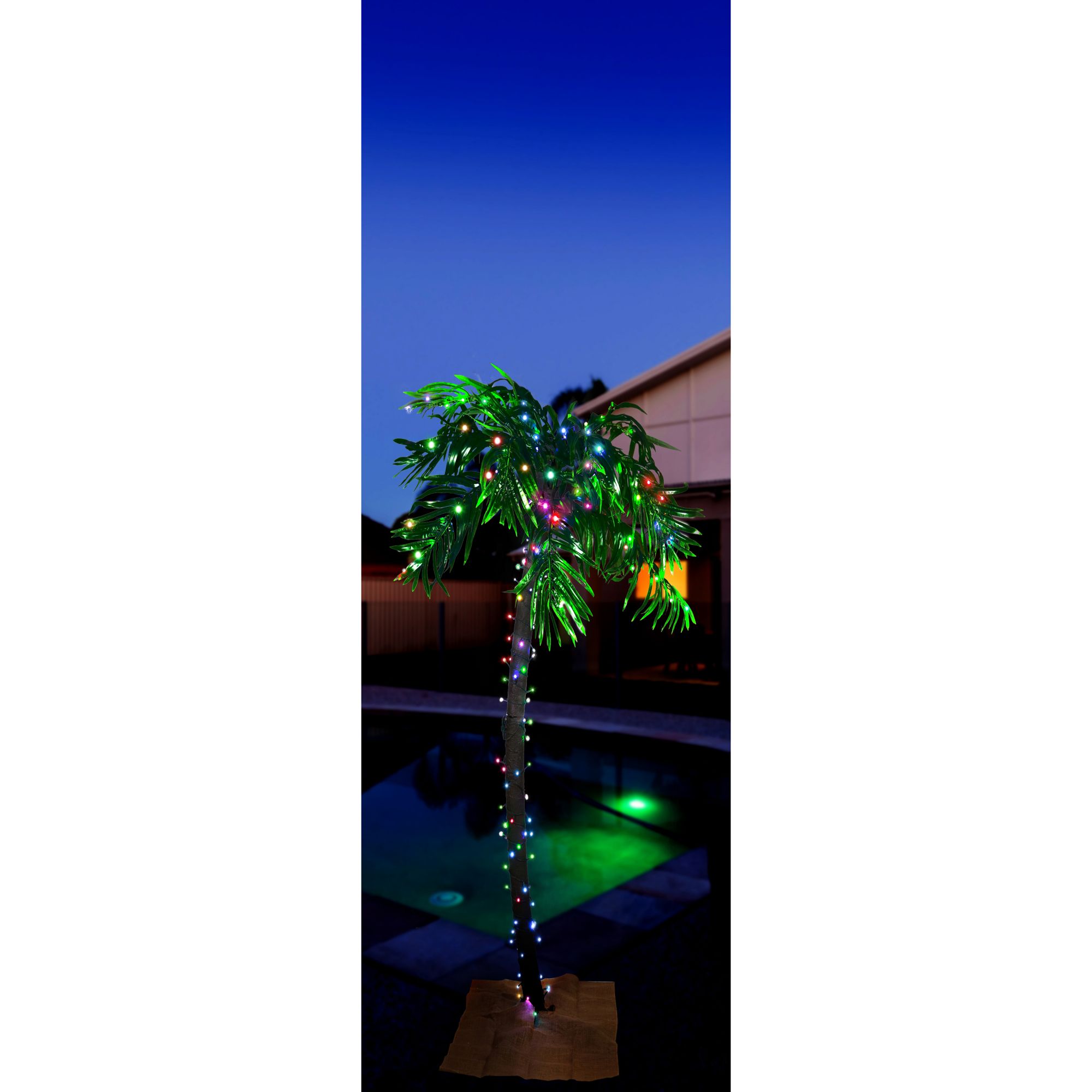 This artificial tropical tree offers a perfect way to lighten up your front door, entryway, or any spaces you like. It features palm leaves and 192 multicolor LED lights with multifunction remote control to brighten your home with a dazzling display. Its realistic appearance adds warmth to any space for years to come and this tree comes with a black metal base for added stability and hassle-free placement throughout your home.
