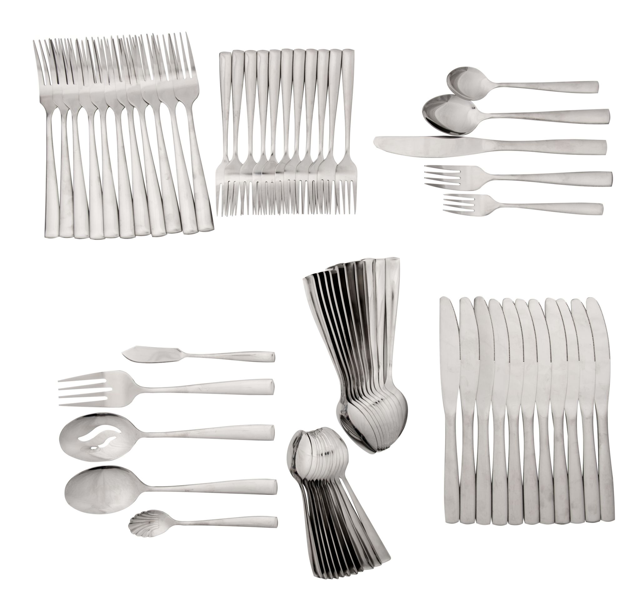 Heavy gauge stainless steel Durable and stylish Dishwasher safe Never needs polishing Perfect for everyday use Includes 89-pc. stainless steel flatware set
