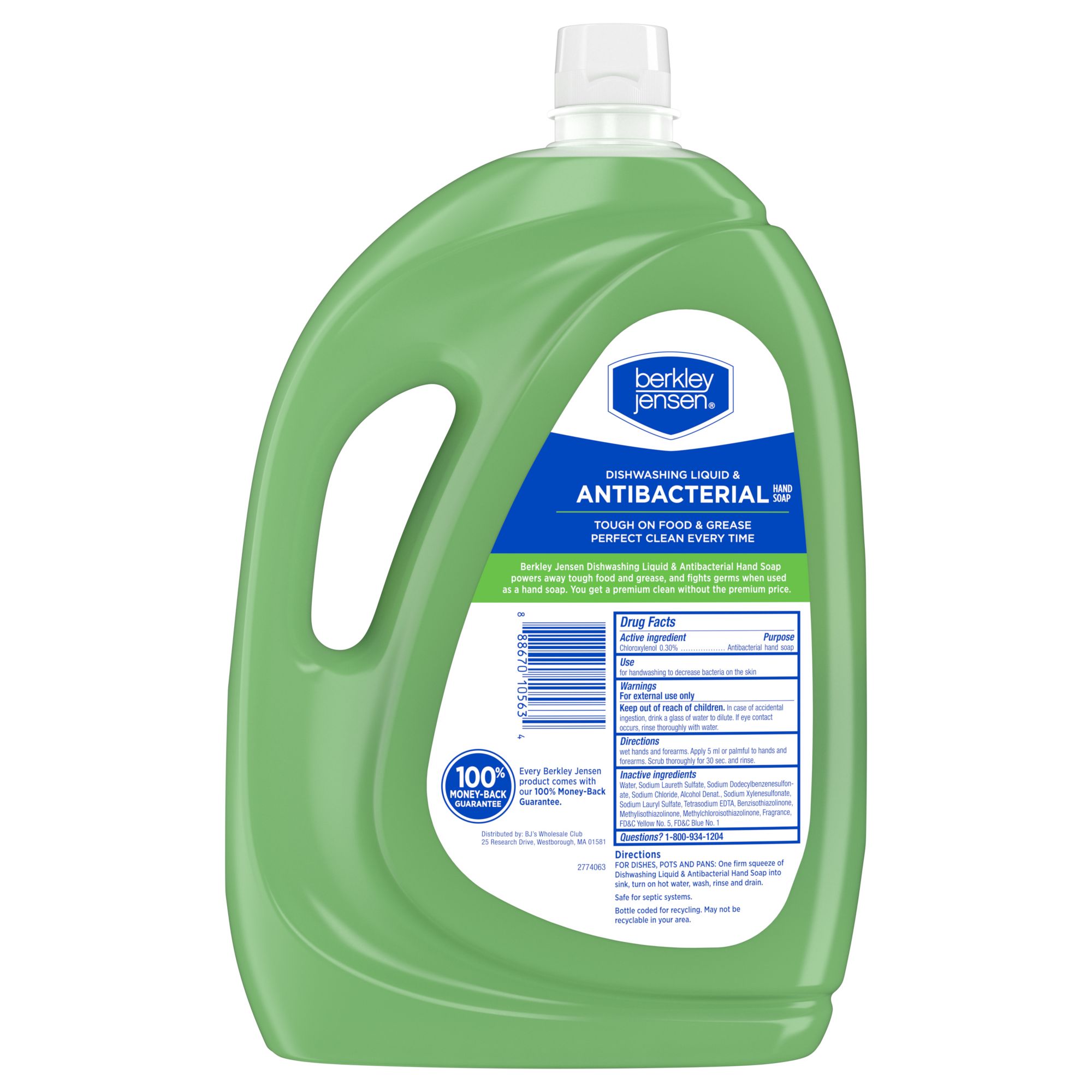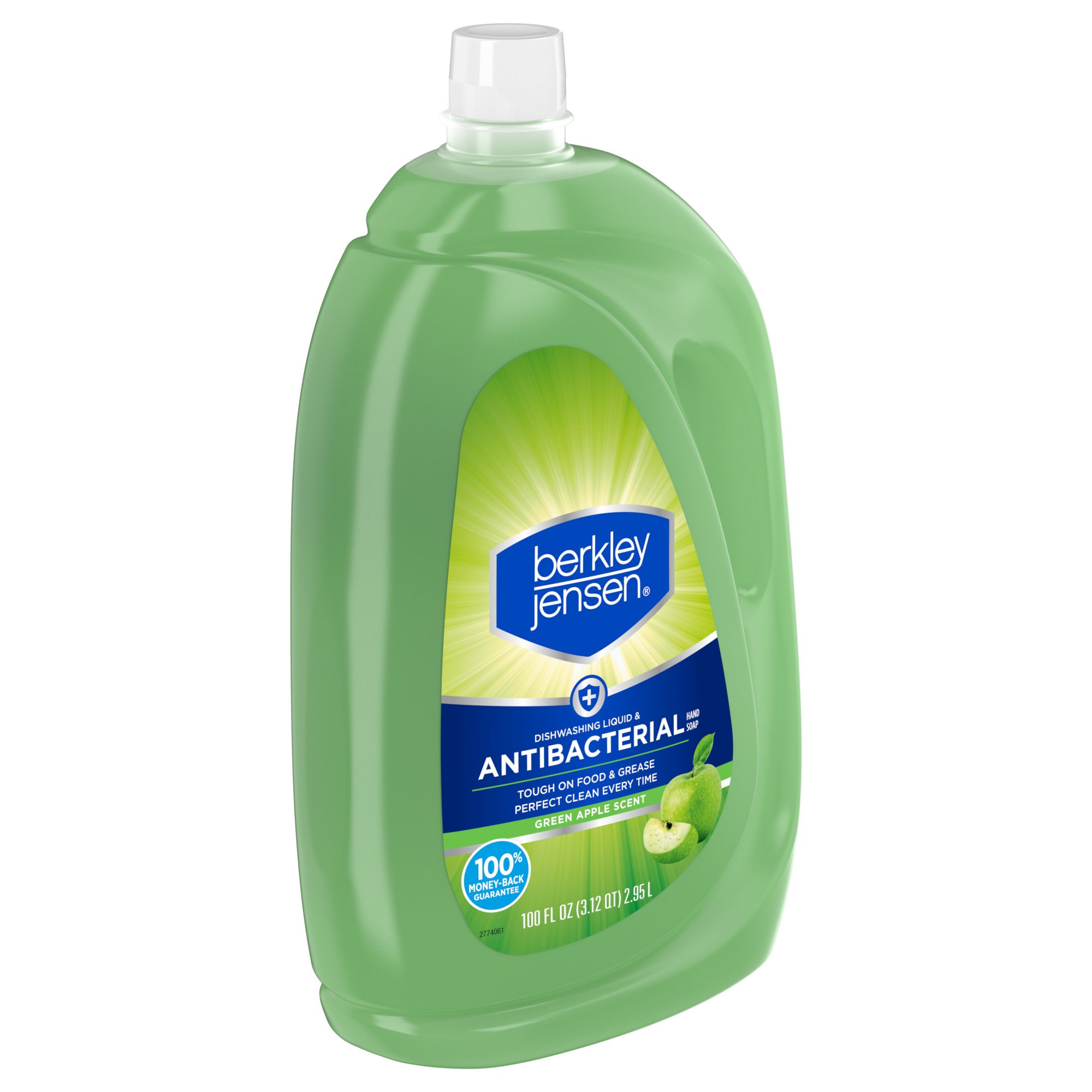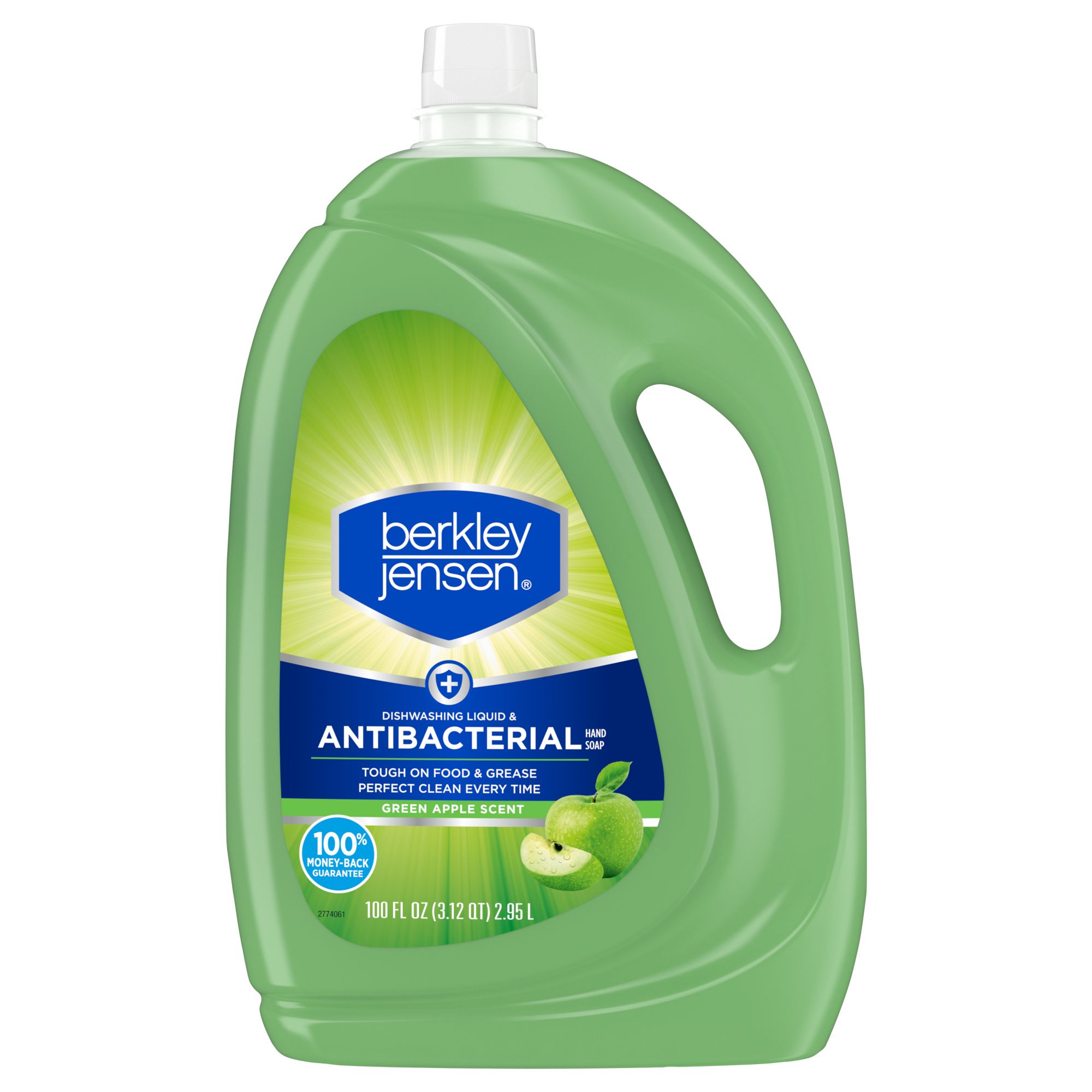 Berkley Jensen Green Apple Antibacterial Dishwashing Liquid Soap has grease-cleaning power in every drop. No matter, what type of dish or glassware you have in your house, Berkley Jensen dishwashing liquid will leave your plates, pots, pans more sparkling clean after every use. Its antibacterial properties help fight off germs when used as a hand soap. You get a premium clean without the premium price.