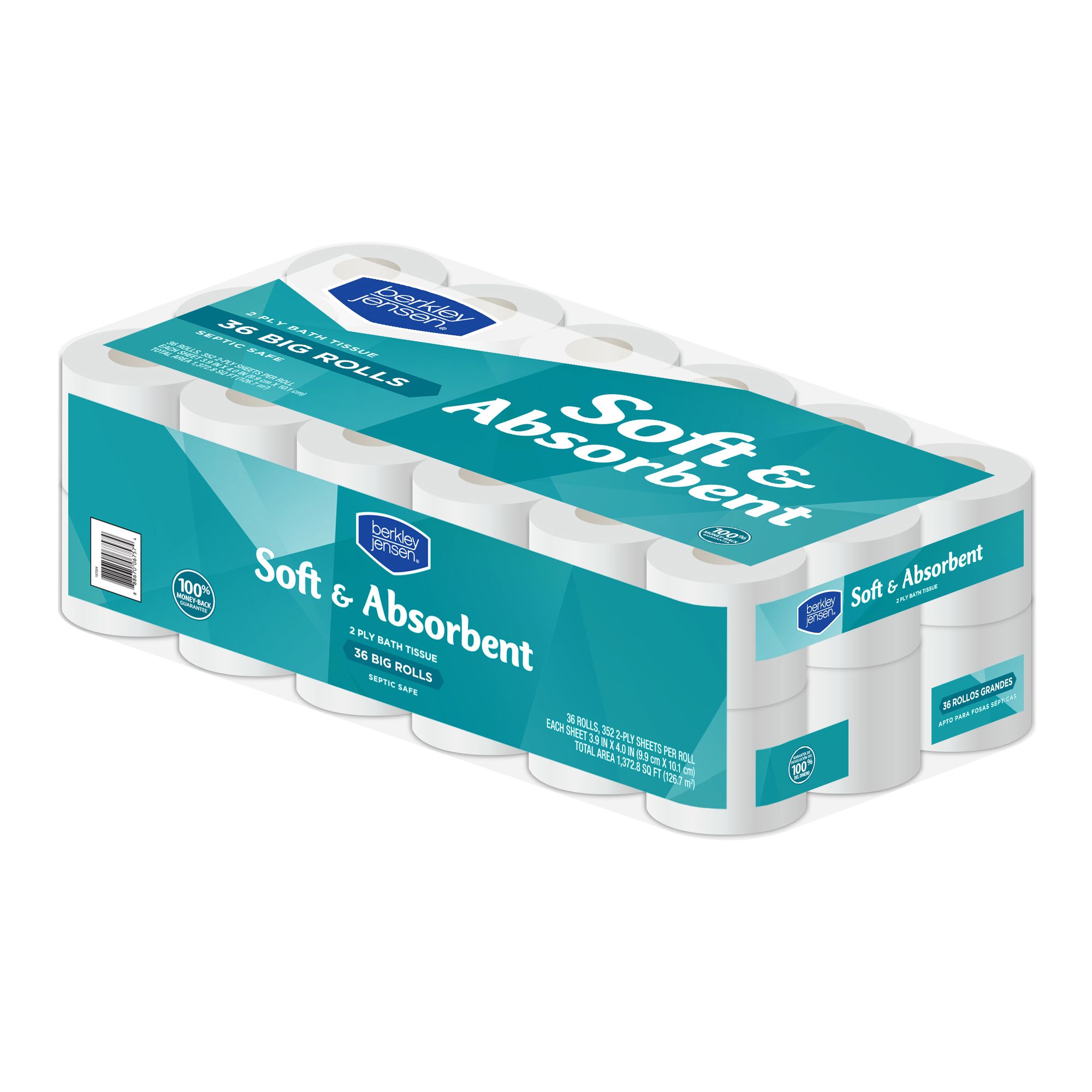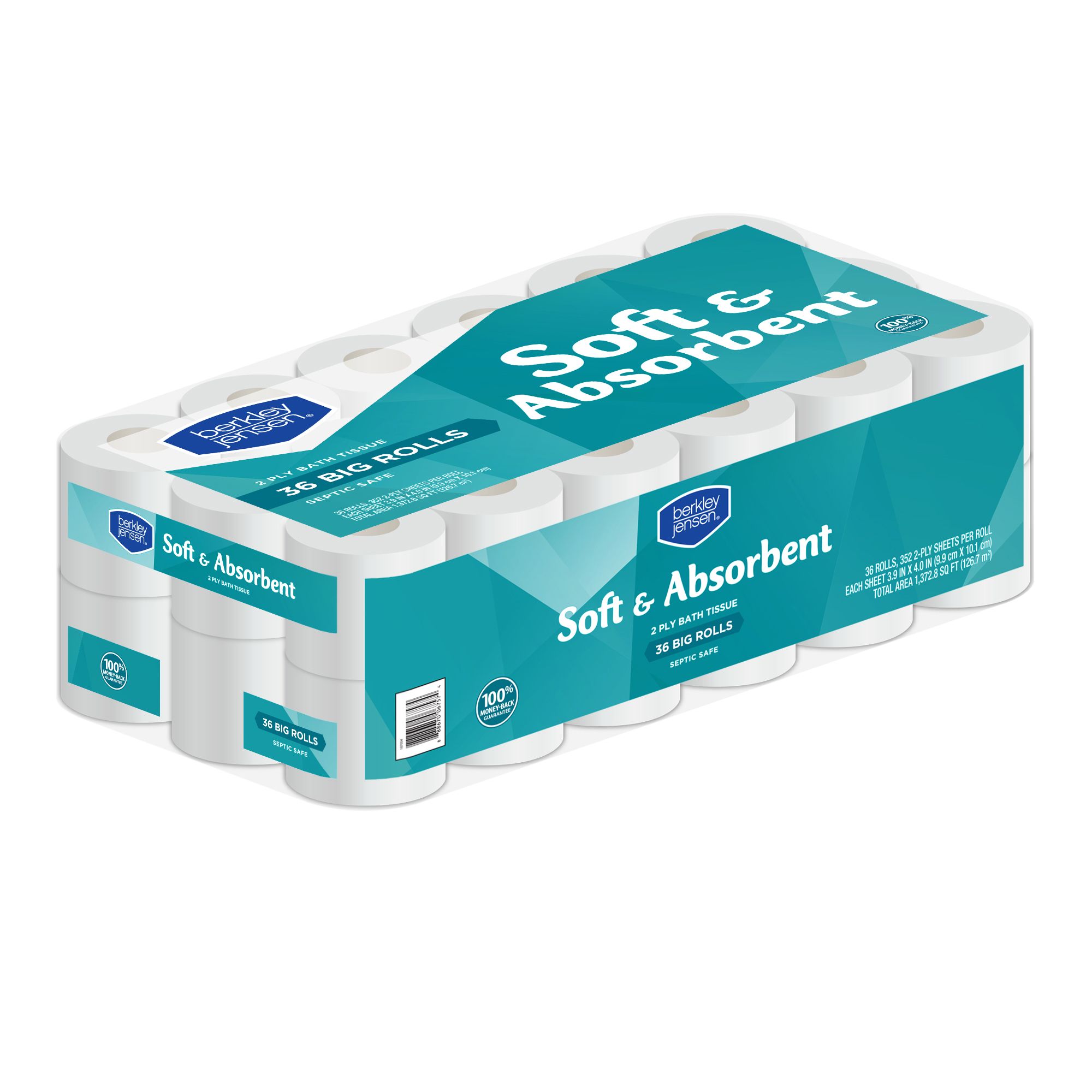 Soft and absorbent, Berkley Jensen Big Roll two-ply bath tissue is premium bath tissue that's completely safe for your home's septic system. And because it comes in a 36-roll package, it's a great value that helps ensure you never run out.