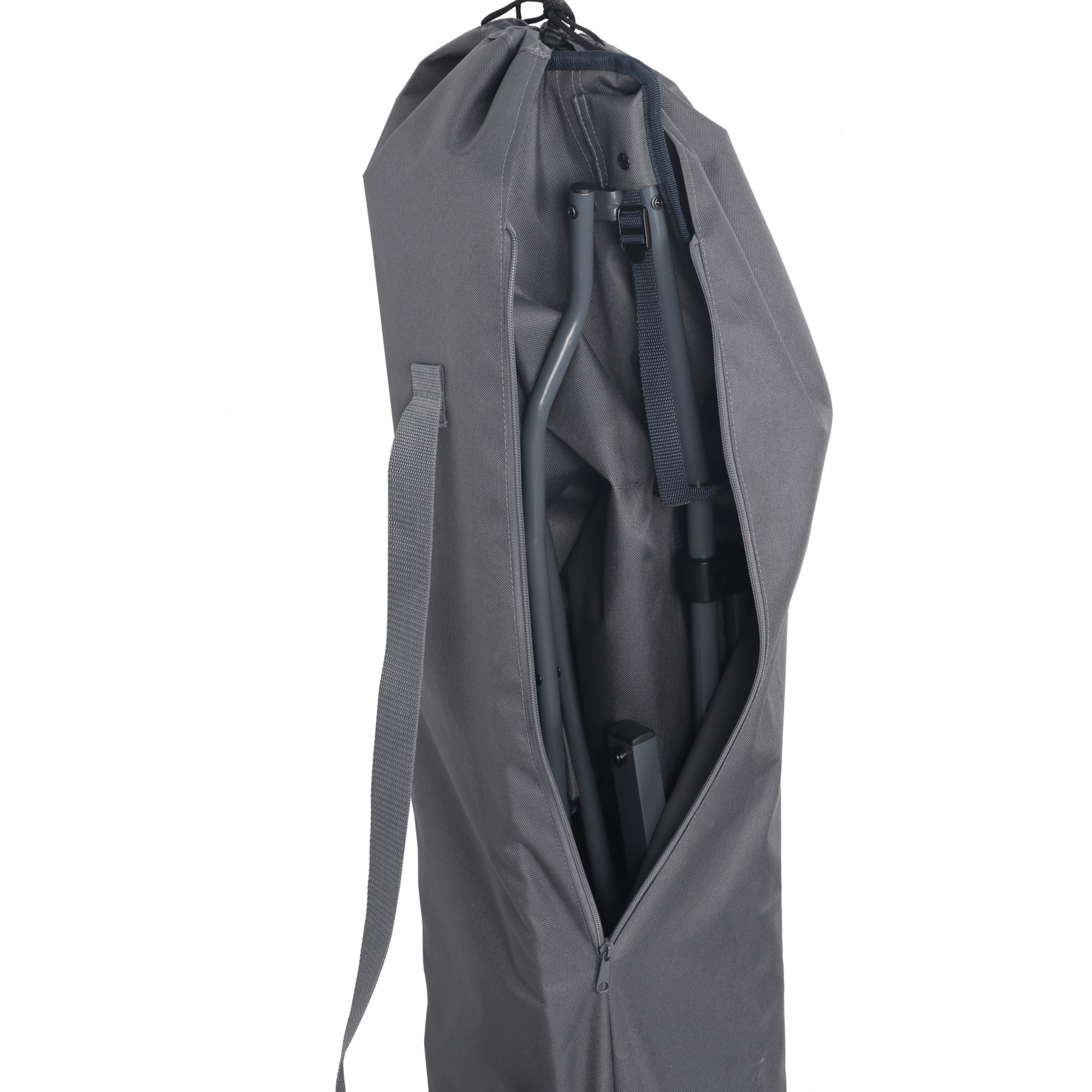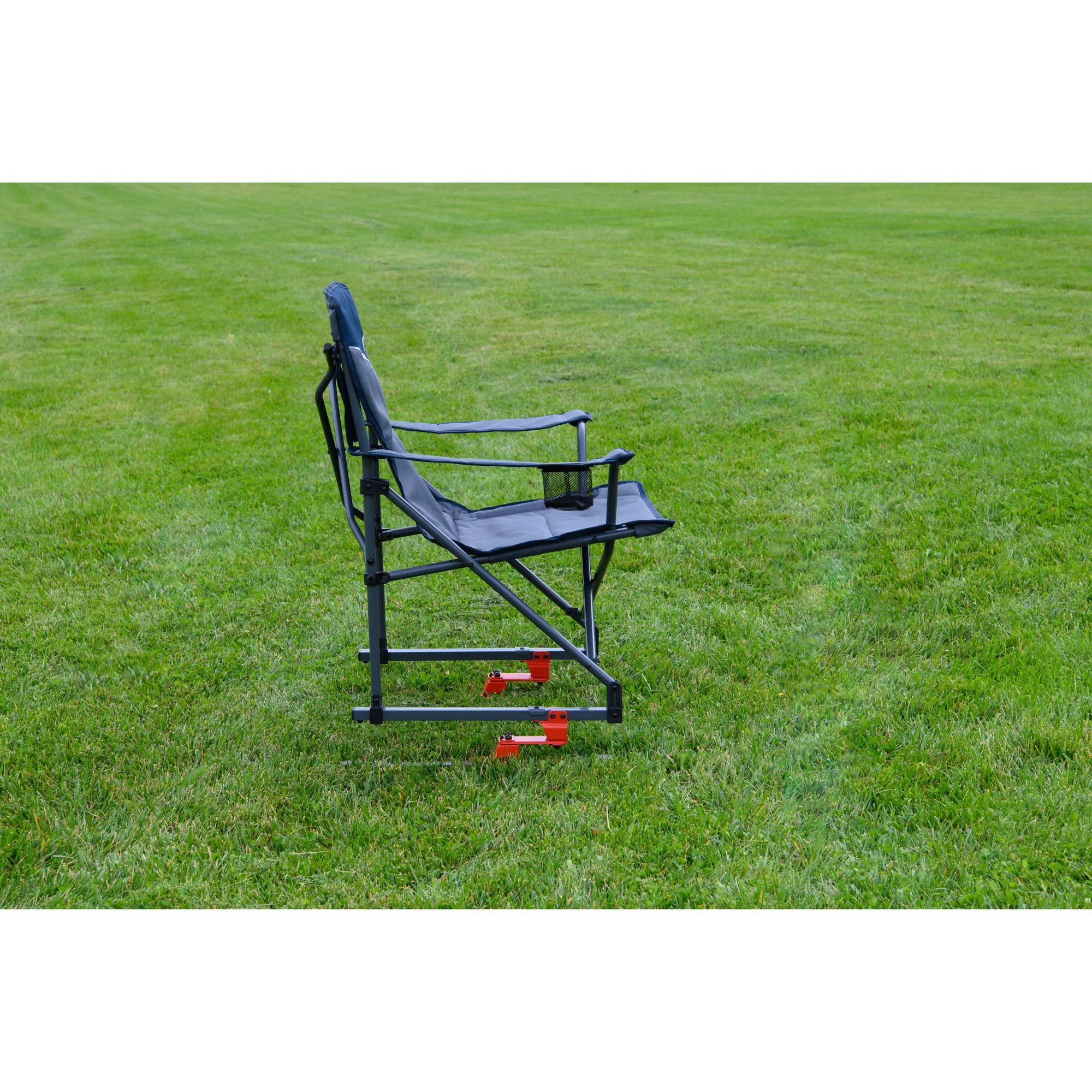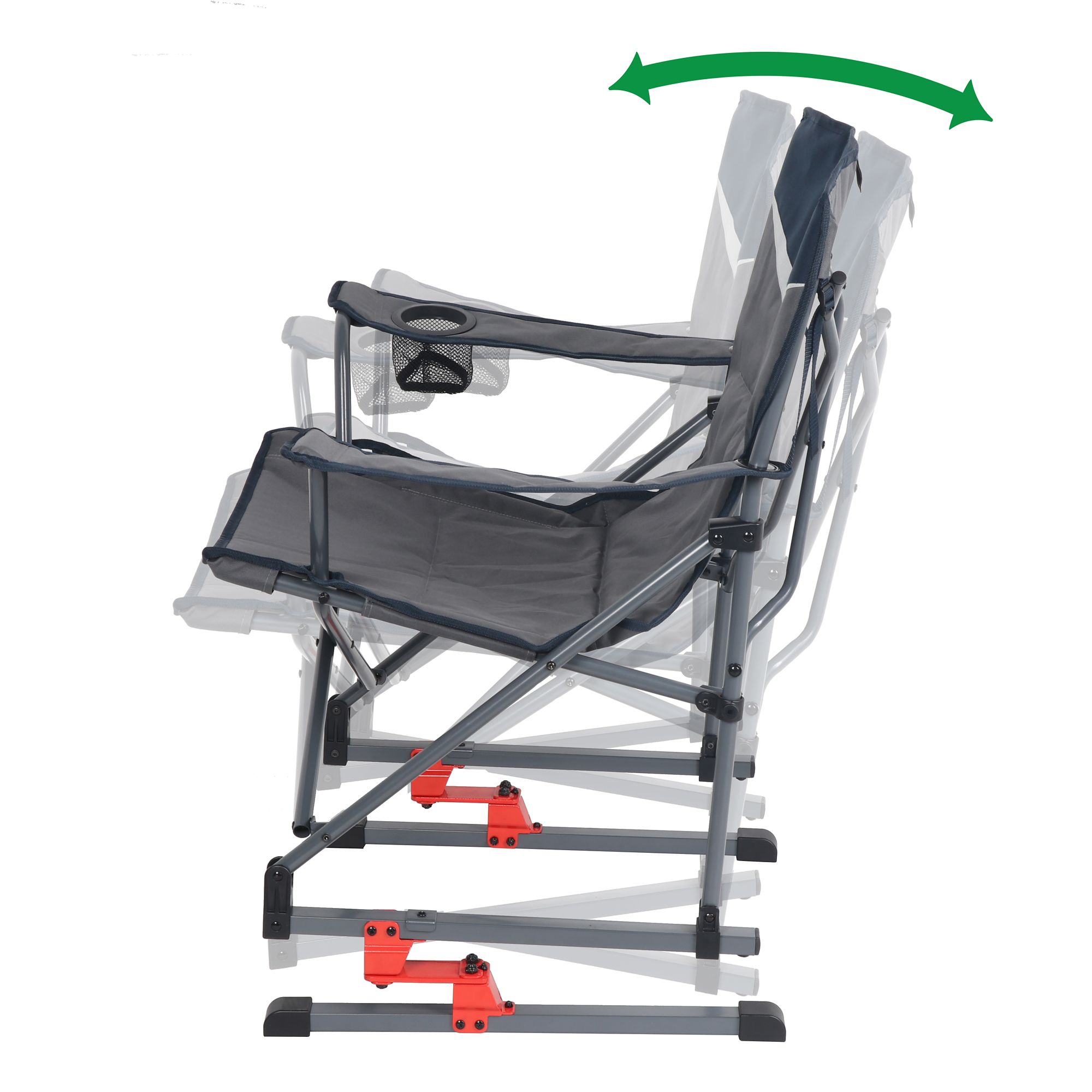 Unpack on-the-go comfort with this folding rocking chair. It packs up like normal quad-folding chair, but the patented spring action design allows for a light rocking motion for added comfort and to ease leg fatigue. Features a drink holder in the arm and is great for camping, sporting events and backyard functions.