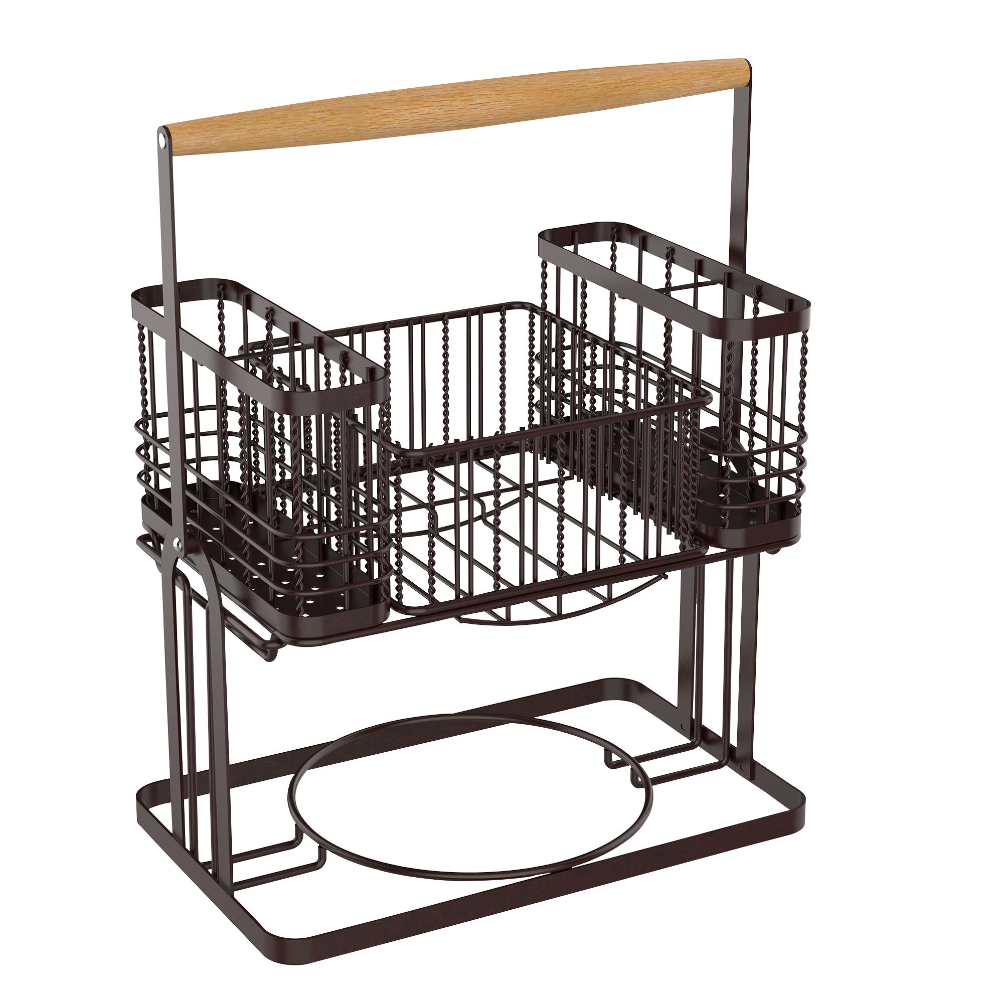 The Berkley Jensen Buffet Caddy is foldable and portable to make entertaining a breeze. The strong carbon steel construction and wooden handle gives it a classic look. Great for organizing utensils, napkins, condiments and/or plates.