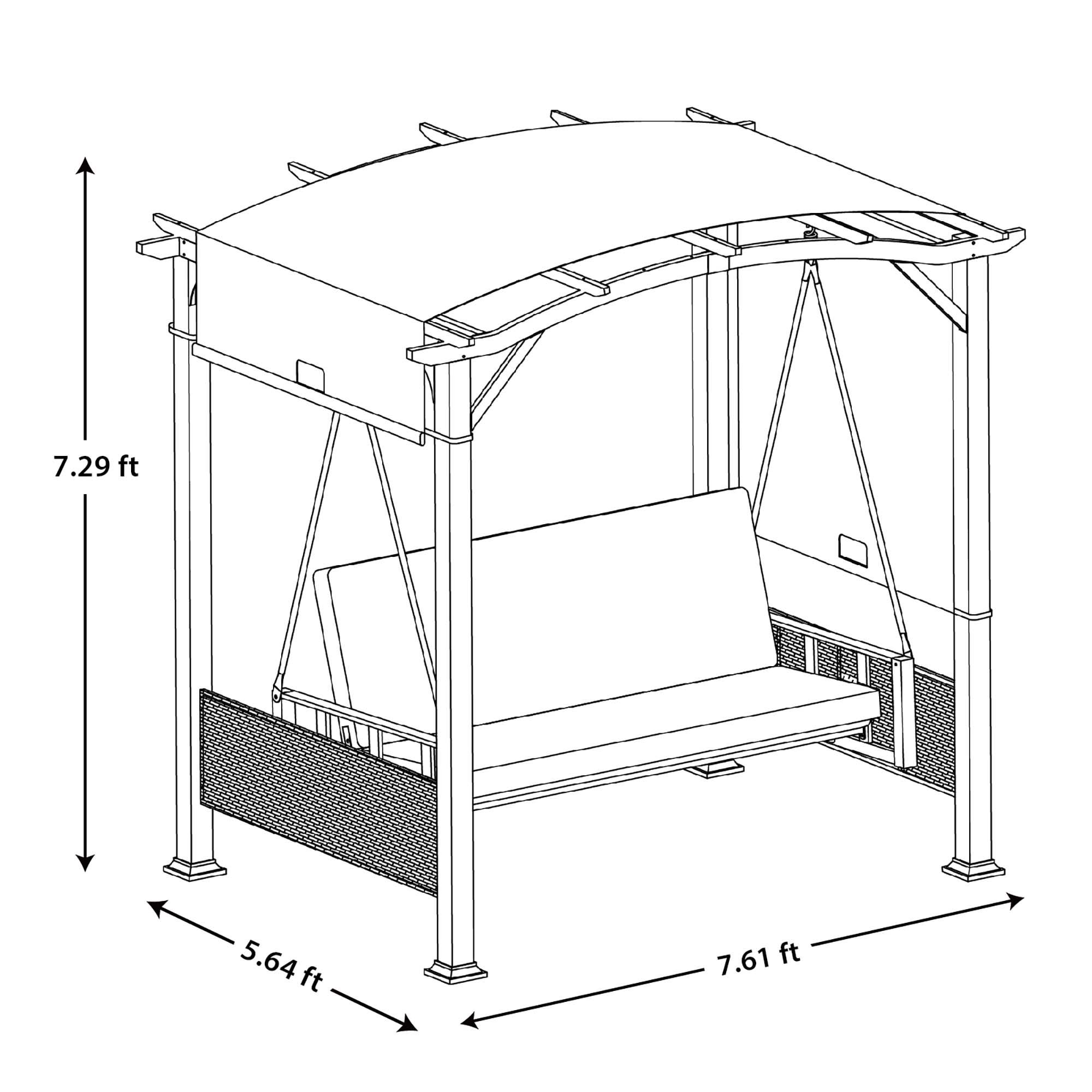 This item is exclusive, unique to BJ's Rust-resistant steel frame with gray polyester polyester canopy Contains seat and back cushion Frame is made of heavy-duty steel with a brown powder-coated finish Swing can be in relaxed seating position on converted into a bed Includes steel frame, swing, cushions, canopy
